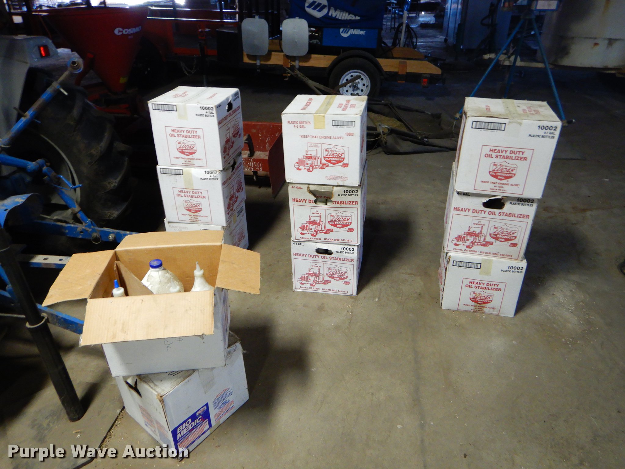 Purple Wave is selling a used Automotive Parts or Acces. in Kansas. This item is a Automotive accessories with the following: Electric furnace blower motors, 1/3 HP, Assorted filters and gaskets, (2) 13x6.50 tires, Dixon lawn mower filters, Approx. 36 gallons of Lucas oil stabilizer, Approx. 5 gallons of bio medic sterilizer