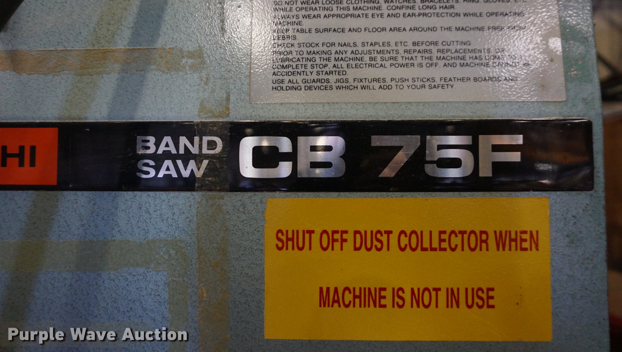 Purple Wave is selling a used Tools in Kansas. This item is a Hitachi CB75F bandsaw with the following: 230V, Three phase, 5.0 HP, 19" x 20.5" table