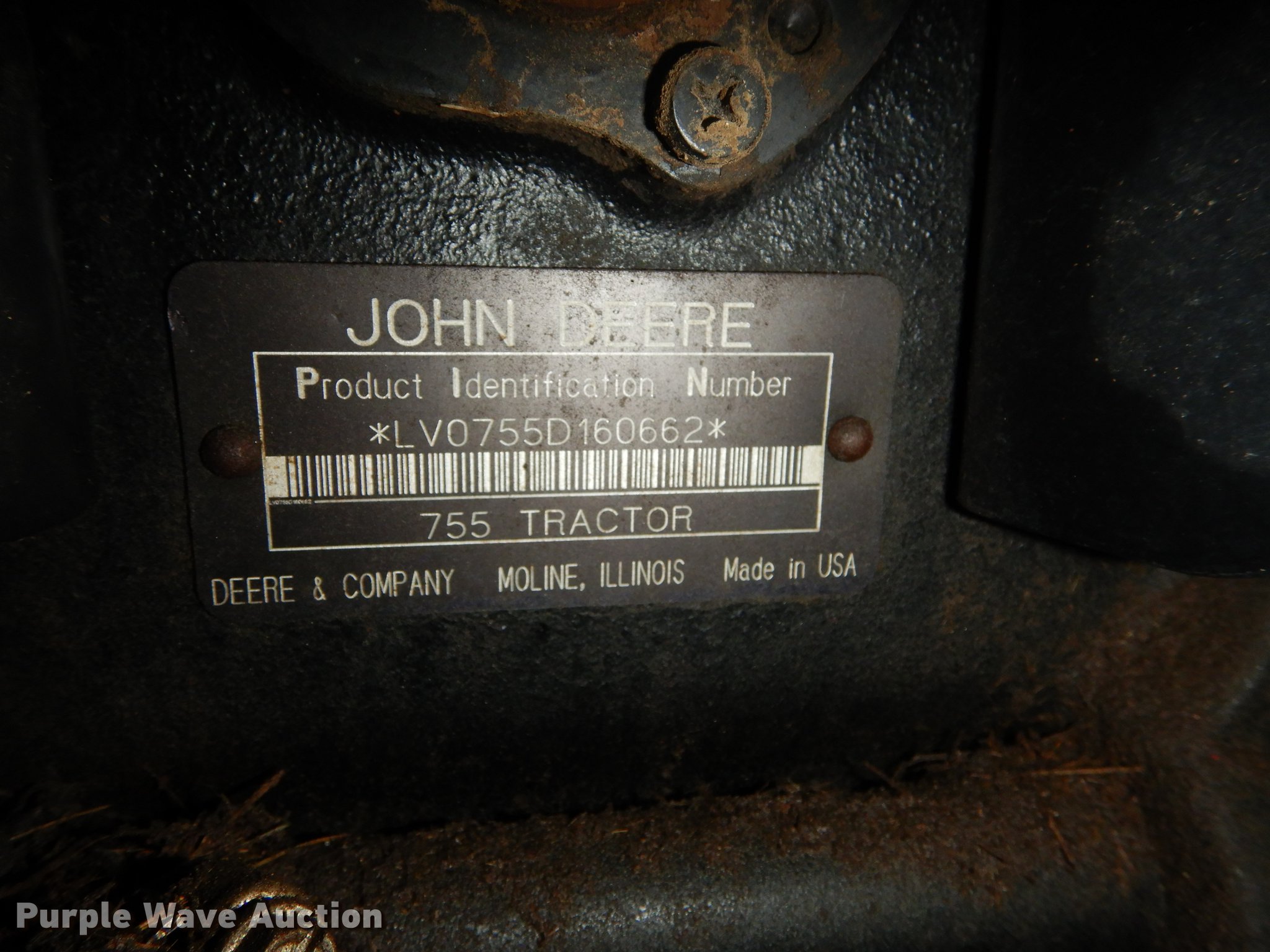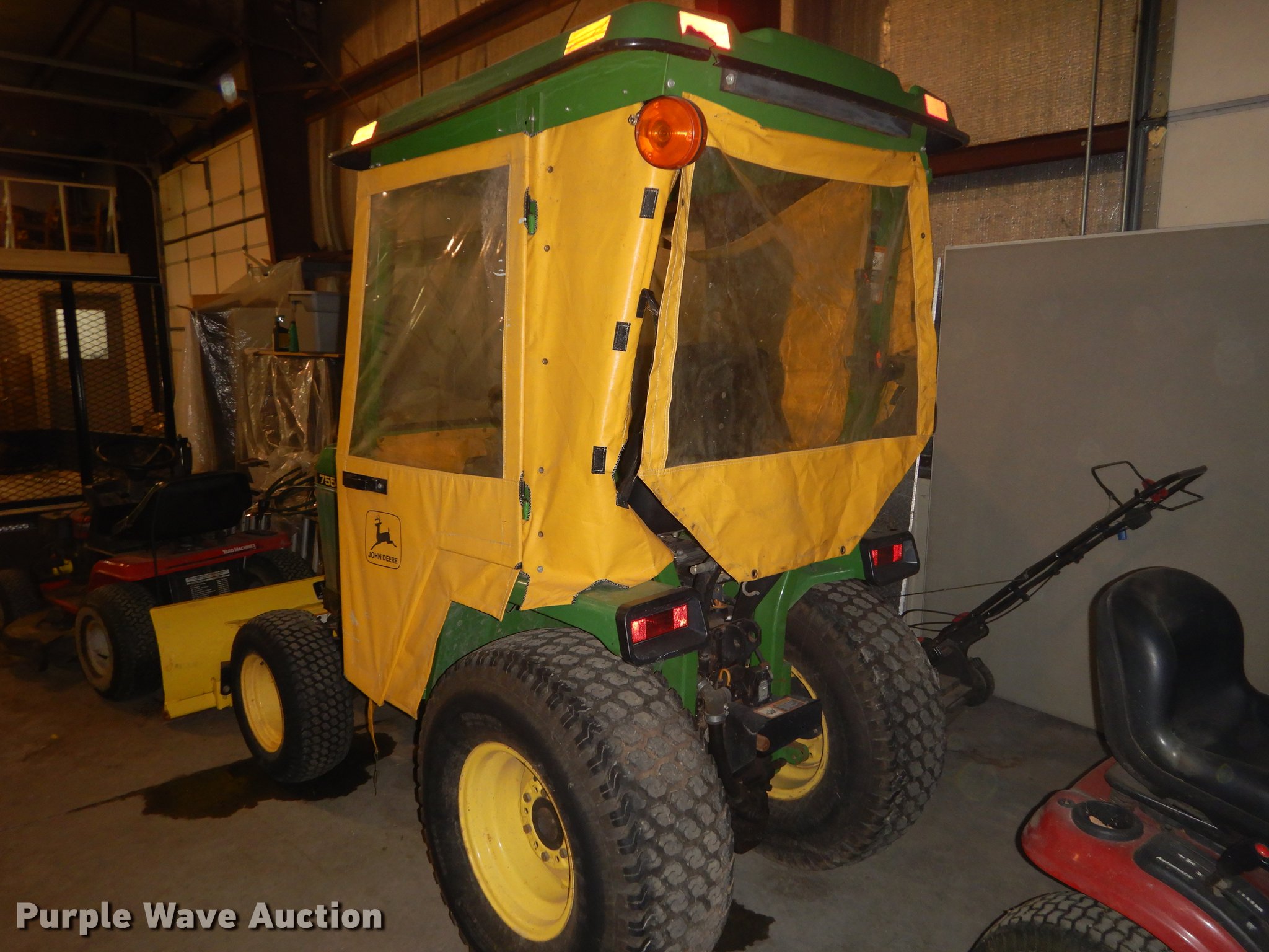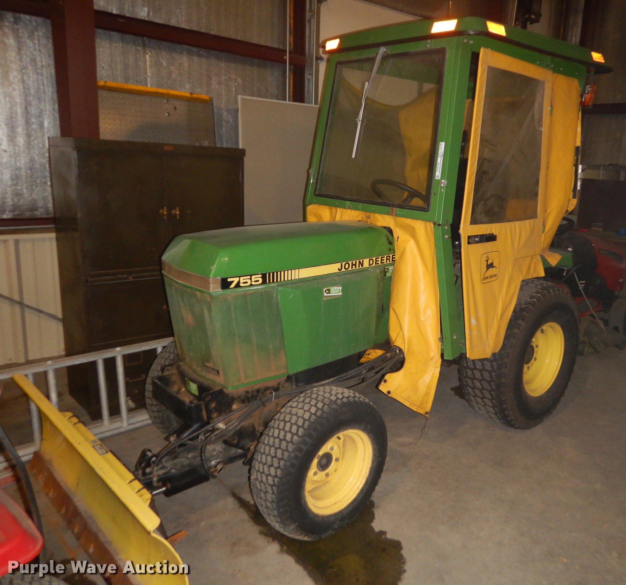 Purple Wave is selling a used Tractor in Kansas. This item is a John Deere 755 tractor with the following: 450 hours on meter, John Deere three cylinder diesel engine, Canopy, Enclosure sides, Headlights, Wiper, John Deere Hydro Cut 54"W blade, Three point, 540 PTO, 33x12.50-15 rear tires, Turns over, but will not start, Serial LV0755D160662