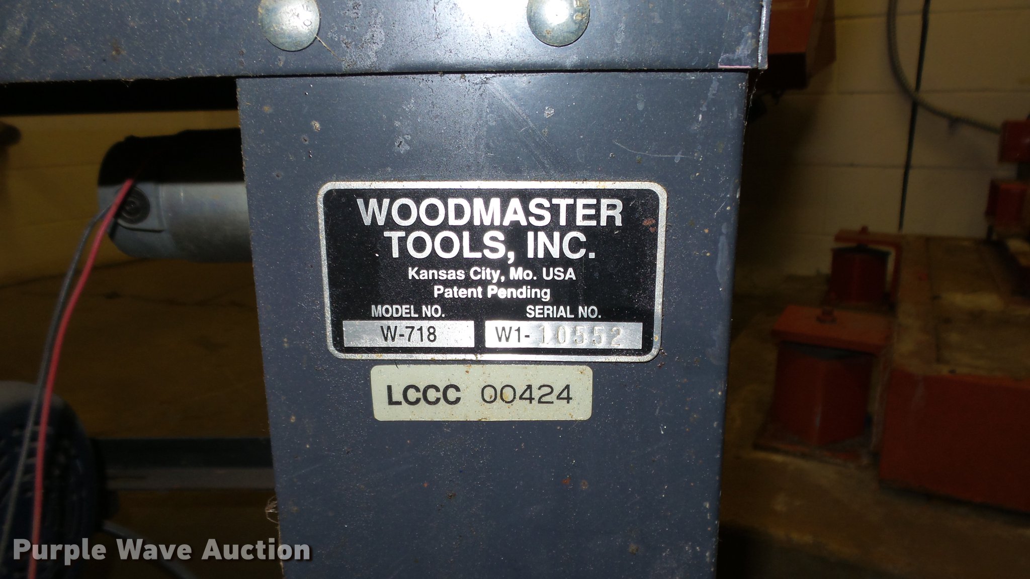 Purple Wave is selling a used Tools in Kansas. This item is a Woodmaster W-718 planer with the following: Single phase, 230V, Serial W1-10552