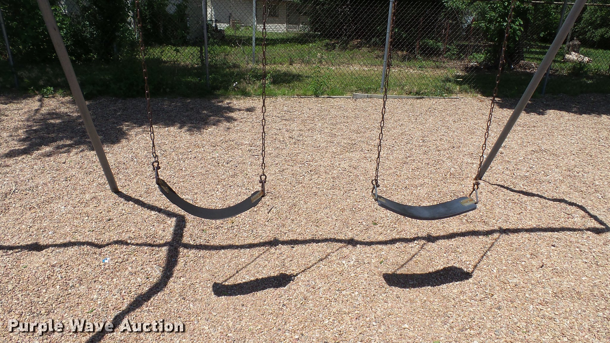 Metal swing set. Approx. 65' x 10' x 8'H, (8) chain swings, Set in concrete footing. All aspects of removal are the sole responsibility of the buyer.. Items must be removed from selling location by Monday, June 25. Items not removed by the deadline will be considered forfeited. No refunds, no extended deadlines.. USD 490 Jefferson Elementary. 1216 W 3rd Ave. El Dorado, KS 67042