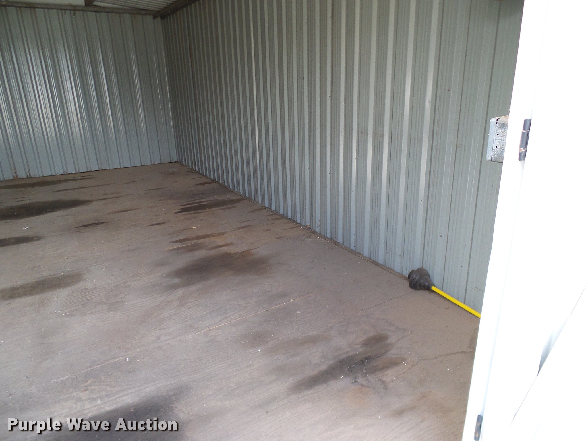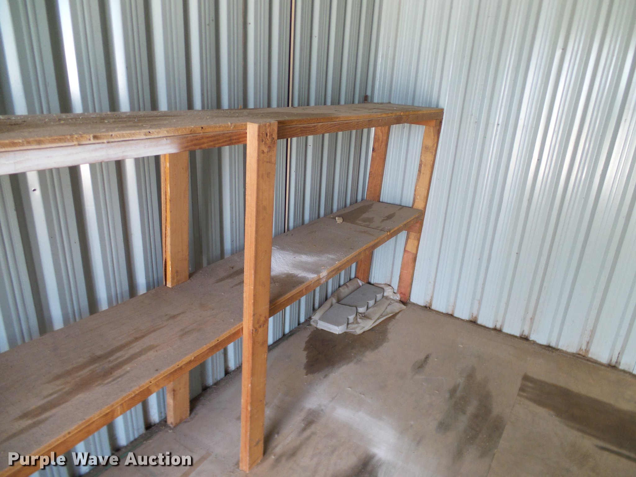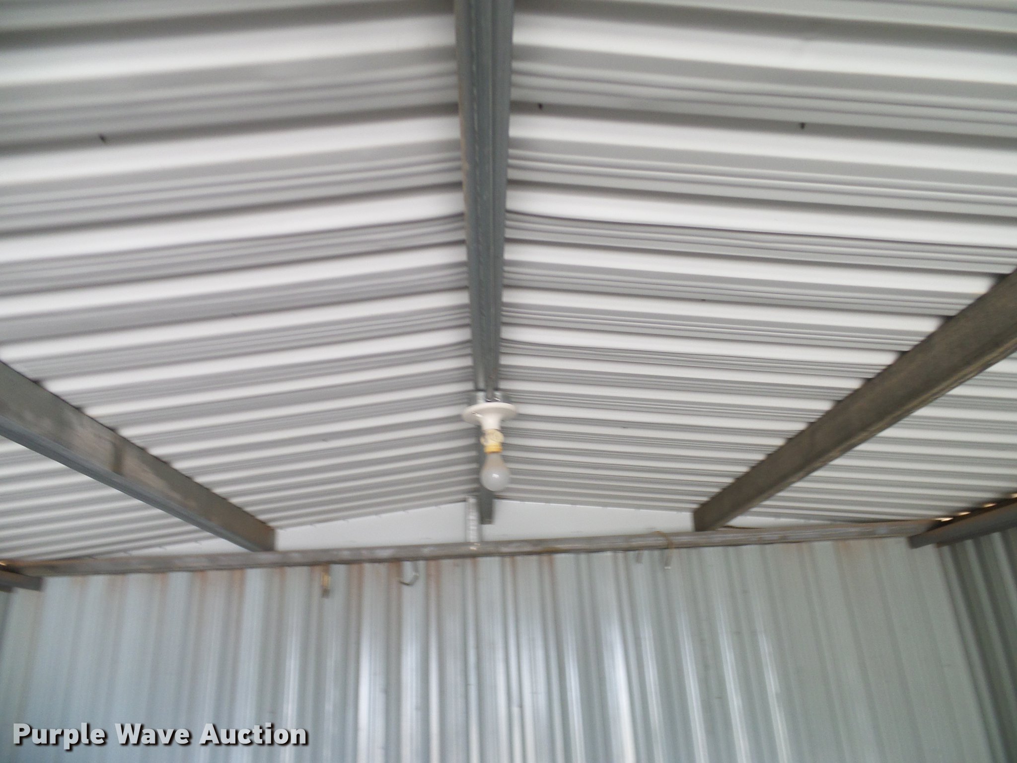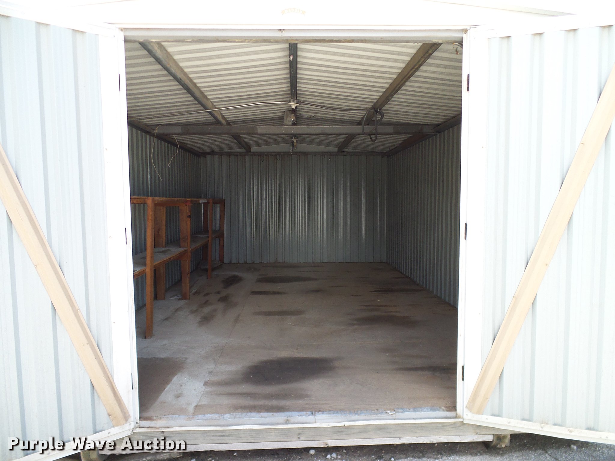 Purple Wave is selling a used Building Materials in Oklahoma. This item is a Madden storage shed with the following: 20'L x 12'W x 102"H, Benches, 110V lighting, Wood floor, Metal sides, Contents not included