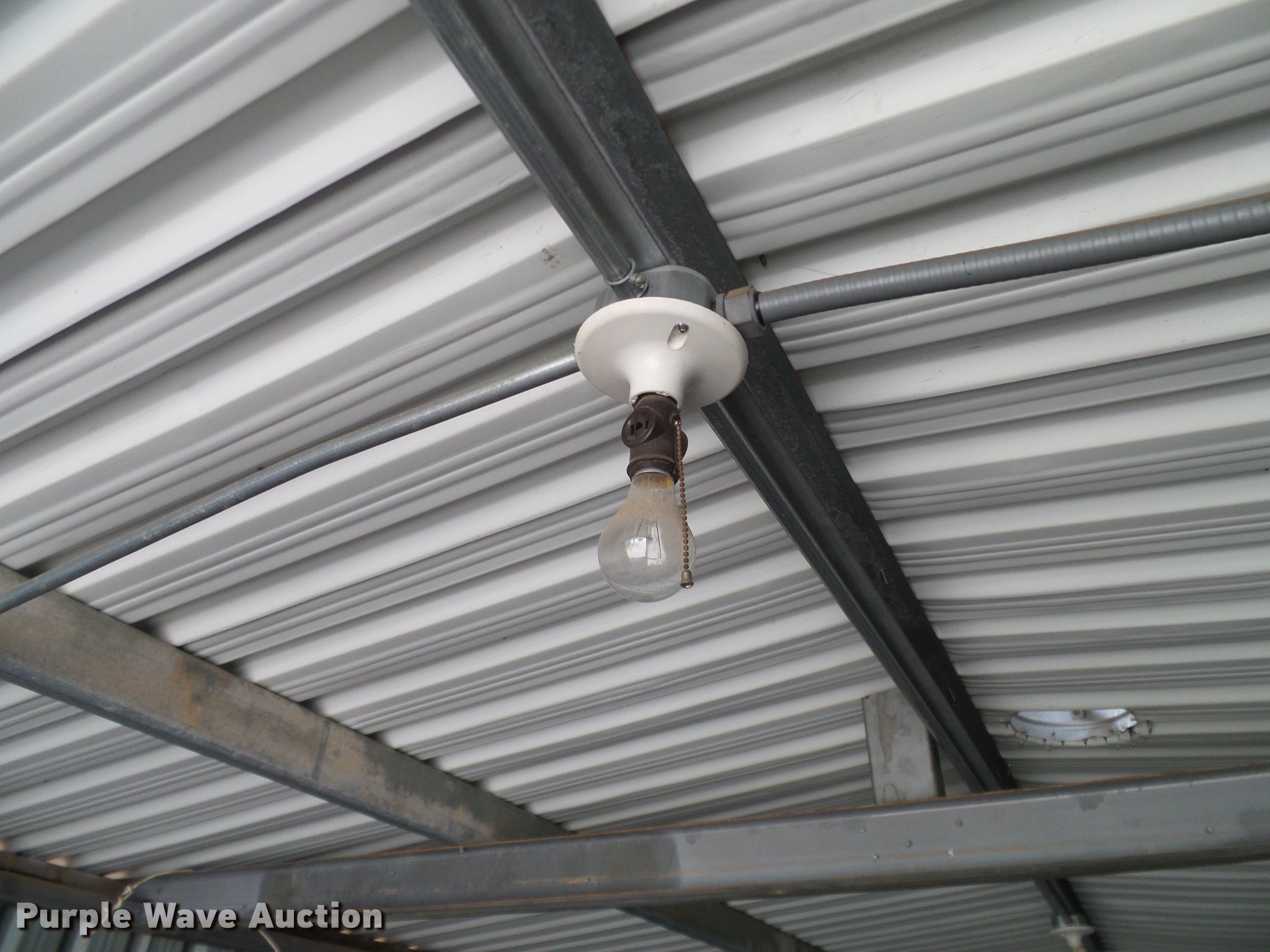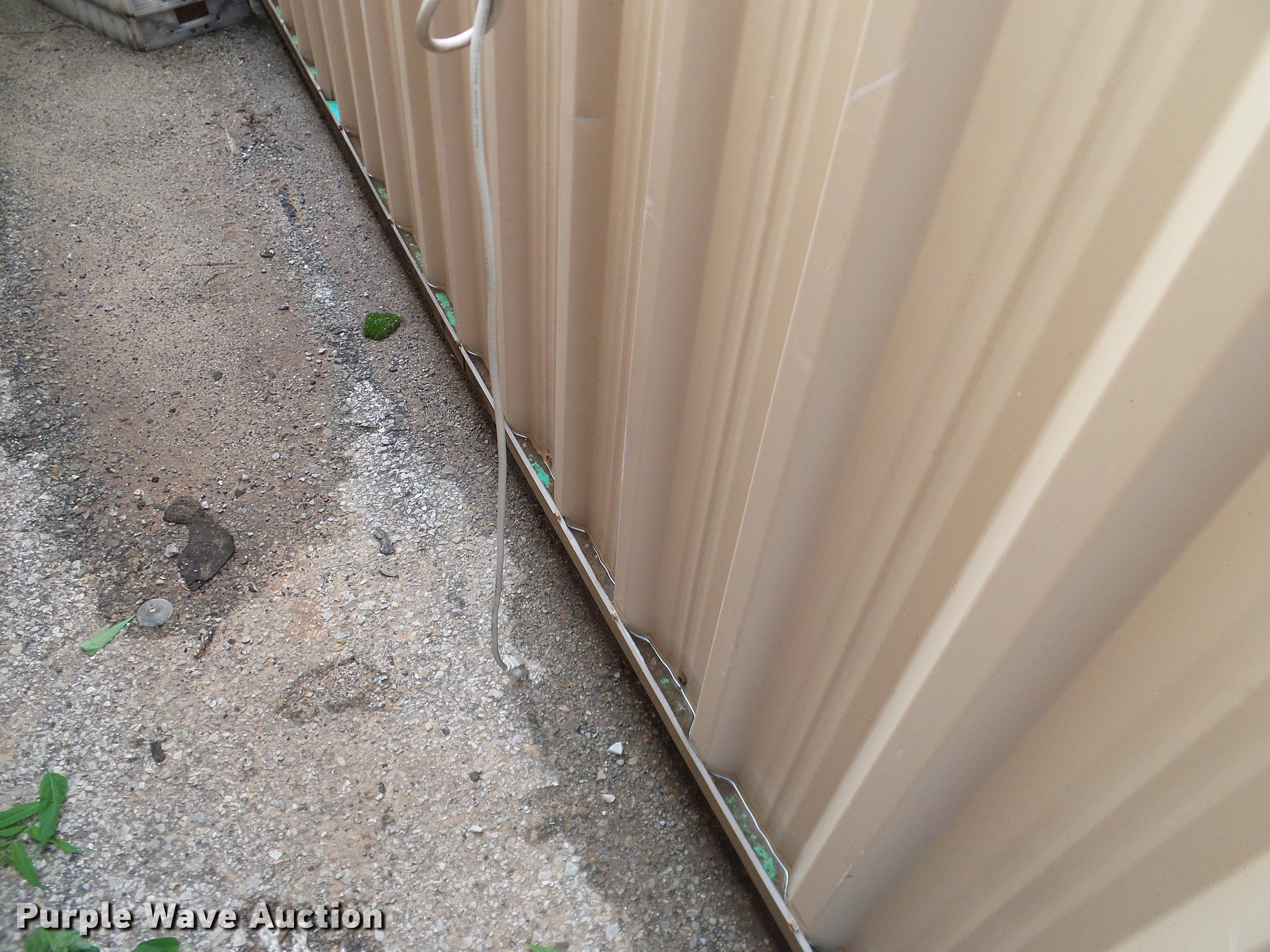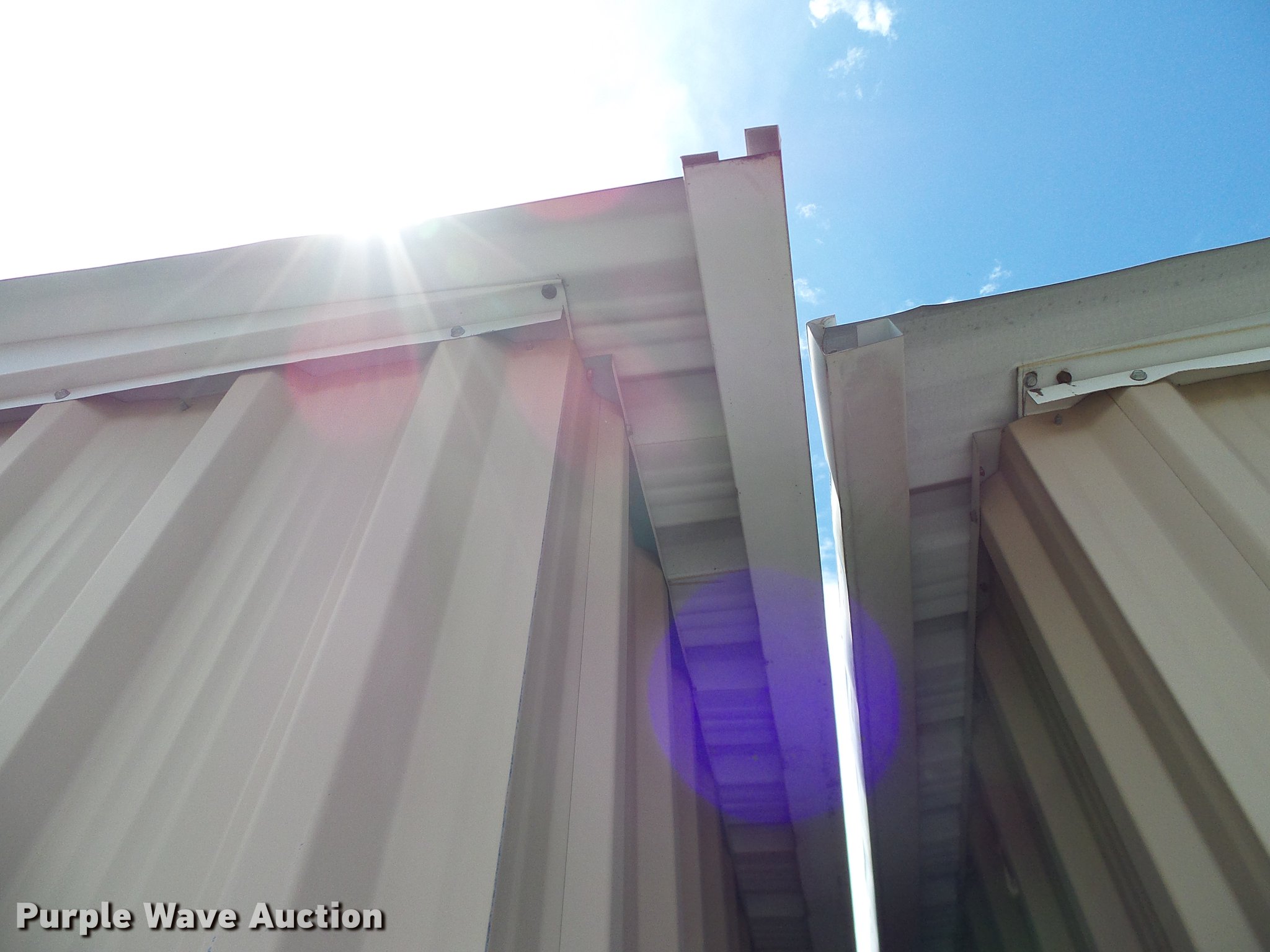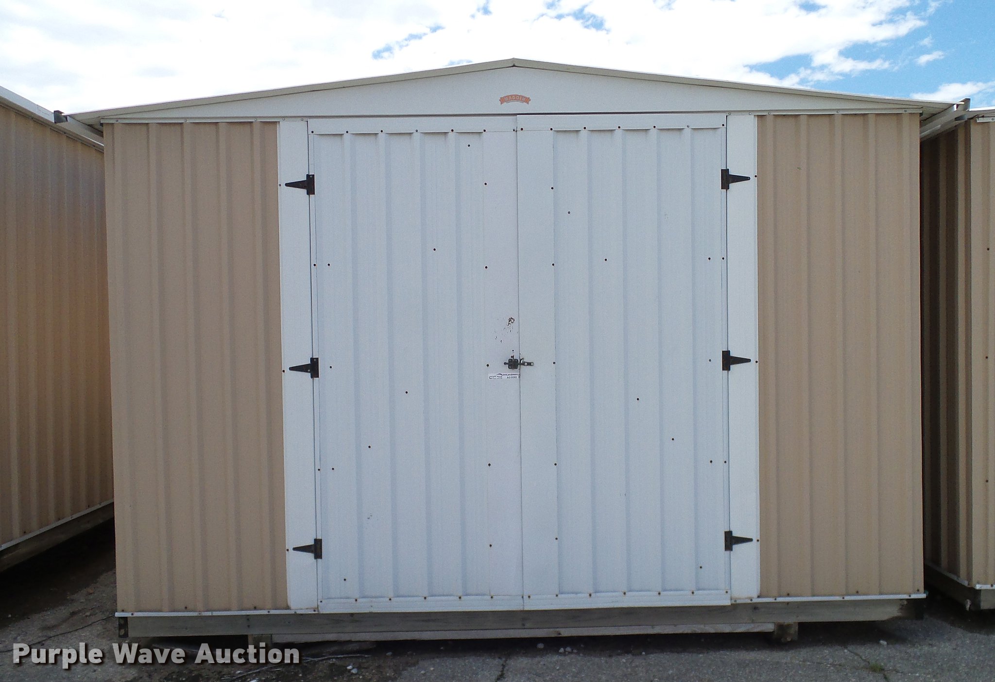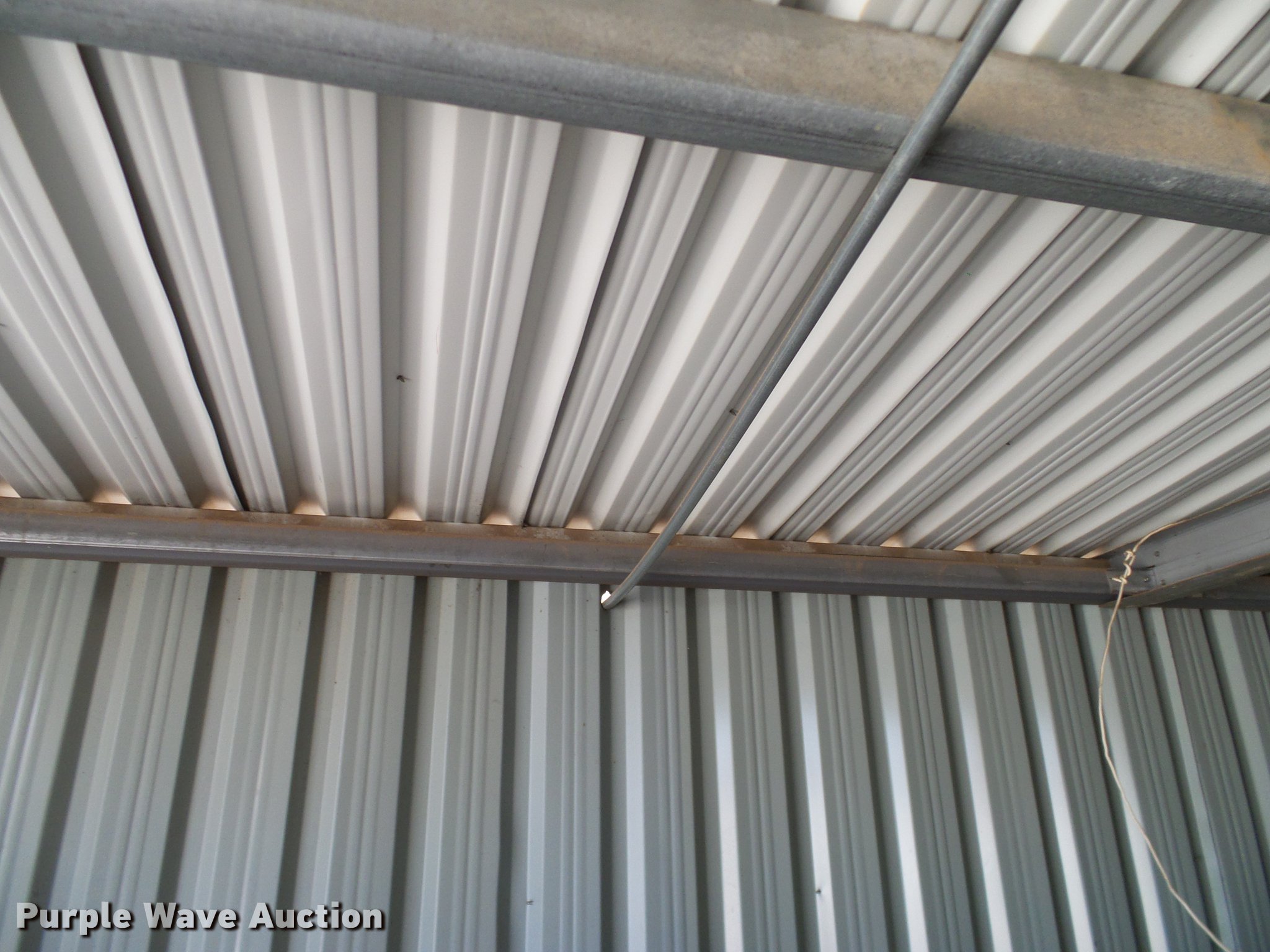 Purple Wave is selling a used Building Materials in Oklahoma. This item is a Madden storage shed with the following: 20'L x 12'W x 102"H, Benches, 110V lighting, Wood floor, Metal sides, Contents not included