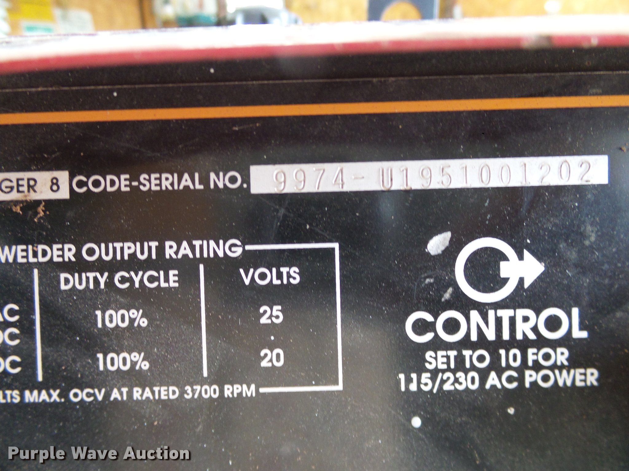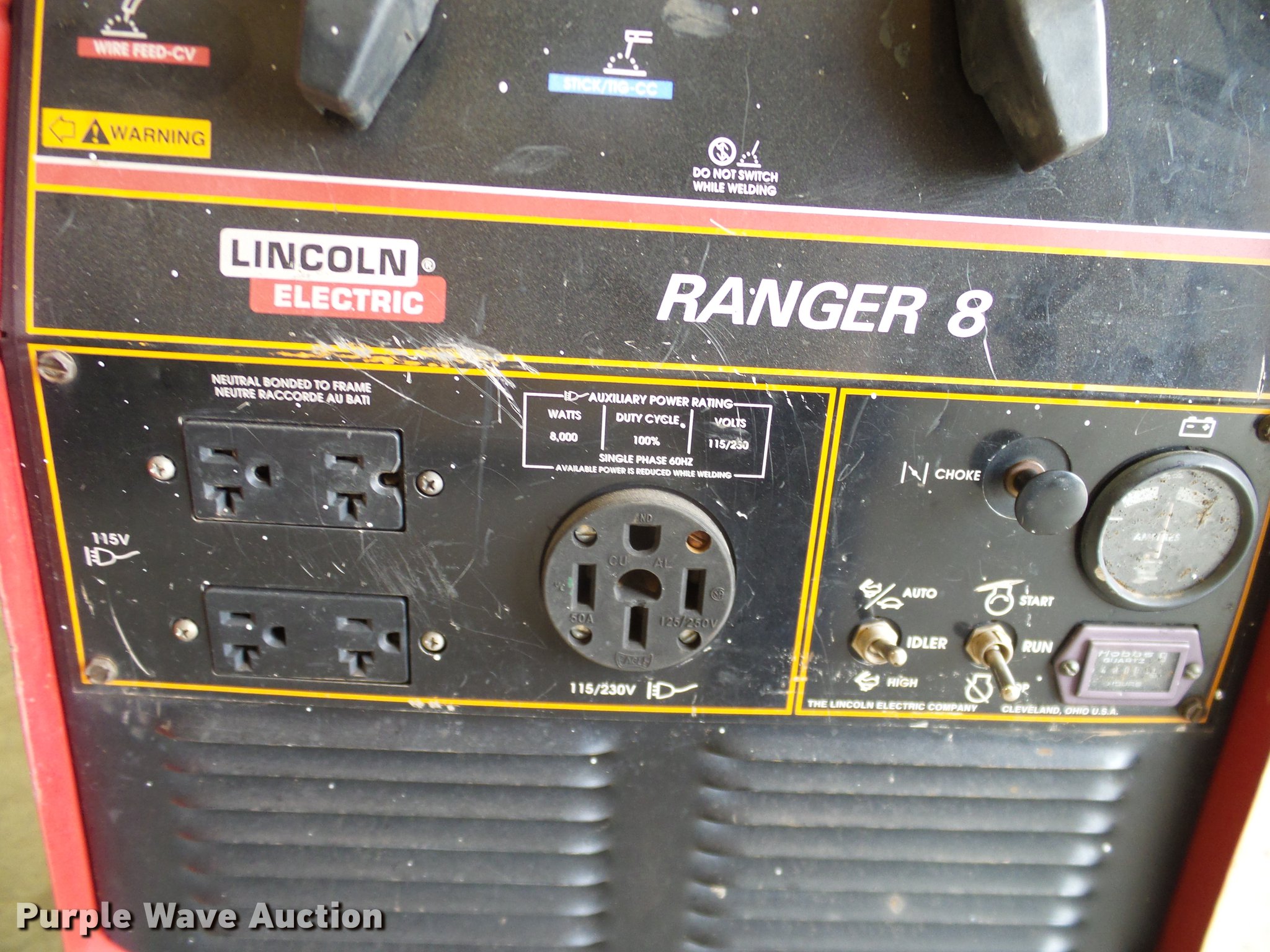 Purple Wave is selling a used Welder (Manual) in Oklahoma. This item is a Lincoln Ranger 8 welder/generator with the following: 480 hours on meter, Kohler Command 18 two cylinder gas engine, 115/230V outlets, Lifting eyelets, Owners manual, Serial 9774-U1951001202
