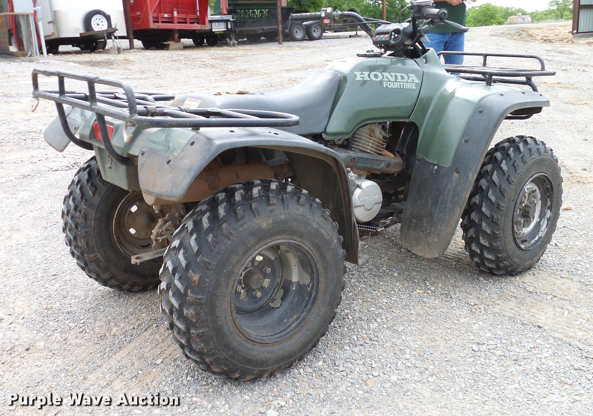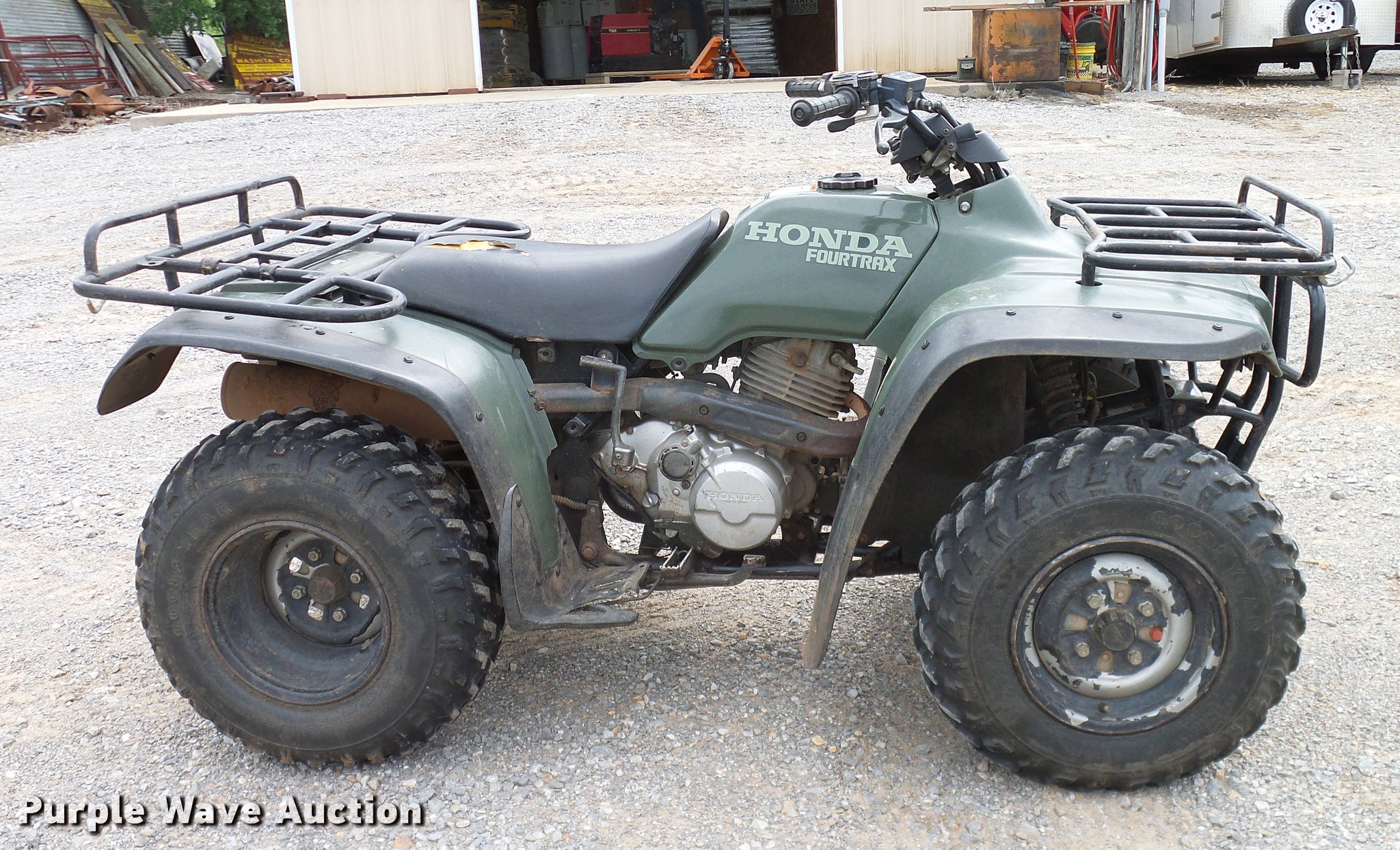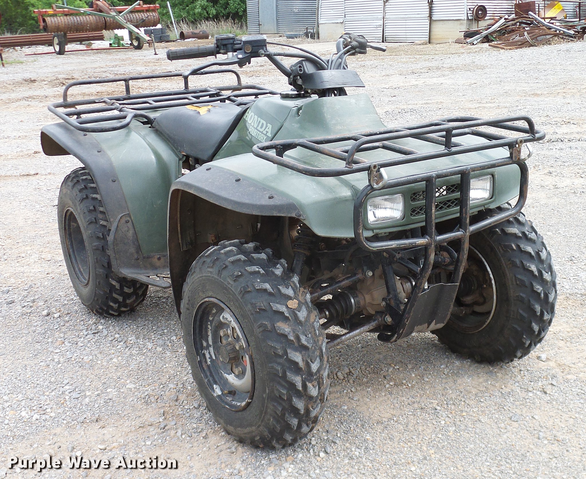 Purple Wave is selling a used ATV in Oklahoma. This item is a 1994 Honda Four Trax 300 ATV with the following: Single cylinder gas engine, Four wheel drive, One person capacity, Electric start, Grill guard, Racks, 23x8-11 front tires, 24x9-11 rear tires, Engine oil leak