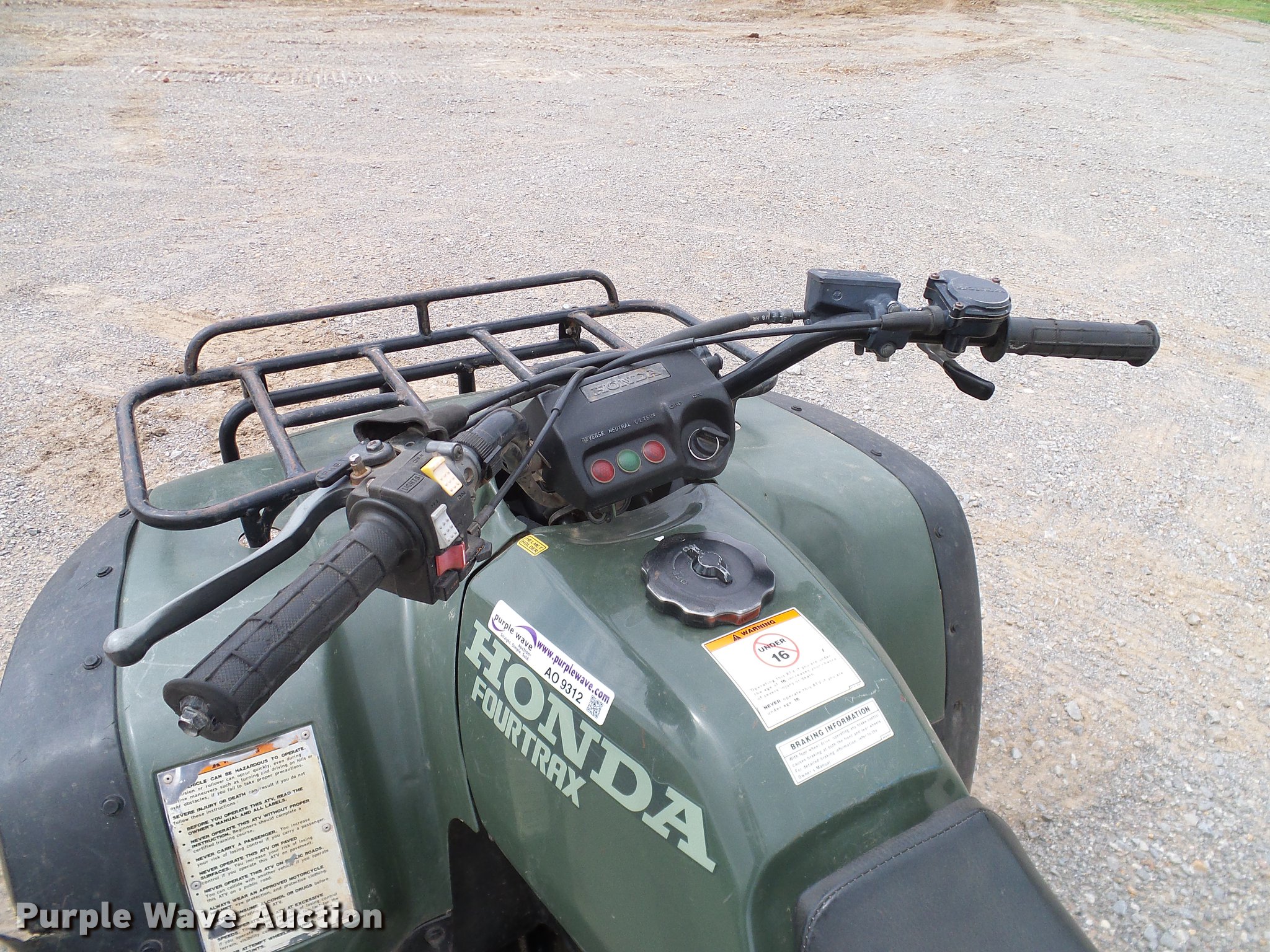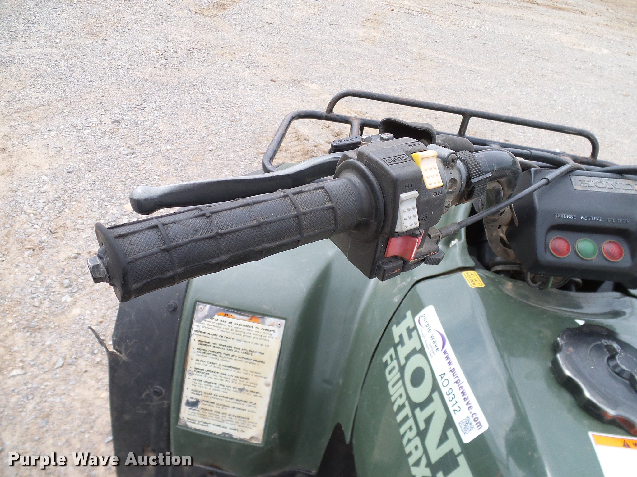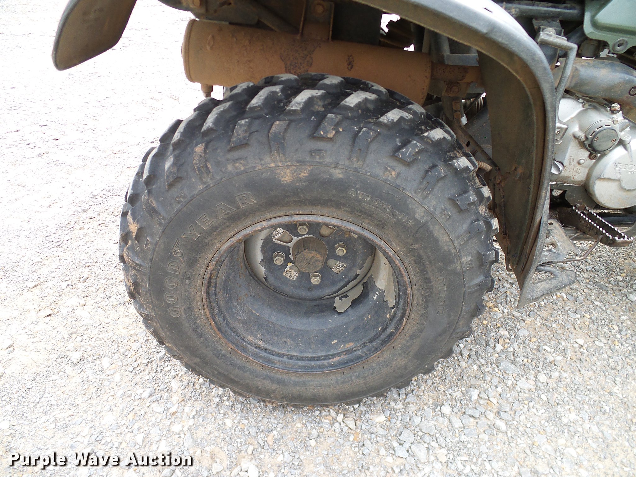 Purple Wave is selling a used ATV in Oklahoma. This item is a 1994 Honda Four Trax 300 ATV with the following: Single cylinder gas engine, Four wheel drive, One person capacity, Electric start, Grill guard, Racks, 23x8-11 front tires, 24x9-11 rear tires, Engine oil leak