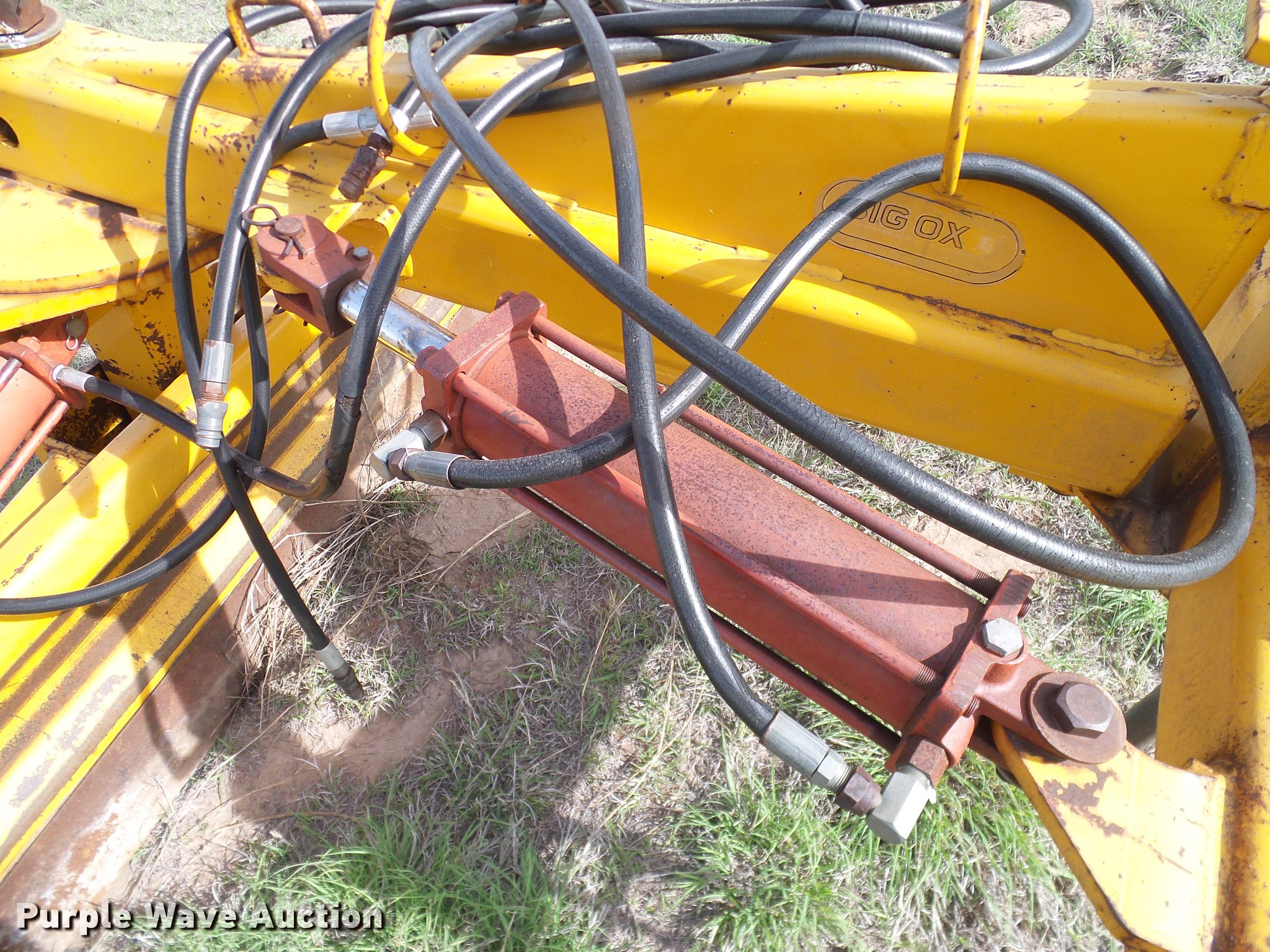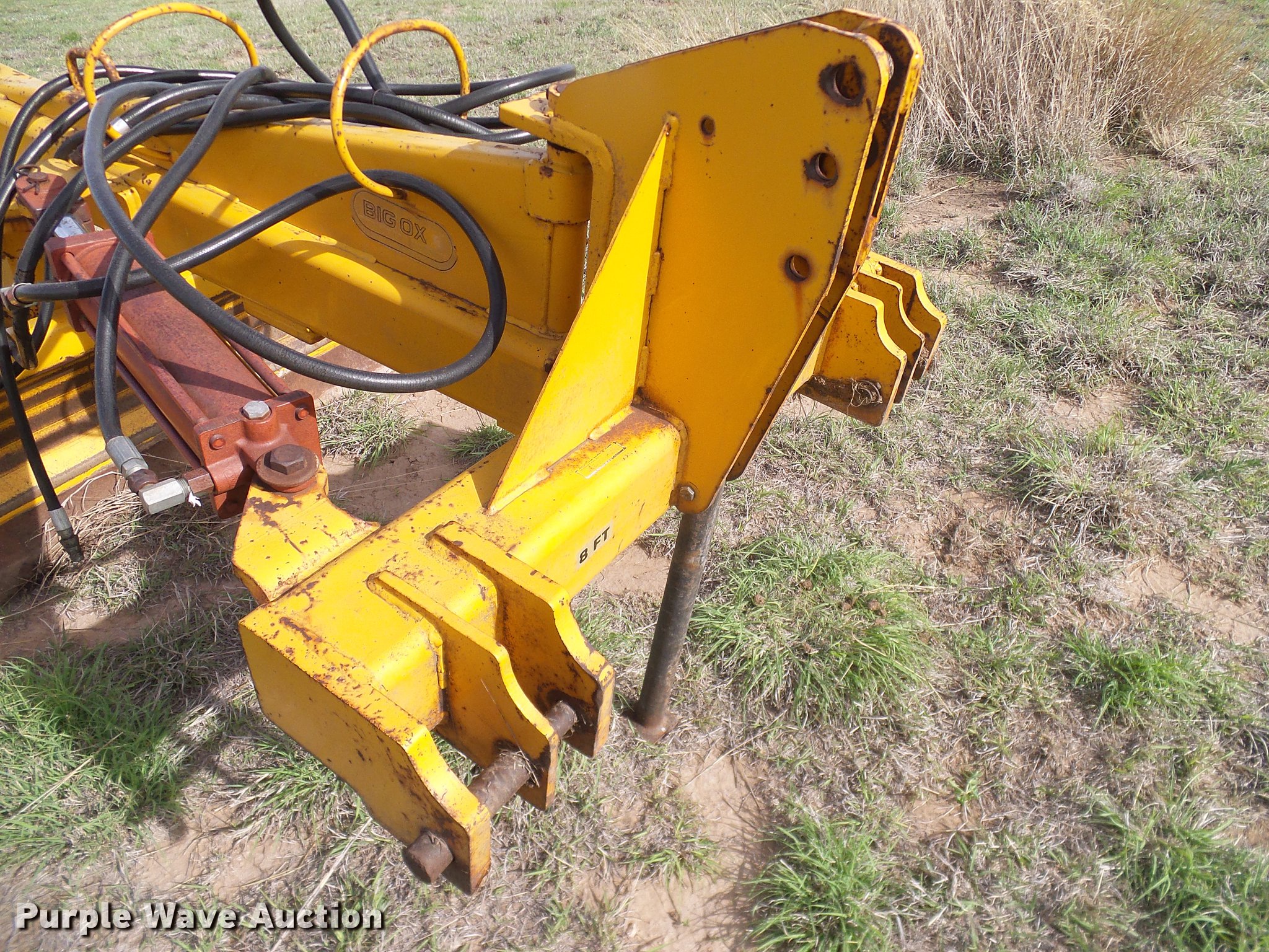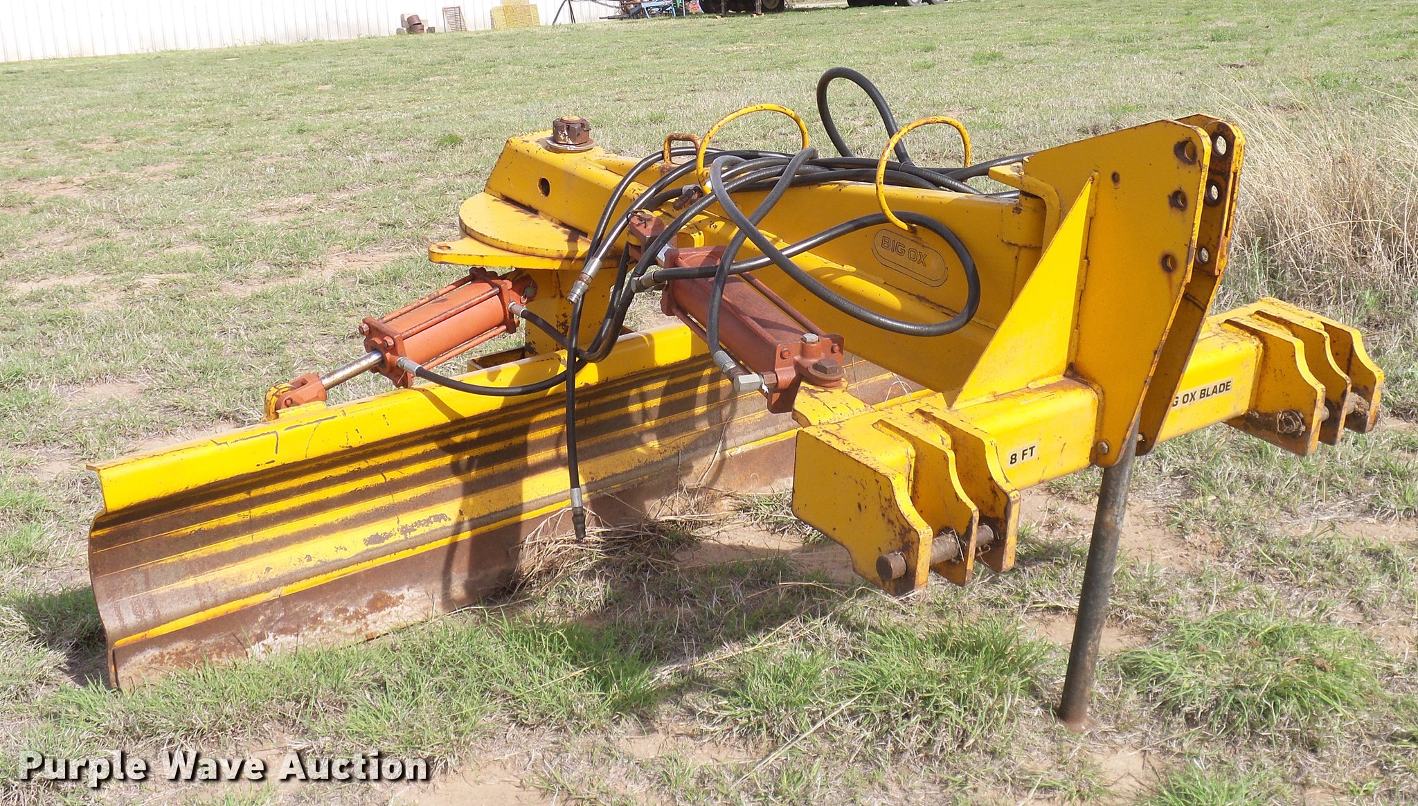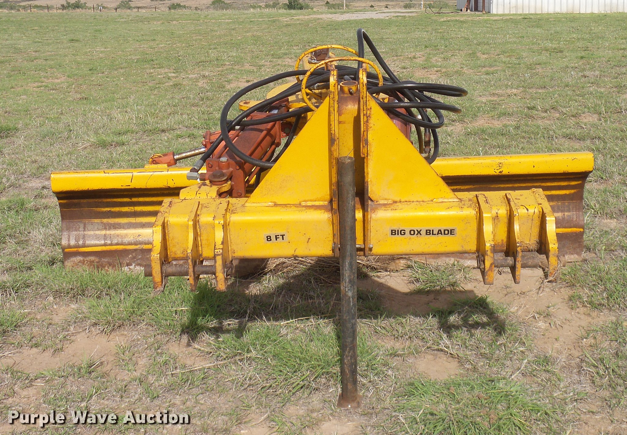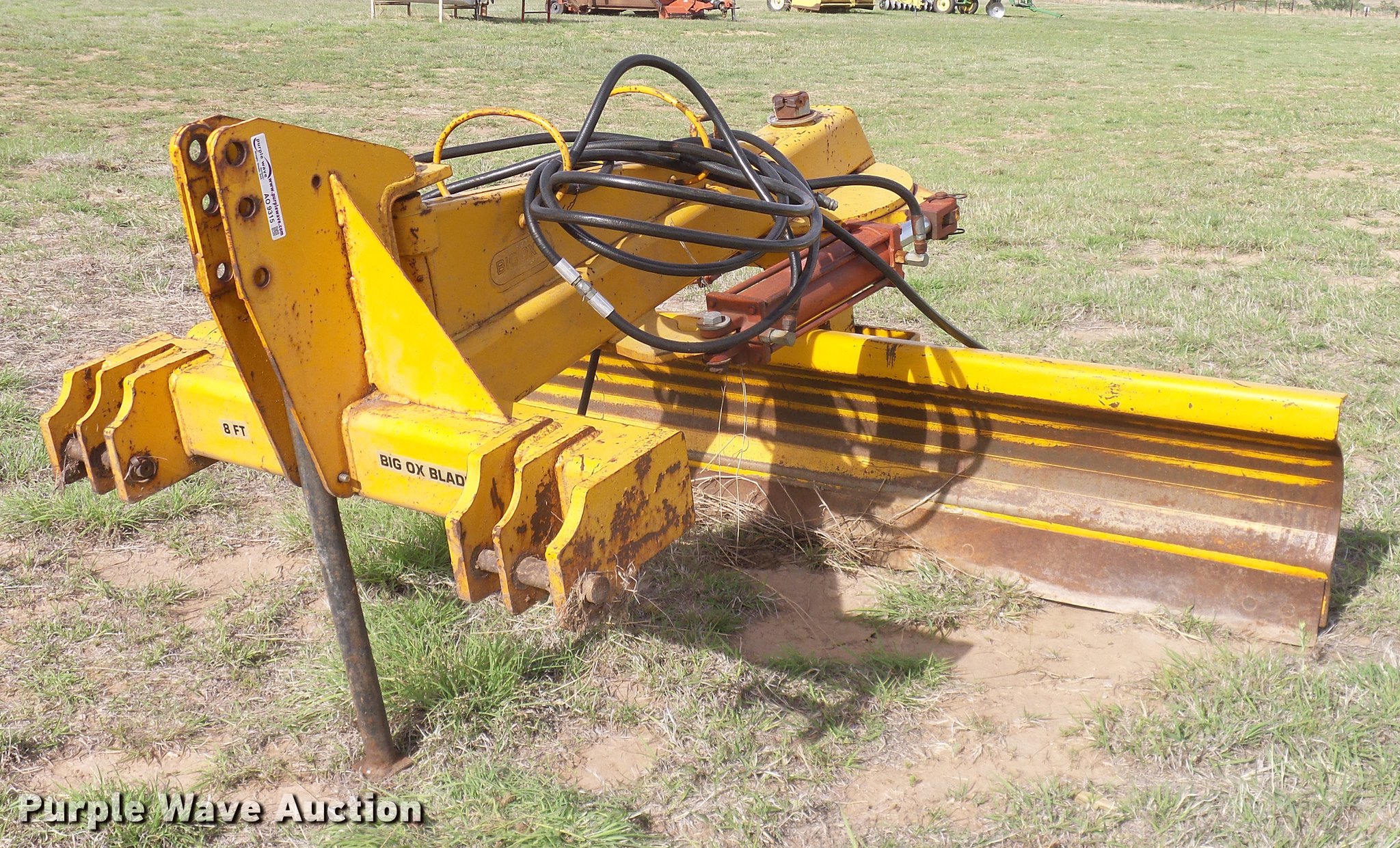 Purple Wave is selling a used Ag Equip. Other in Oklahoma. This item is a Big Ox blade with the following: 8'W, Bolt-on cutting edge, Hydraulic adjustment, Cylinders pitted, Three point