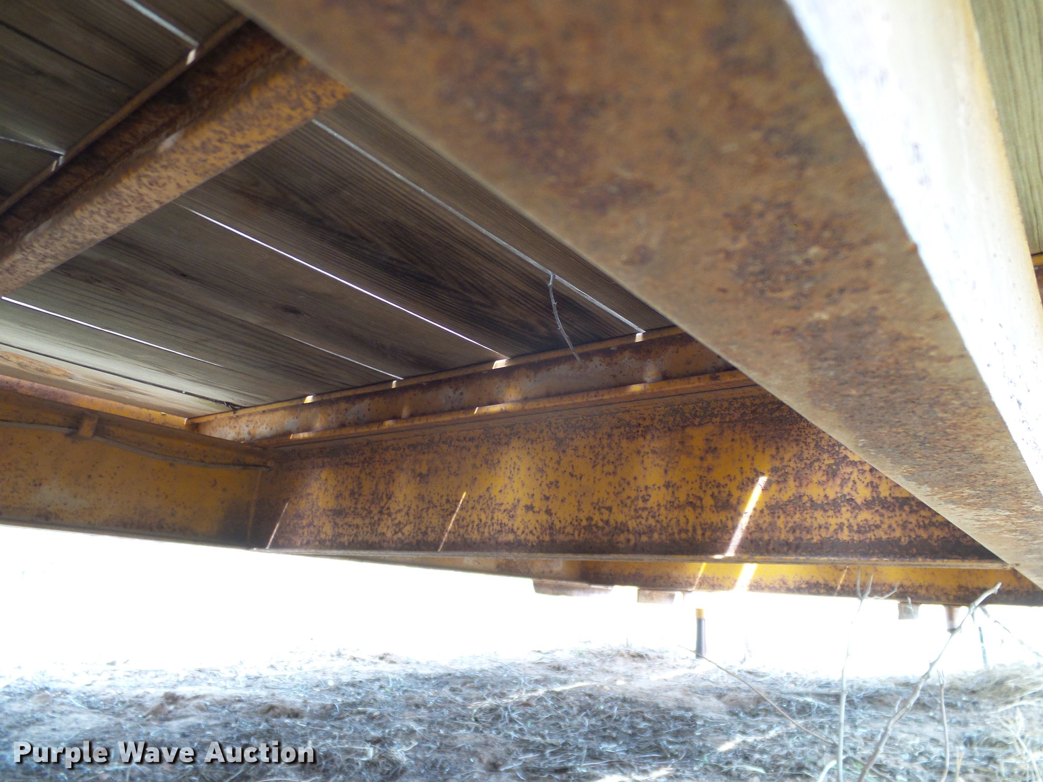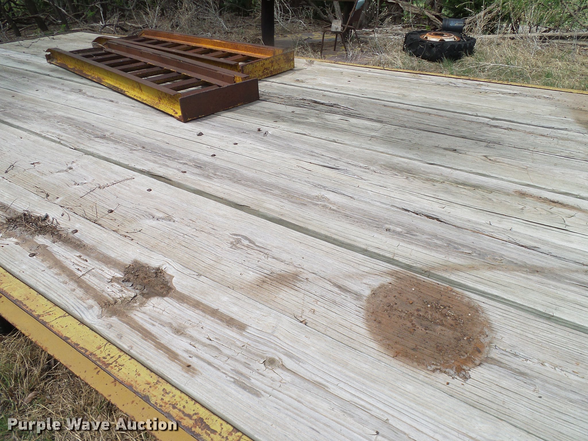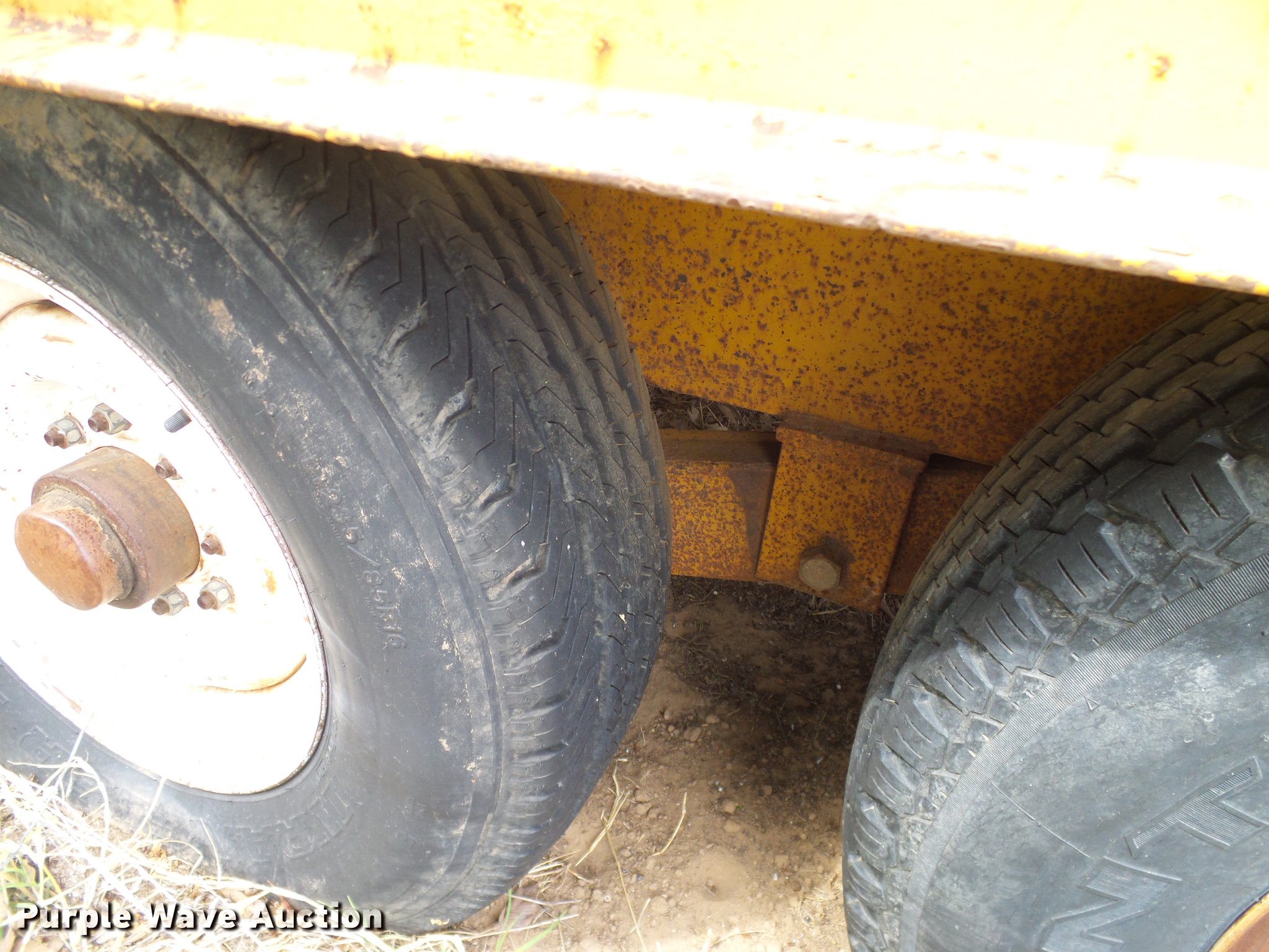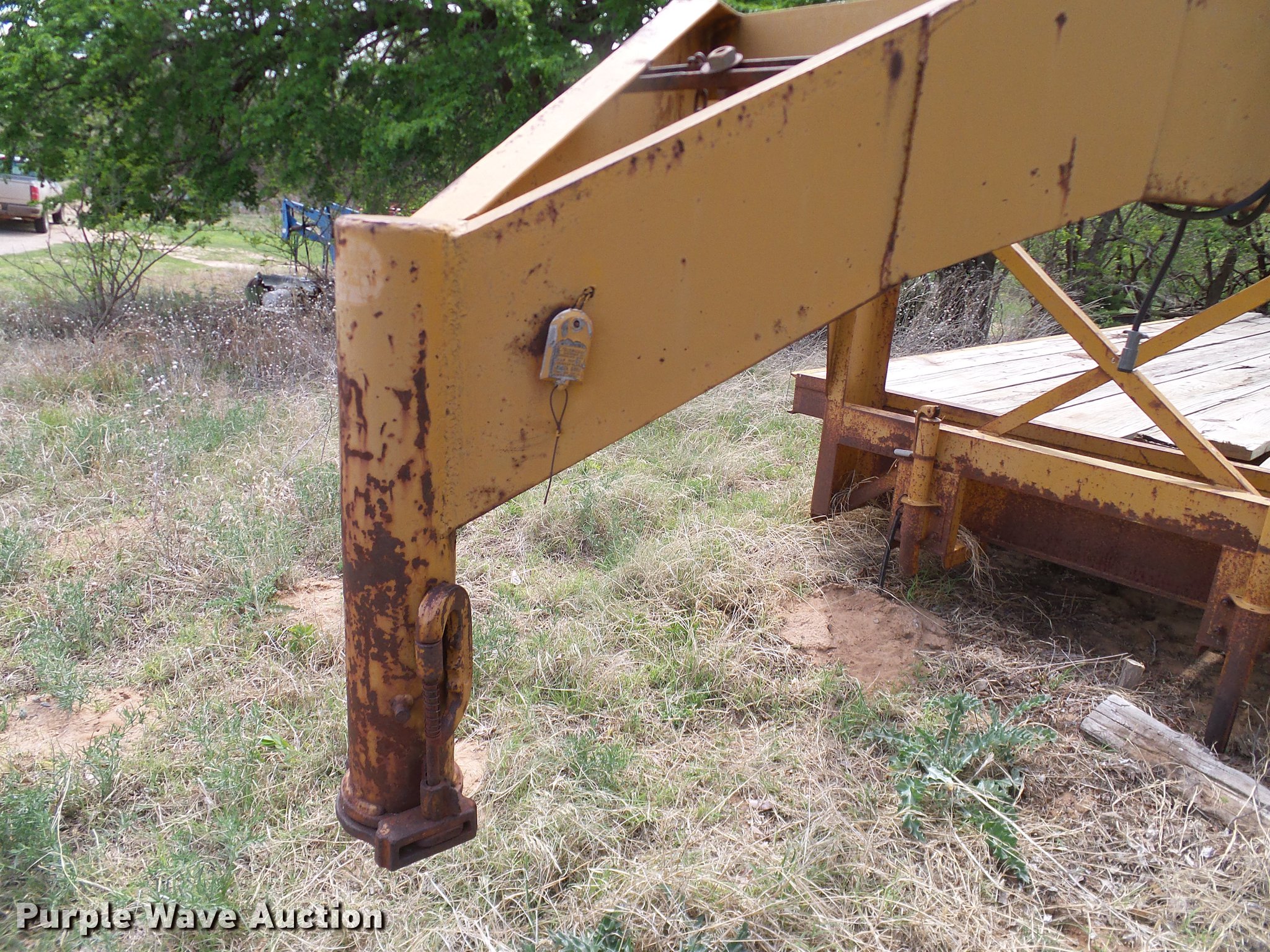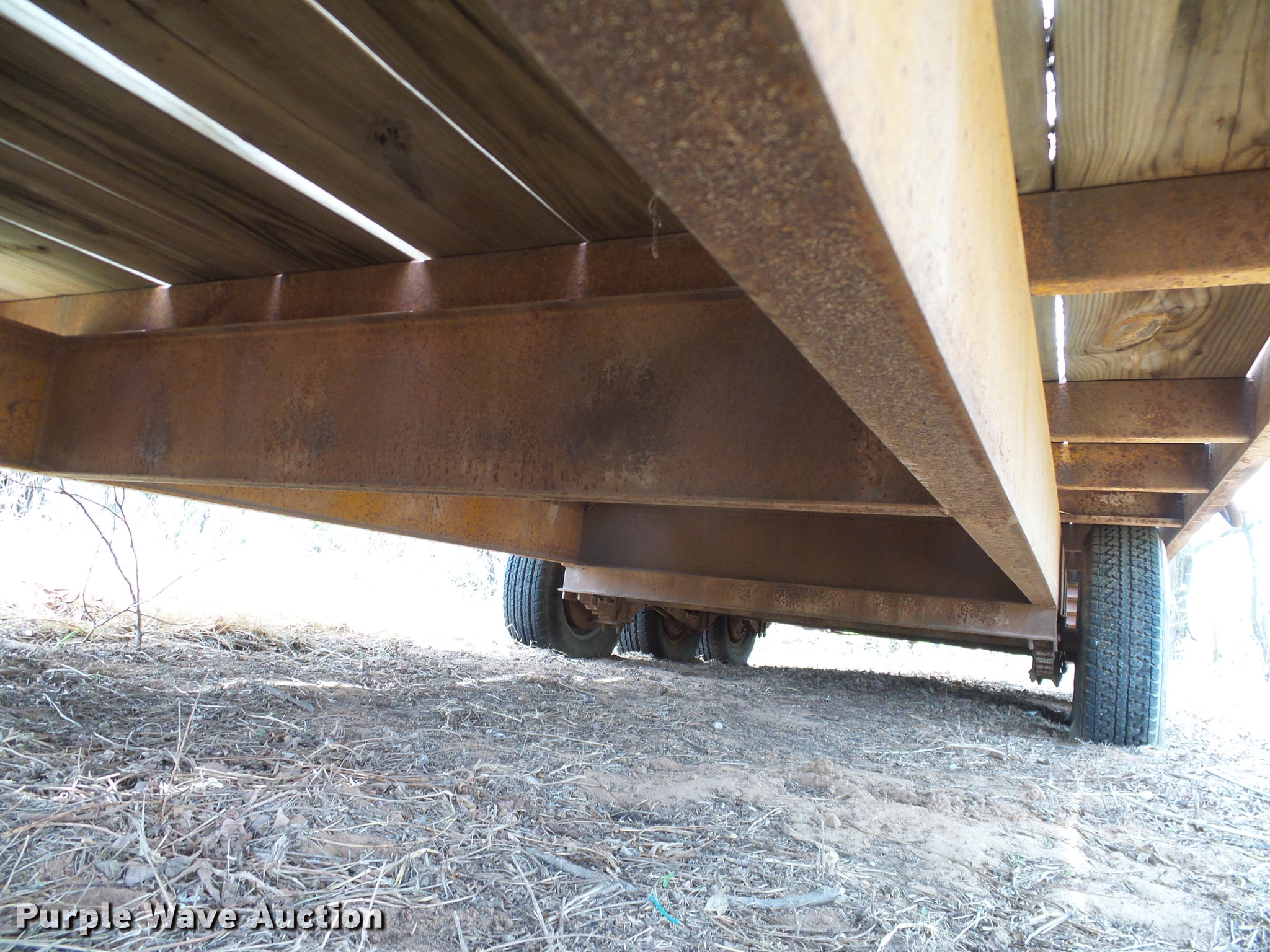 Purple Wave is selling a used Equip. Trailer in Oklahoma. This item is a Belshe equipment trailer with the following: 32'L x 95"W, 20'L wood deck, 4'L dovetail, 6'L ramps, 30" floor height, D-ring tie downs, Gooseneck hitch, Dual leg landing gear, Spring suspension, Electric brakes, Triple axle, Steel wheels, 235/80R16 tires, Some bearings may need to be replaced, Possible axle issues