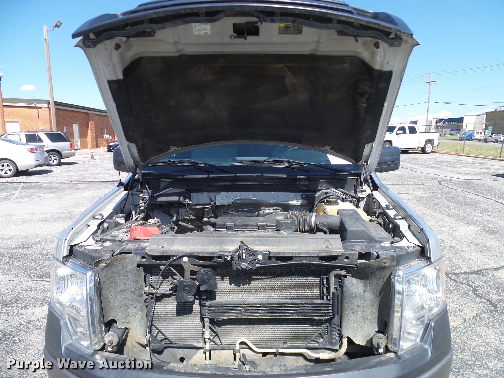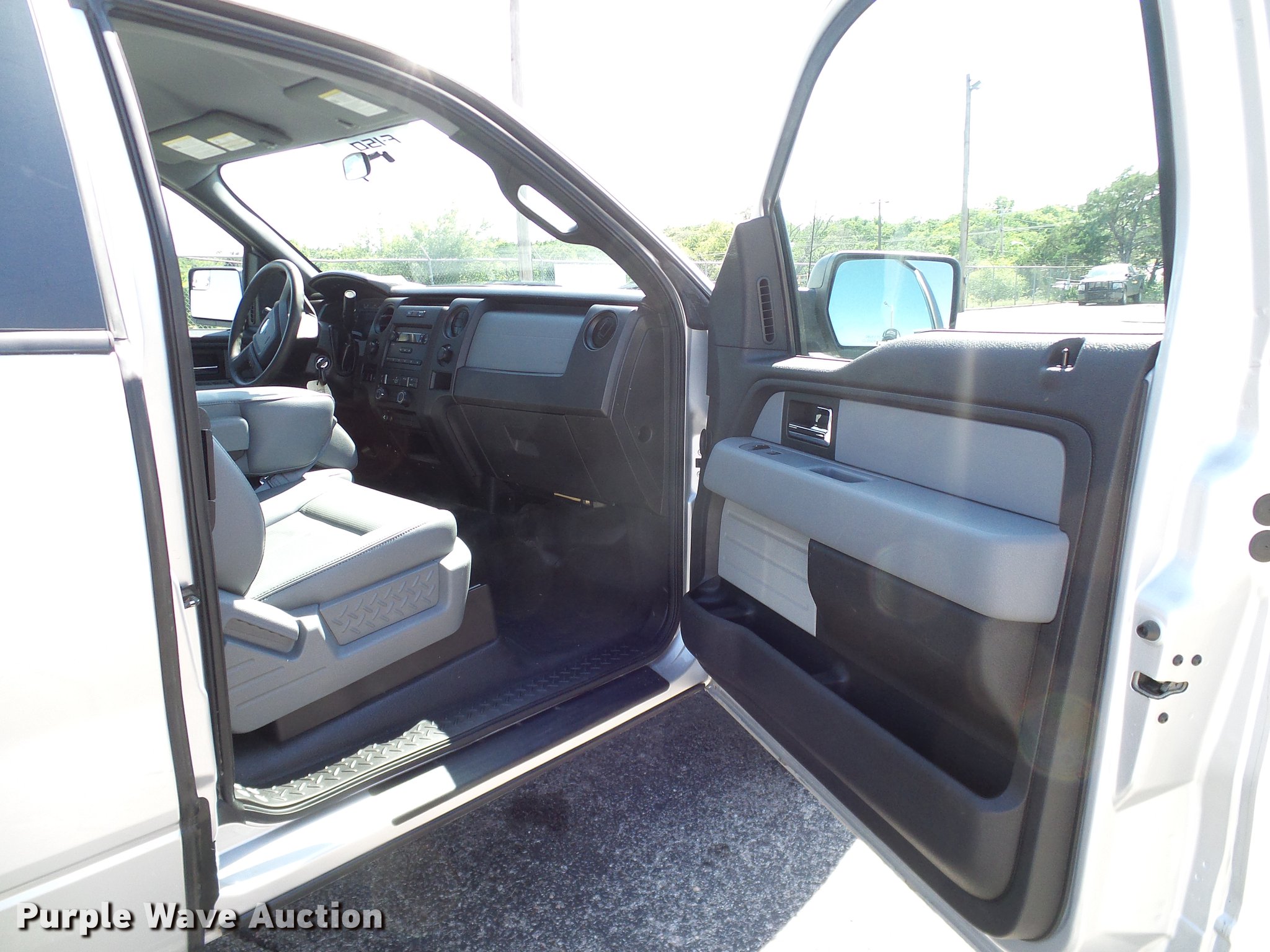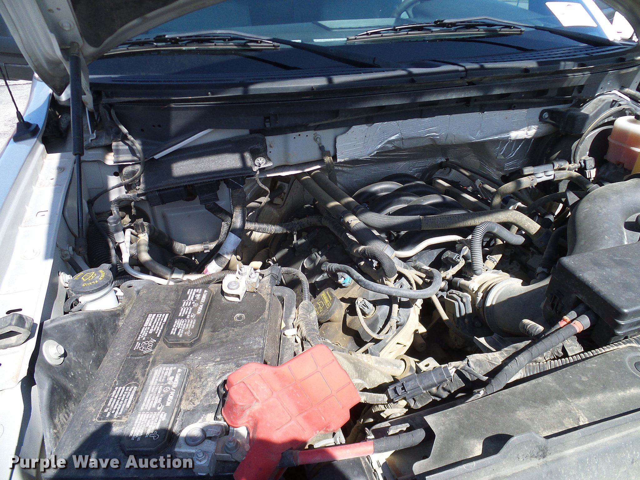 Purple Wave is selling a used 1/2 Ton Pickup or Van in Oklahoma. This item is a 2012 Ford F150 SuperCab pickup truck with the following: 127,828 miles on odometer, 5.0L V8 gas engine, Automatic transmission, Four wheel drive, AC and heat, Tilt, Cruise, AM/FM, Power windows, locks, and mirrors, Vinyl interior, Front tow hooks, Receiver hitch, Trailer wiring, Firestone 245/70R17 tires