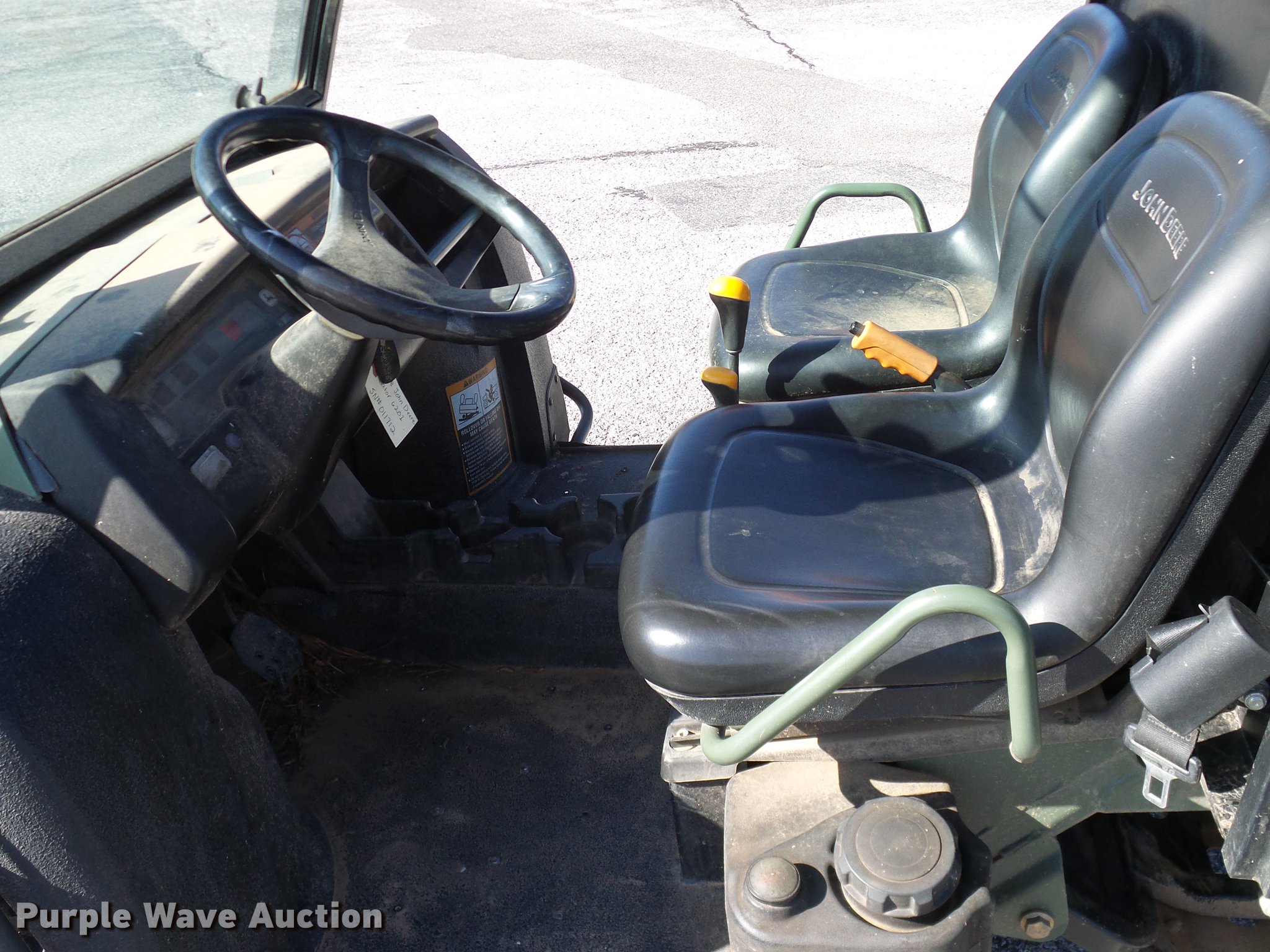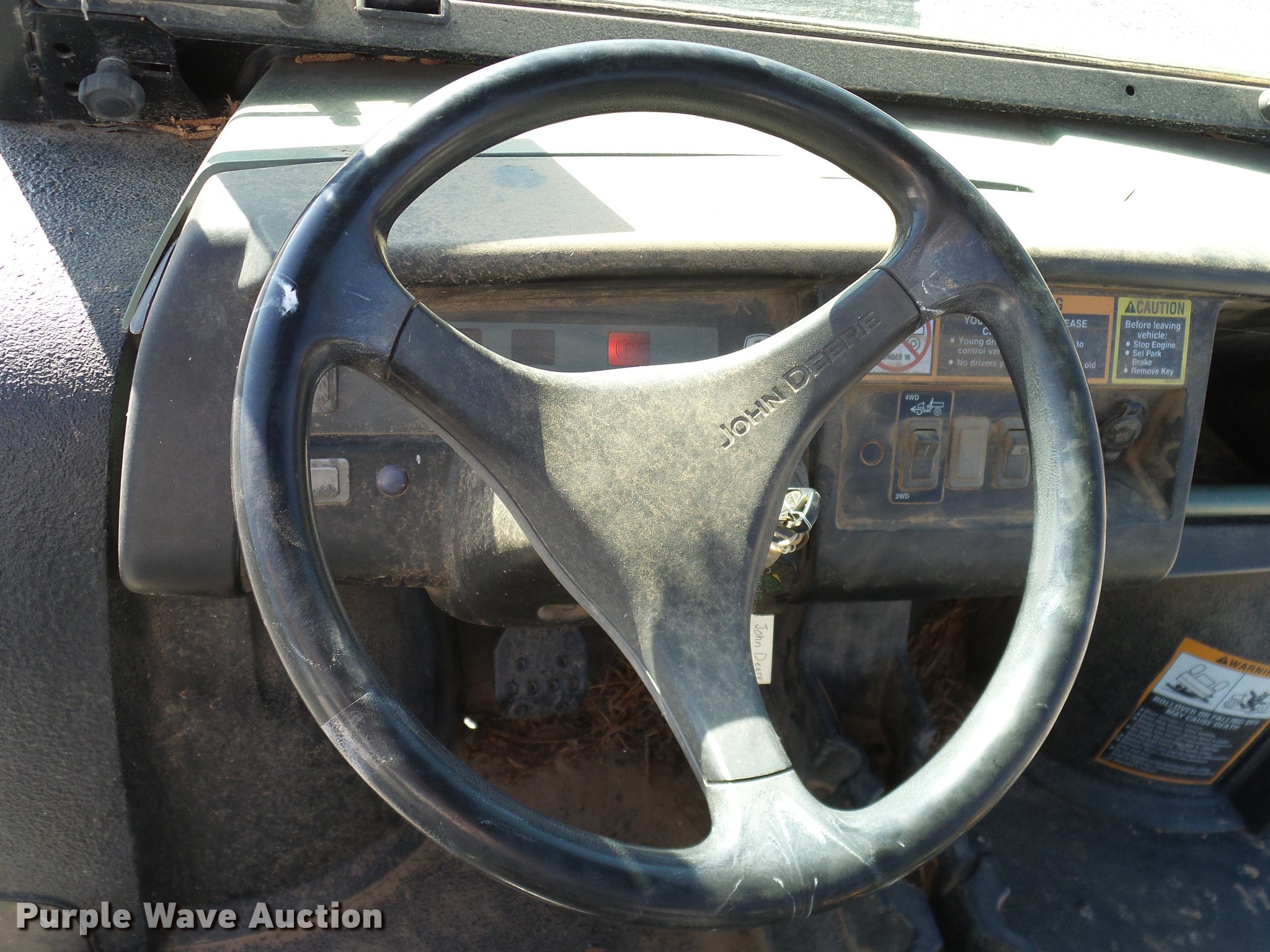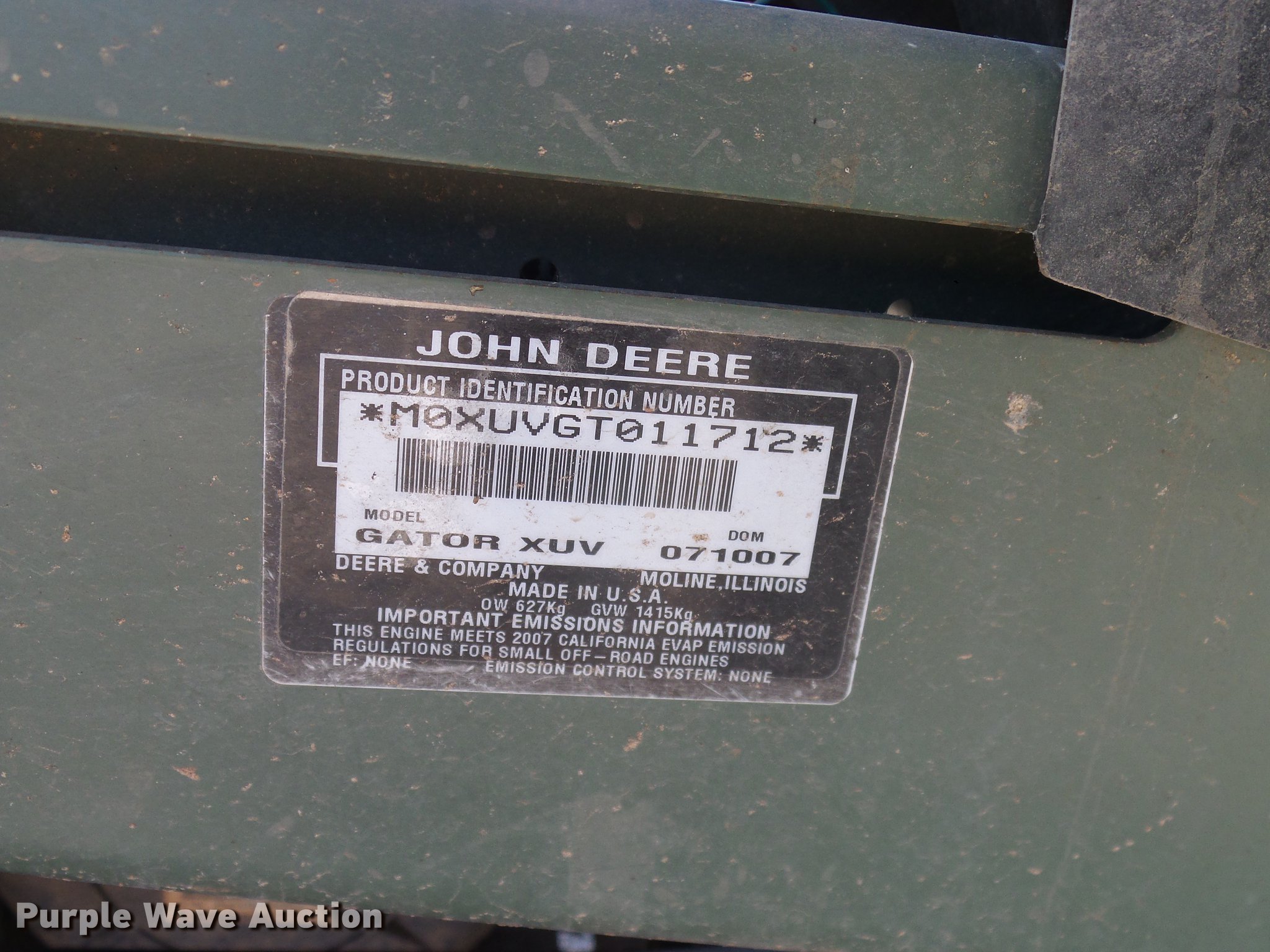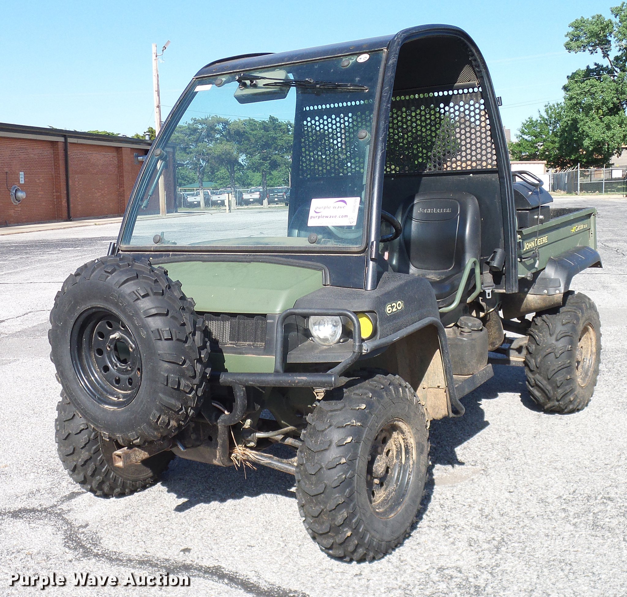 Purple Wave is selling a used Utility Vehicle in Oklahoma. This item is a 2007 John Deere Gator 620i utility vehicle with the following: 394 hours on meter, Single cylinder gas engine, Automatic transmission, Four wheel drive, OROPS canopy, Electric start, Grill guard, Manual dump bed, Warn winch, Toolbox, Receiver hitch, 25x11.00-12 tires