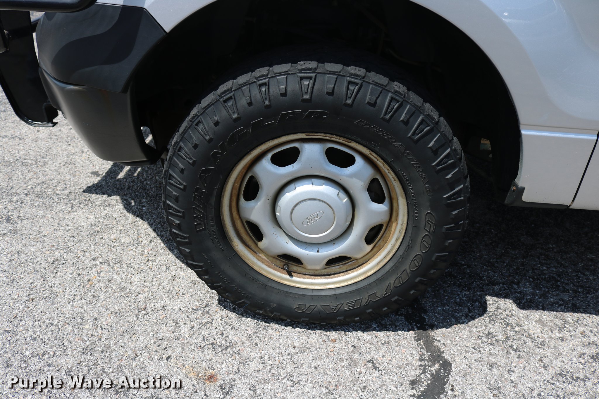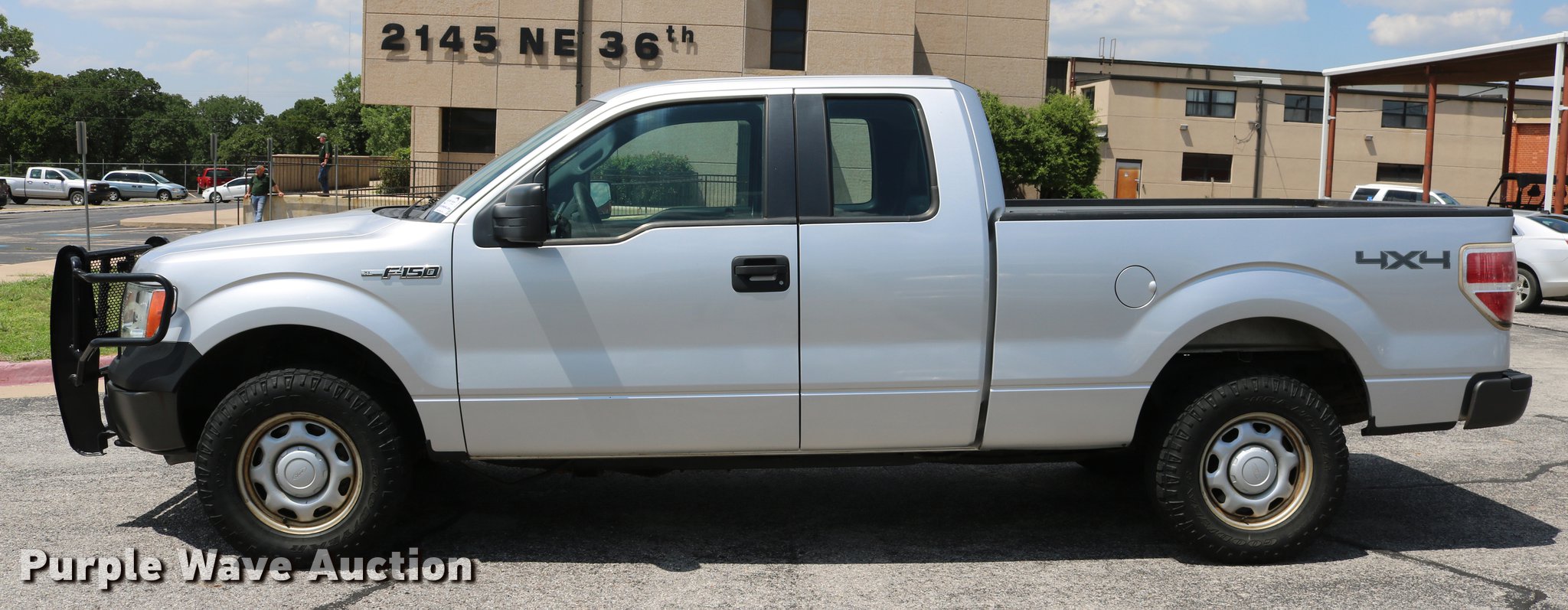 Purple Wave is selling a used 1/2 Ton Pickup or Van in Oklahoma. This item is a 2011 Ford F150 SuperCab pickup truck with the following: 102,795 miles on odometer, 5.0L V8 gas engine, Automatic transmission, Four wheel drive, AC and heat, Tilt, Cruise, AM/FM, Power windows, locks, and mirrors, Vinyl interior, Front tow hooks, Grill guard, Receiver hitch, Trailer wiring, Goodyear 265/70R17 tires, Cracked windshield