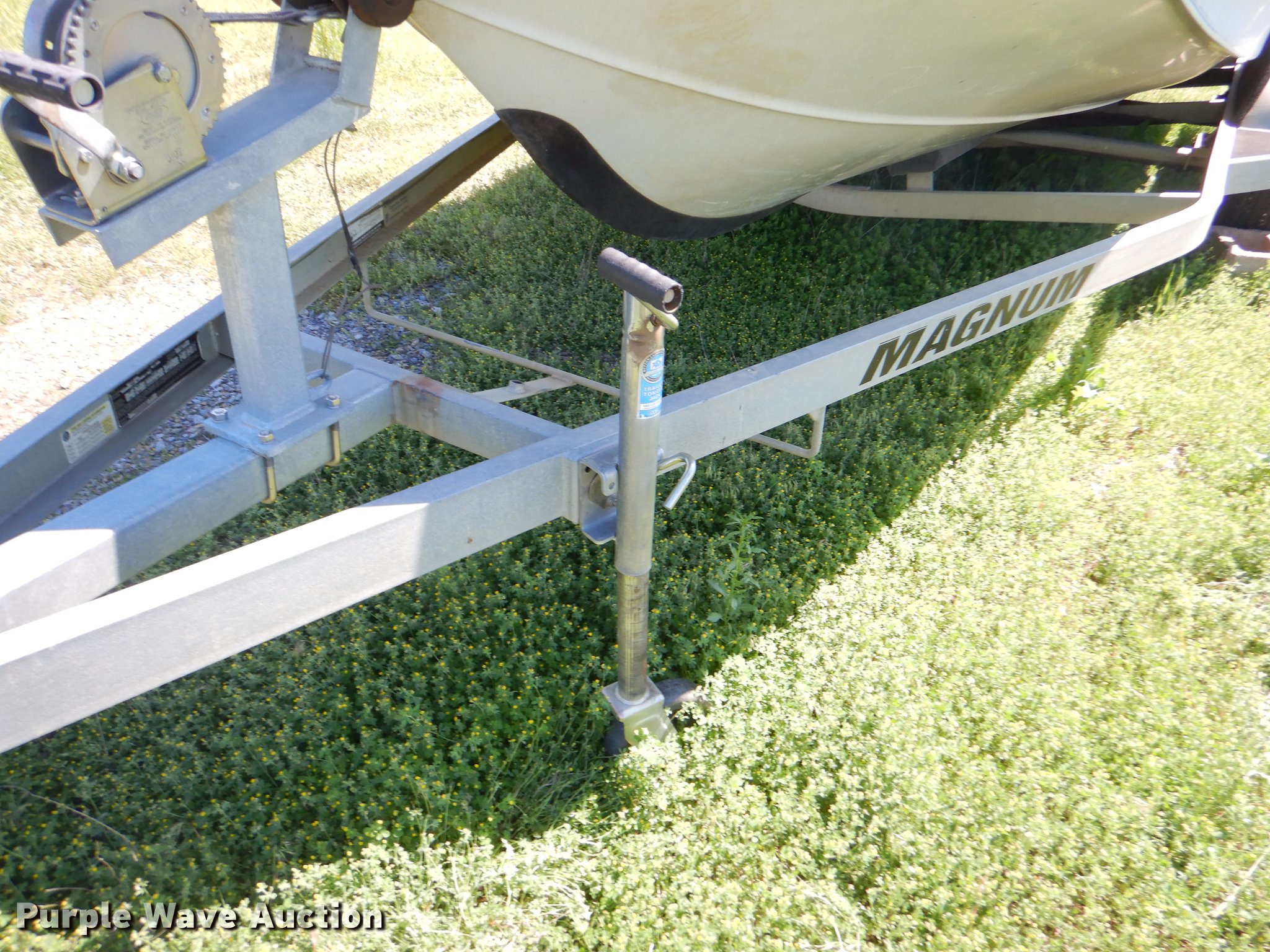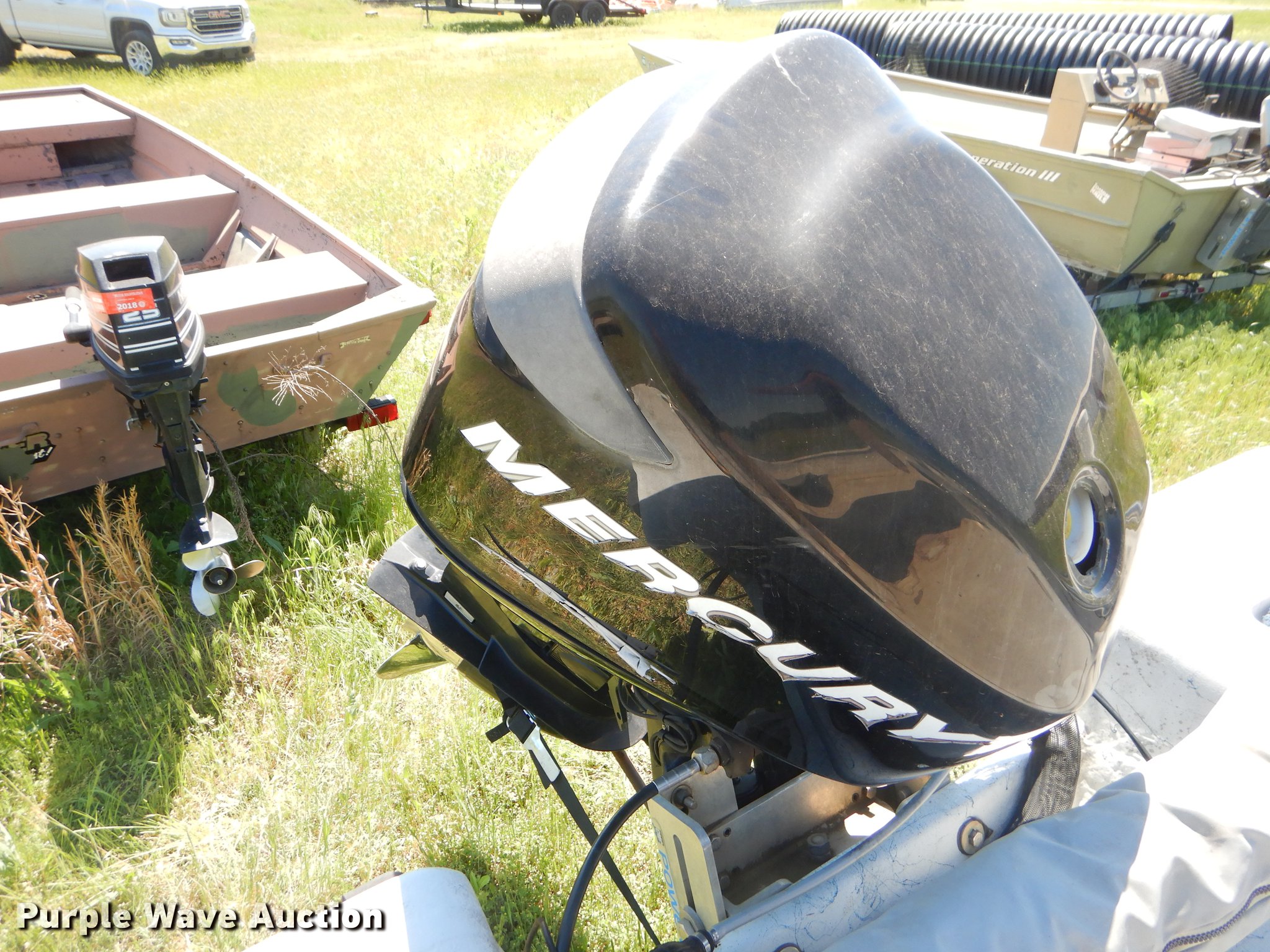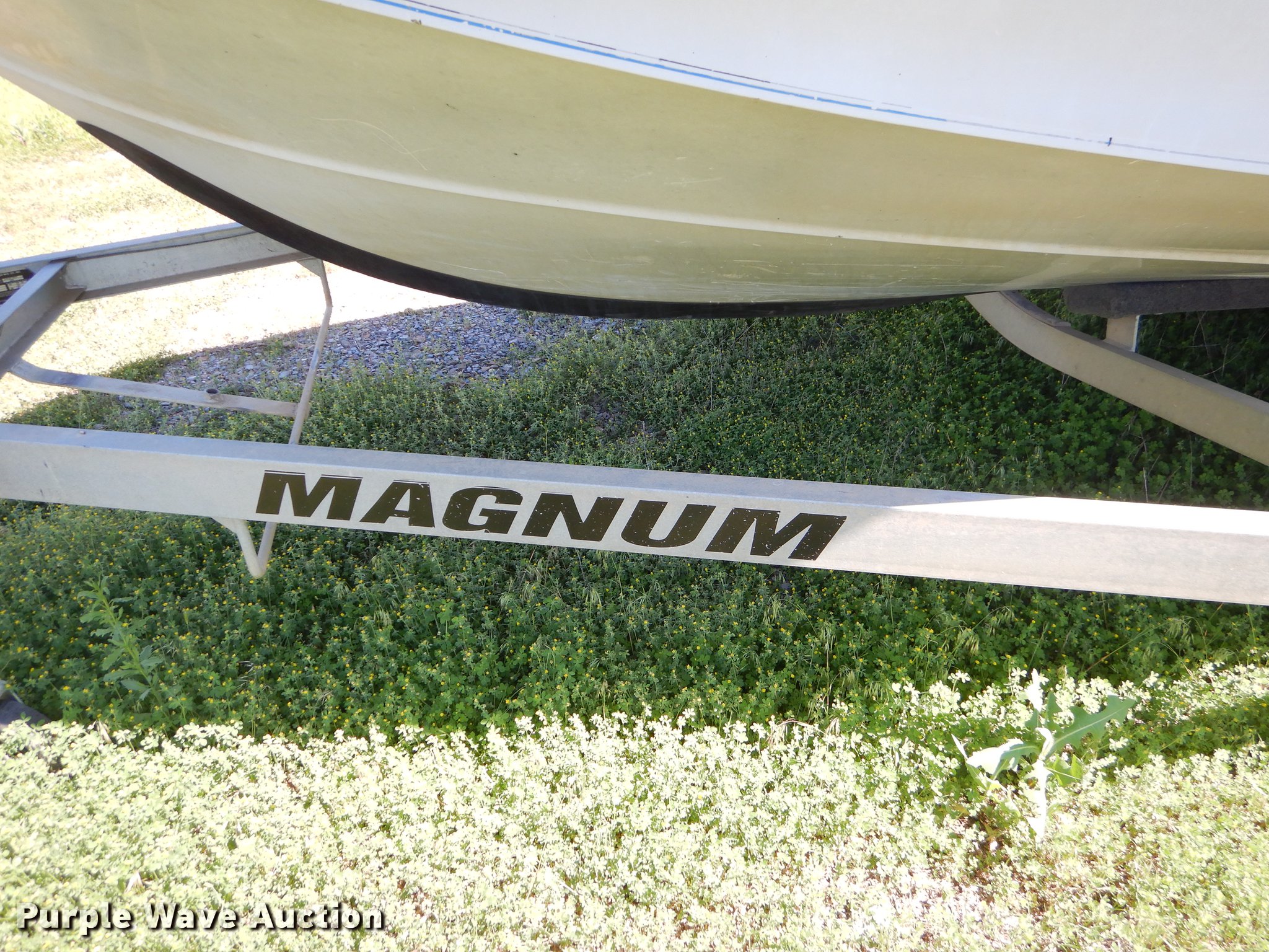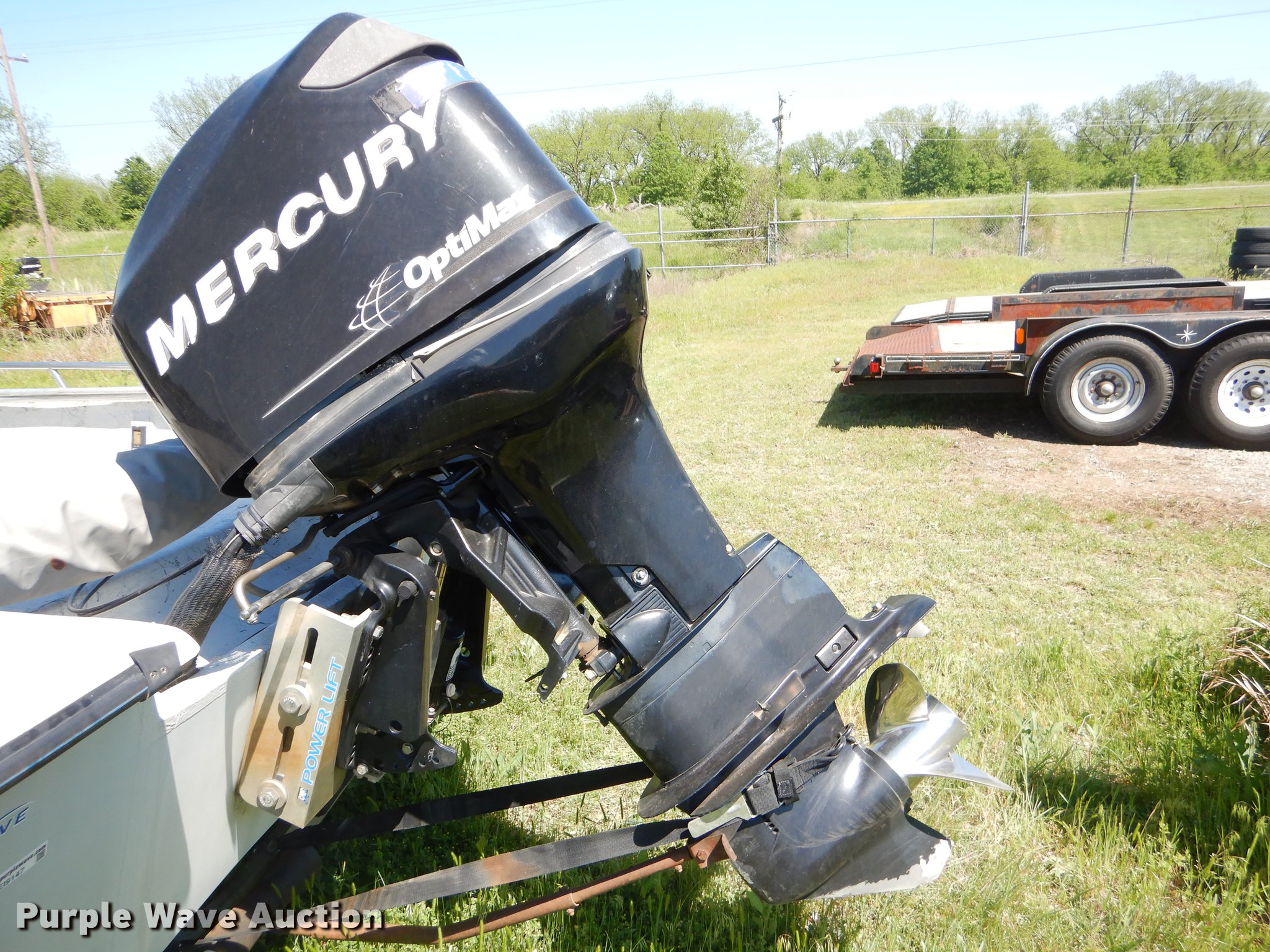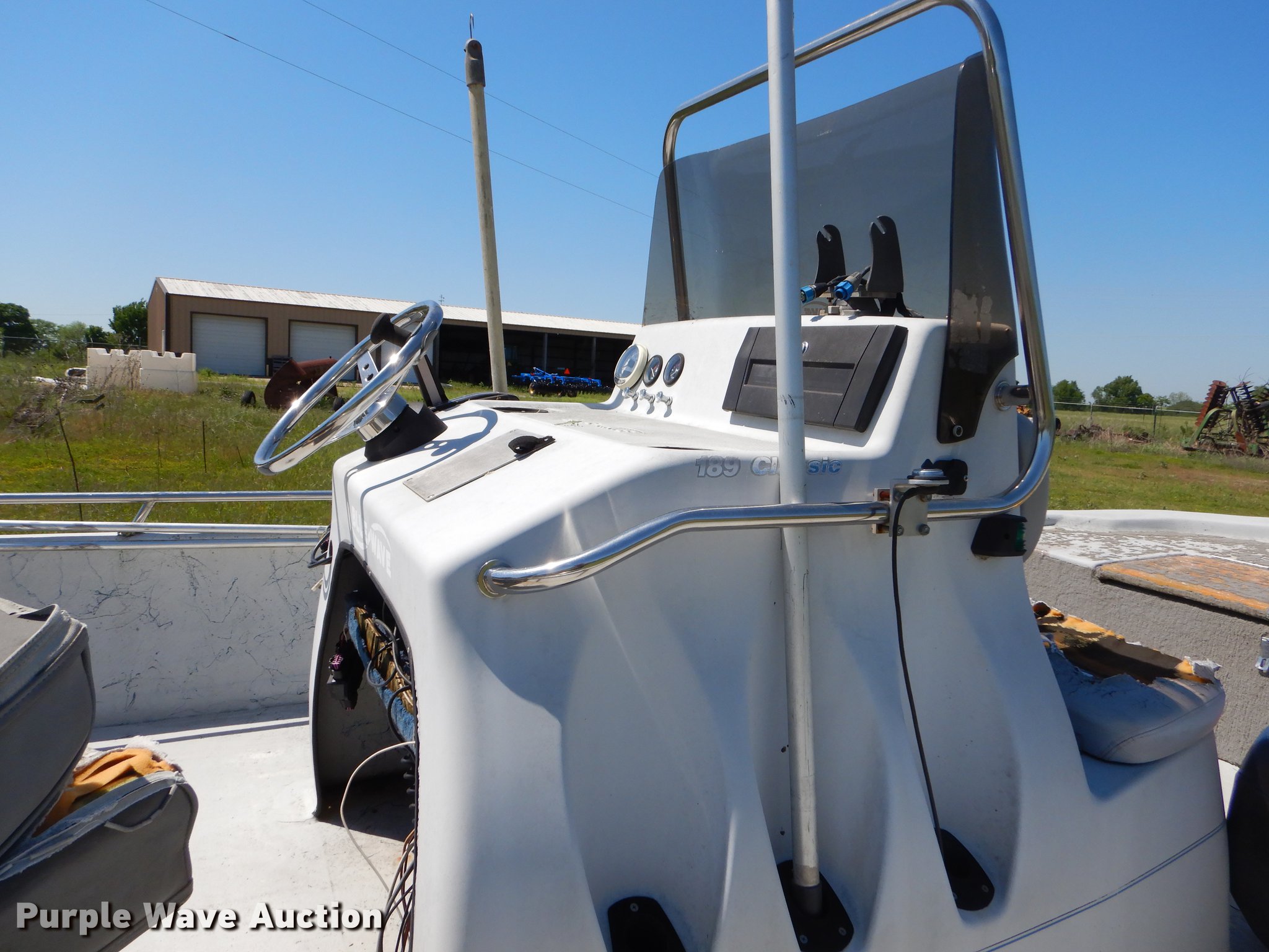 Purple Wave is selling a used Boat in Oklahoma. This item is a 1997 Blue Wave Bowrider boat with the following: 19'L, Mercury 115 HP gas engine, Center console, Unknown operating condition, Hull ID PWV01932J697, 2009 Magnum trailer, 21'L, 2" ball hitch, Jack stand, Spring suspension, Electric brakes, Tandem axle, 215/75R14 tires