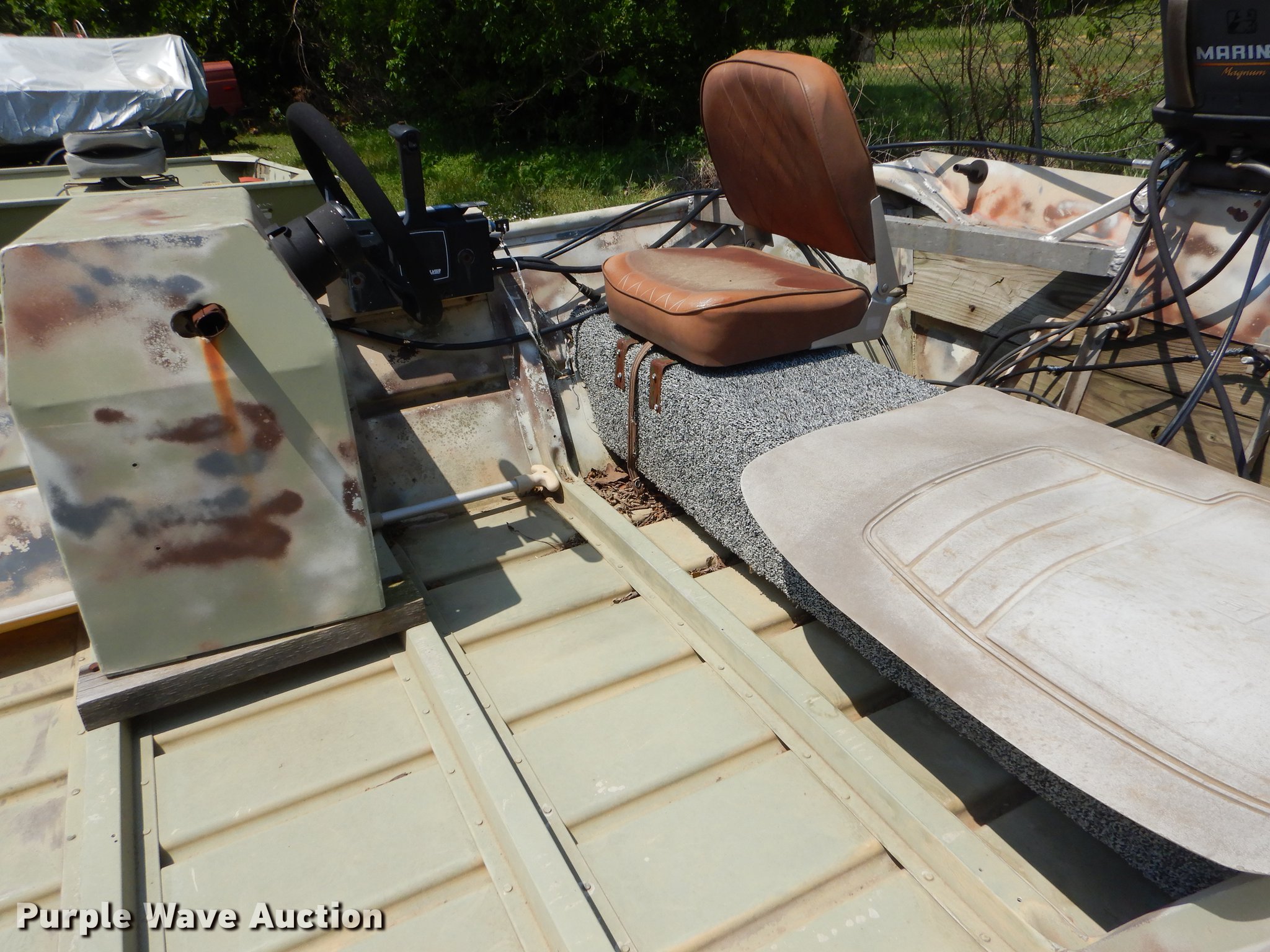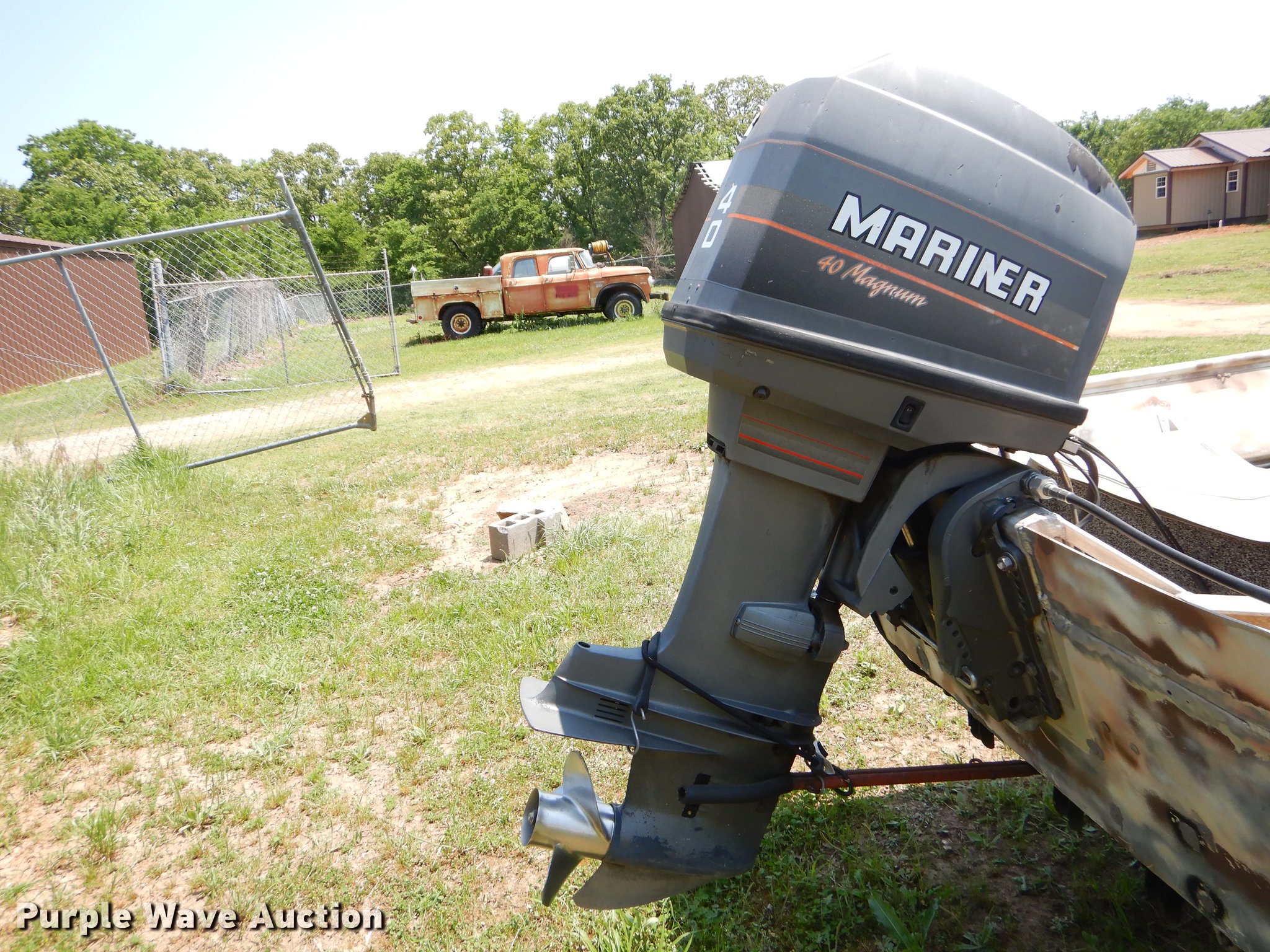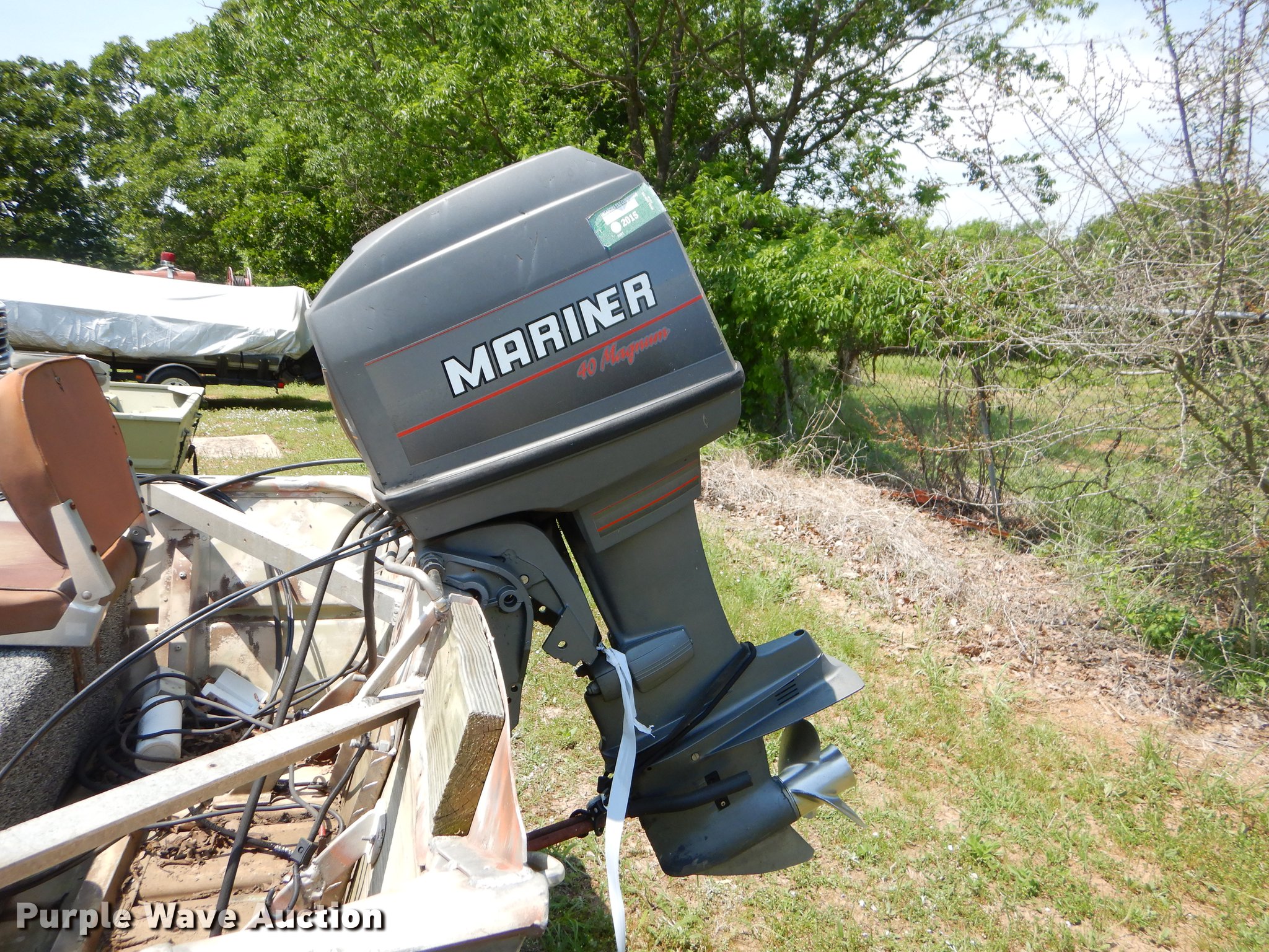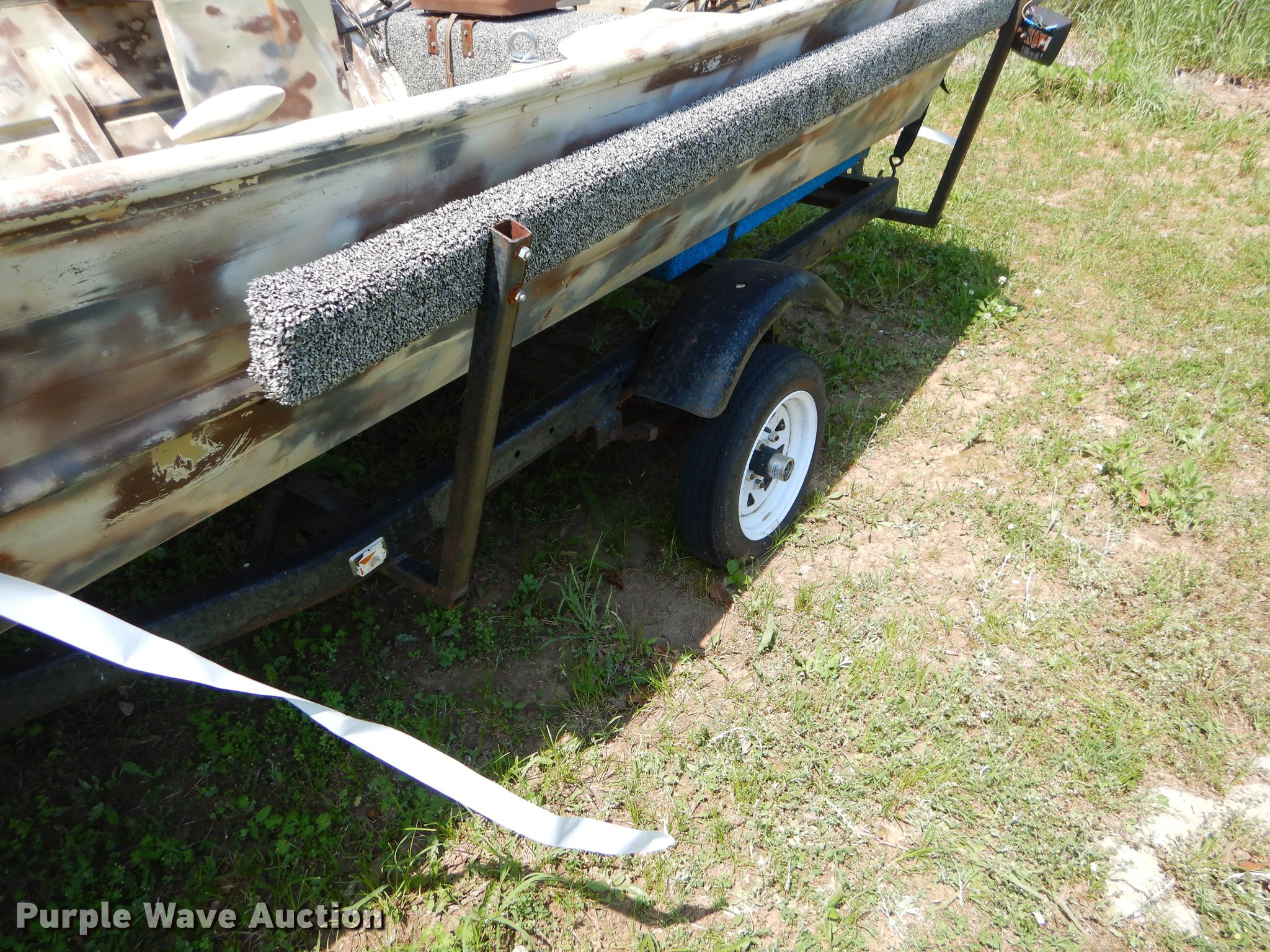 Purple Wave is selling a used Boat in Oklahoma. This item is a 1982 Loweline aluminum flat bottom boat with the following: 16'L x 69"W, 1991 Mercury 40 HP gas engine, Serial 0D012407, Non-operational, Single operator station, 19'L trailer, Approx. 2" ball hitch, Jack stand, Biat manual winch, Spring suspension, Electric brakes, Single axle, 4.80-12 tires