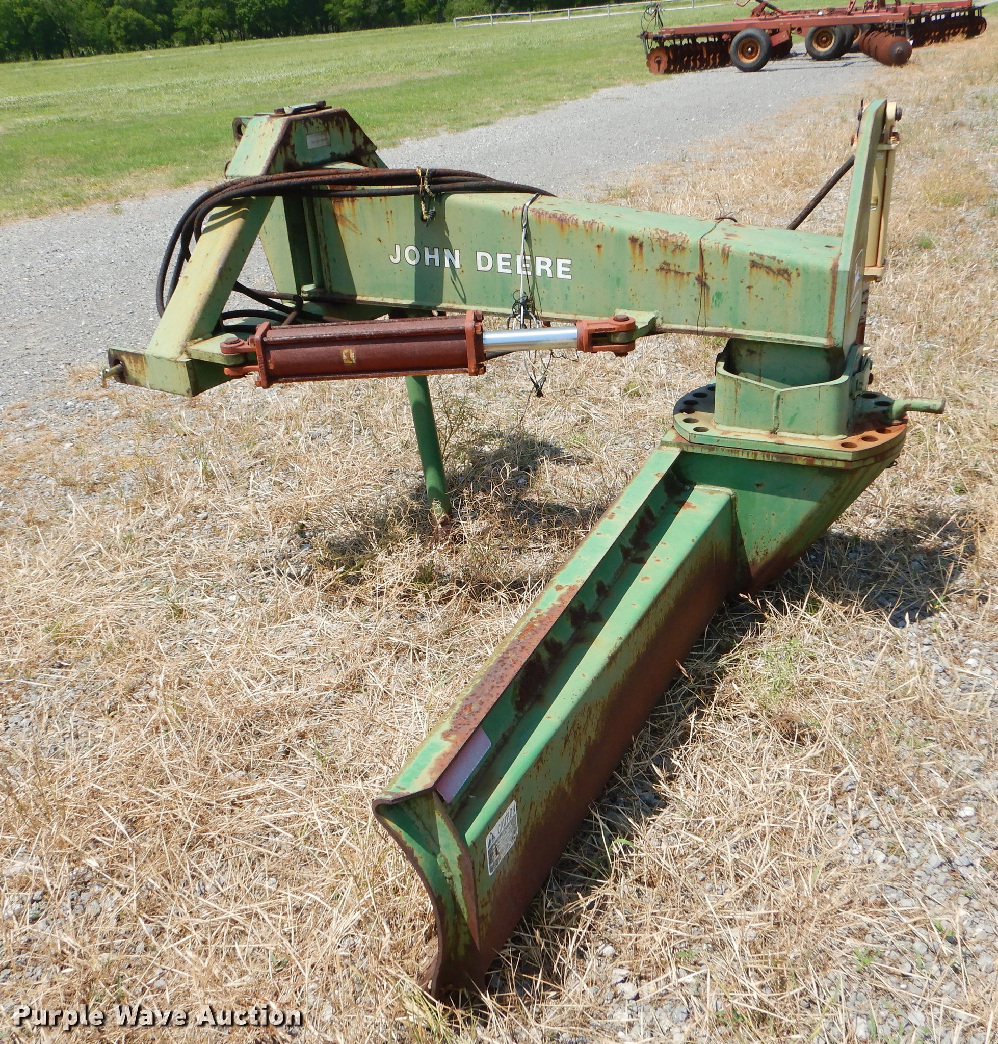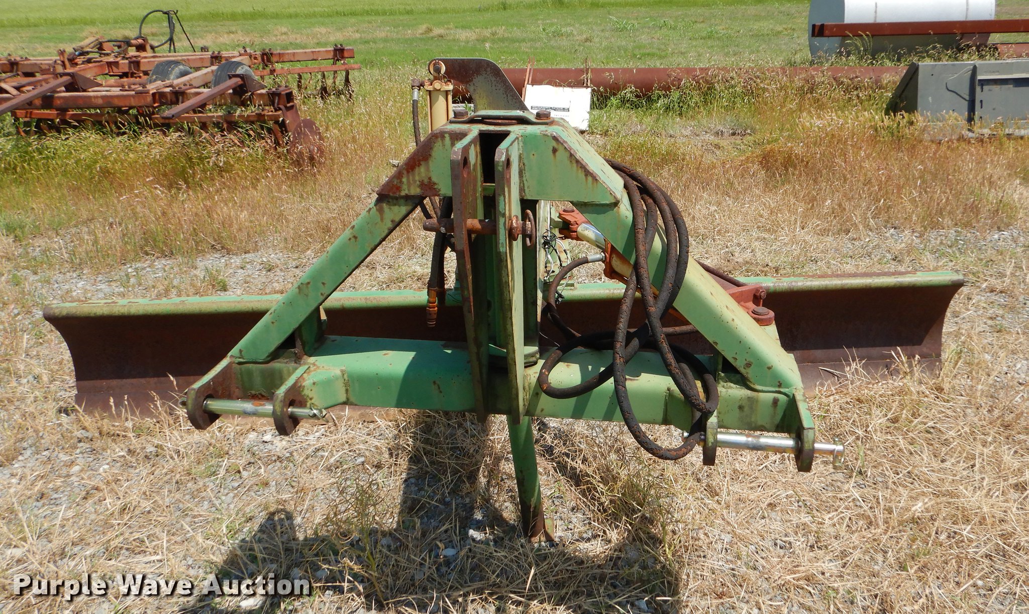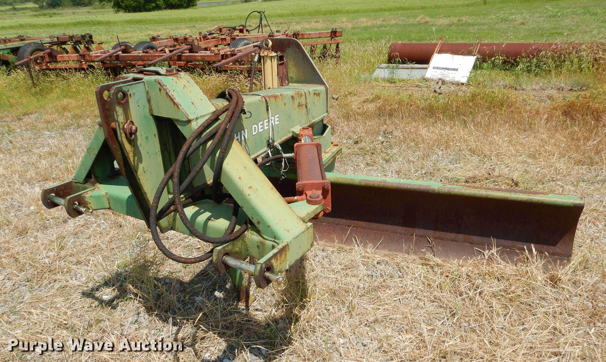 Purple Wave is selling a used Ag Equip. Other in Oklahoma. This item is a John Deere blade with the following: 120"W, Bolt-on cutting edge, Hydraulic blade adjustment, Jack stand, Three point, Serial W00155X010341