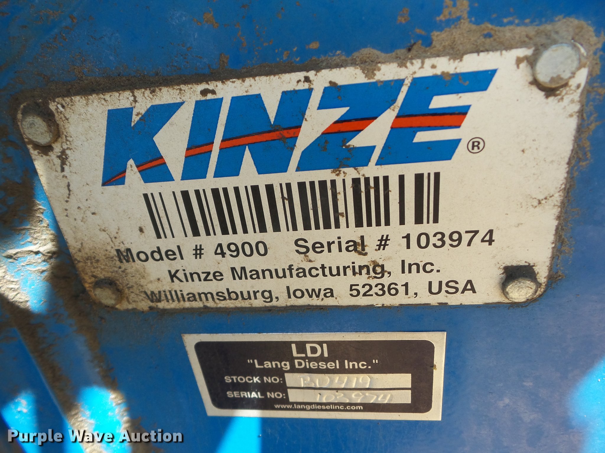 Purple Wave is selling a used Planter in Kansas. This item is a 2014 Kinze 4900 no-till planter with the following: 16 row units, 30" row spacing, Marker arms, Hydraulic wing fold, Bulk fill system, Air delivery, Pneumatic down pressure, Row cleaners, No-till coulters, Double disk openers, Double gauge wheels, Double rubber closing system, Two point, (4) 11R22.5 transport tires, (4) 7.50-20 drive/outside tires, Serial 103974