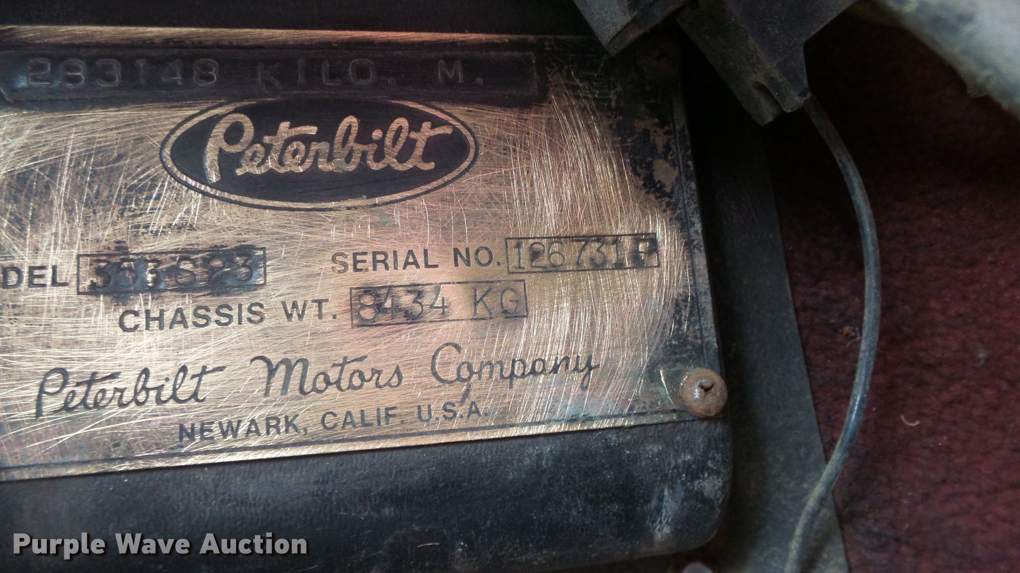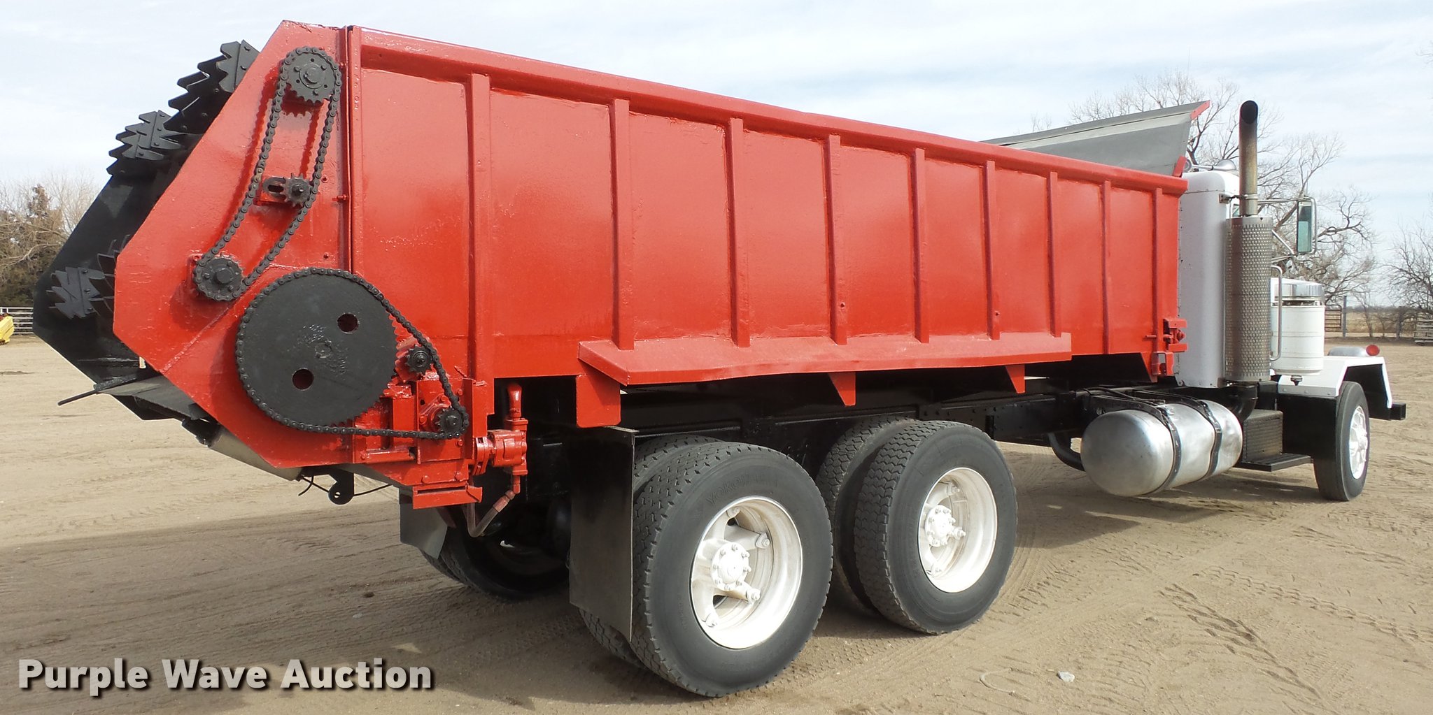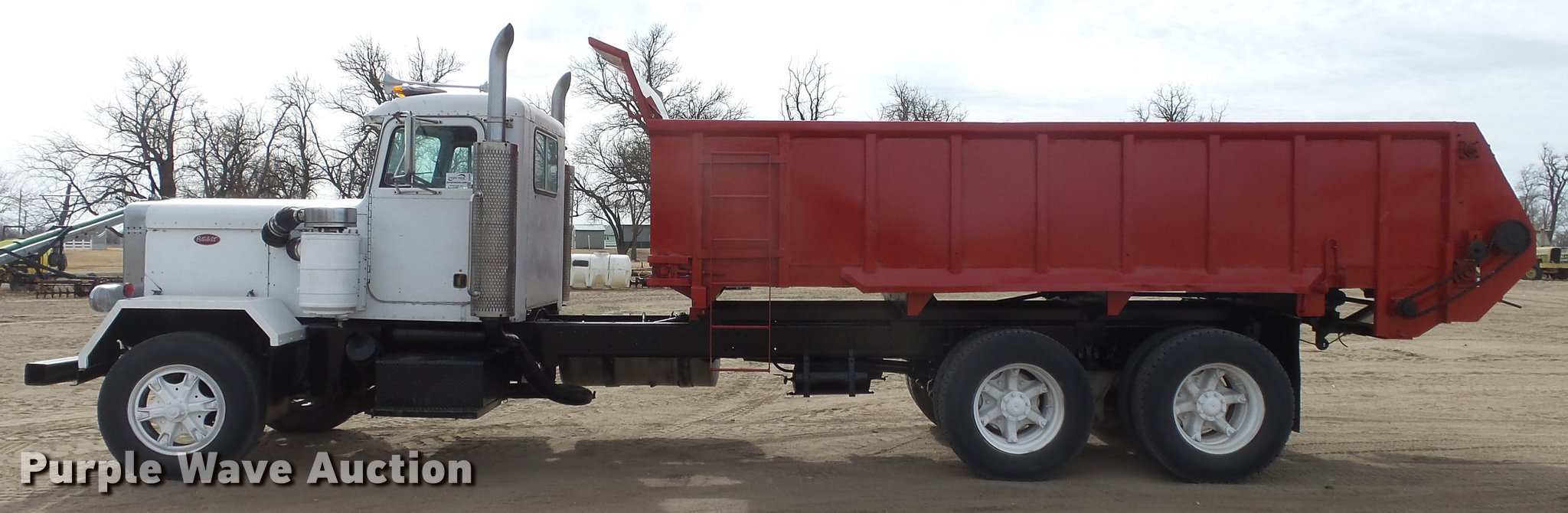 Purple Wave is selling a used Manure Spreader Truck in Kansas. This item is a 1980 Peterbilt 353S23 manure spreader truck with the following: 81,123 miles on odometer, Caterpillar diesel engine, Manual transmission, Tandem axle, Differential lock, Heat, Manual windows and locks, Chelsea PTO, 18'8"L x 7'W steel manure spreader bed, 48" side height, (2) beaters, Spring suspension, Air brakes, 11R24.5 tires