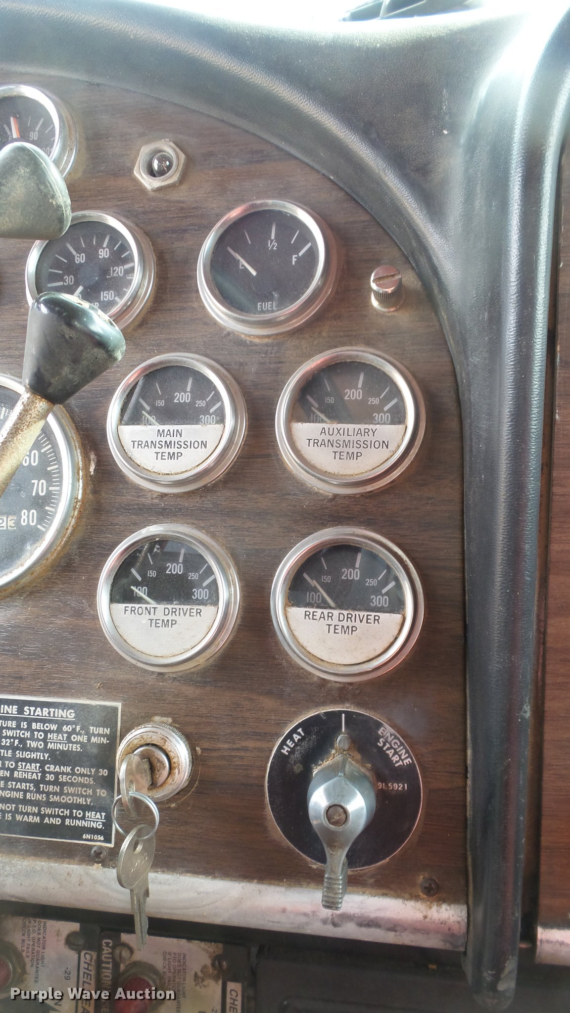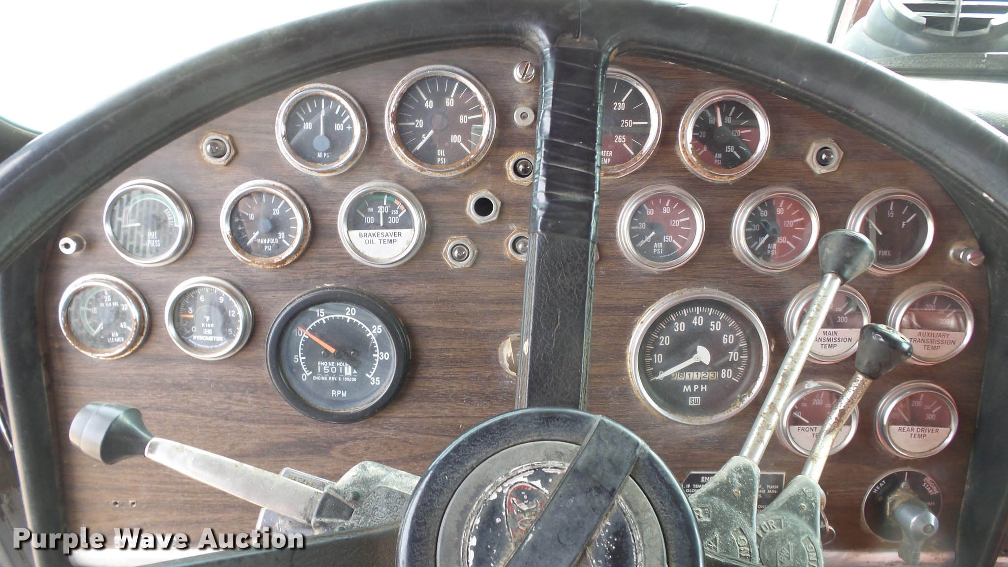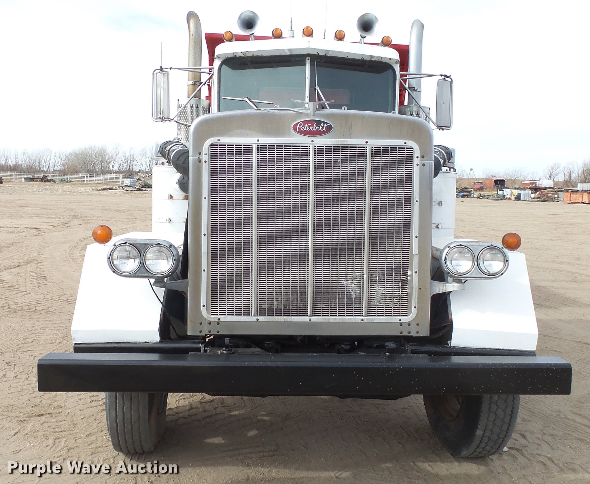 Purple Wave is selling a used Manure Spreader Truck in Kansas. This item is a 1980 Peterbilt 353S23 manure spreader truck with the following: 81,123 miles on odometer, Caterpillar diesel engine, Manual transmission, Tandem axle, Differential lock, Heat, Manual windows and locks, Chelsea PTO, 18'8"L x 7'W steel manure spreader bed, 48" side height, (2) beaters, Spring suspension, Air brakes, 11R24.5 tires