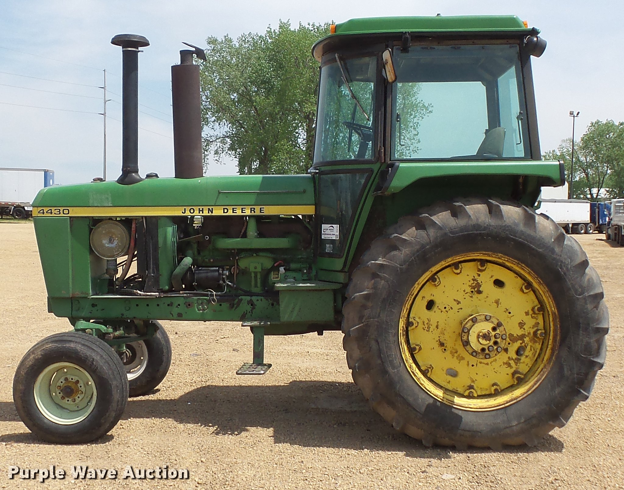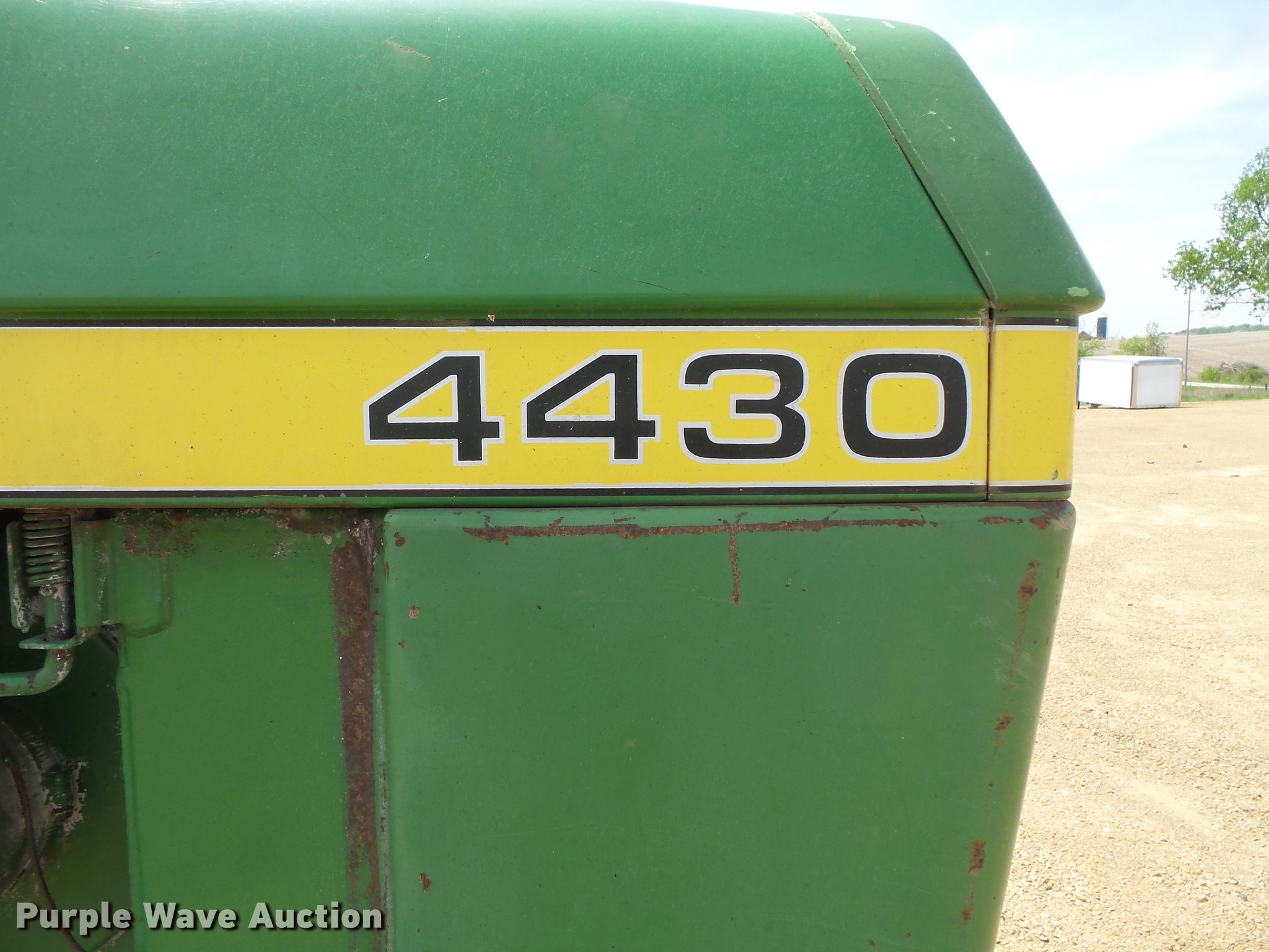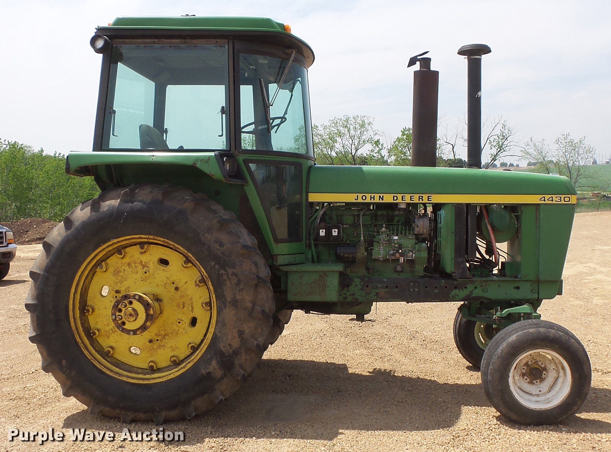 Purple Wave is selling a used Tractor in Wisconsin. This item is a 1977 John Deere 4430 tractor with the following: 7,829 hours on meter, John Deere 6.6L six cylinder turbo diesel engine, Serial 6404TR-07528168R0, Powershift transmission, 8F-4R gears, Differential lock, AC and heat, Tilt steering wheel, Suspension seat, Seven pin outlet, 540/1000 PTO, (2) rear hydraulic remote sets, 11.00-15 front tires, 18.4-38 rear tires, Serial 4430P065583R