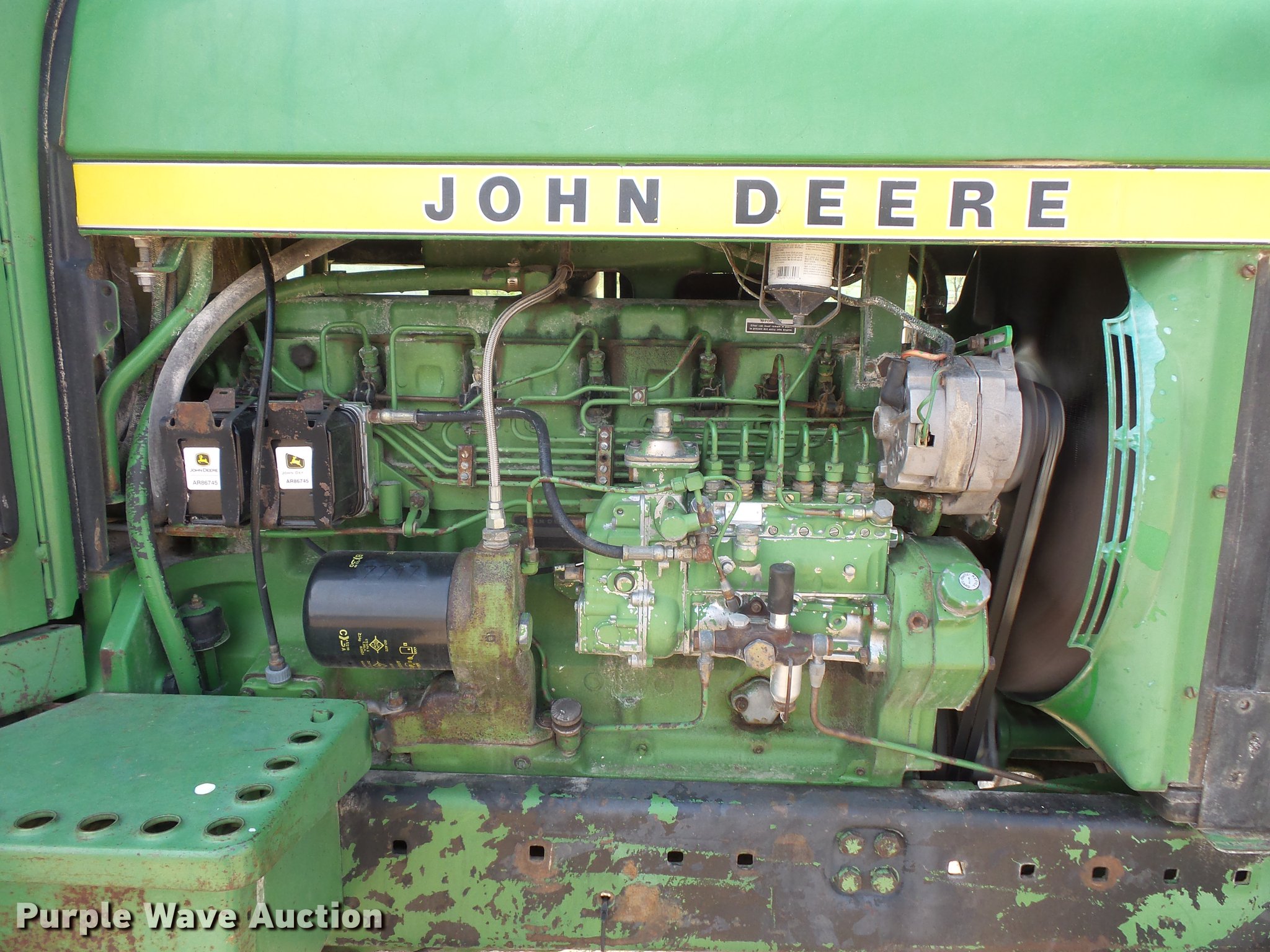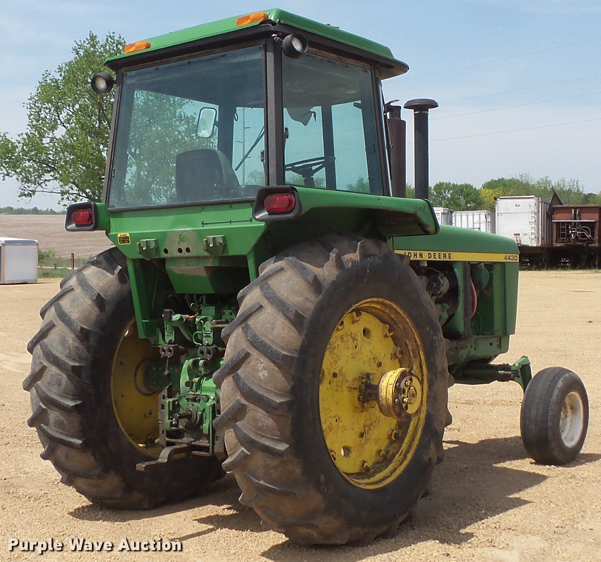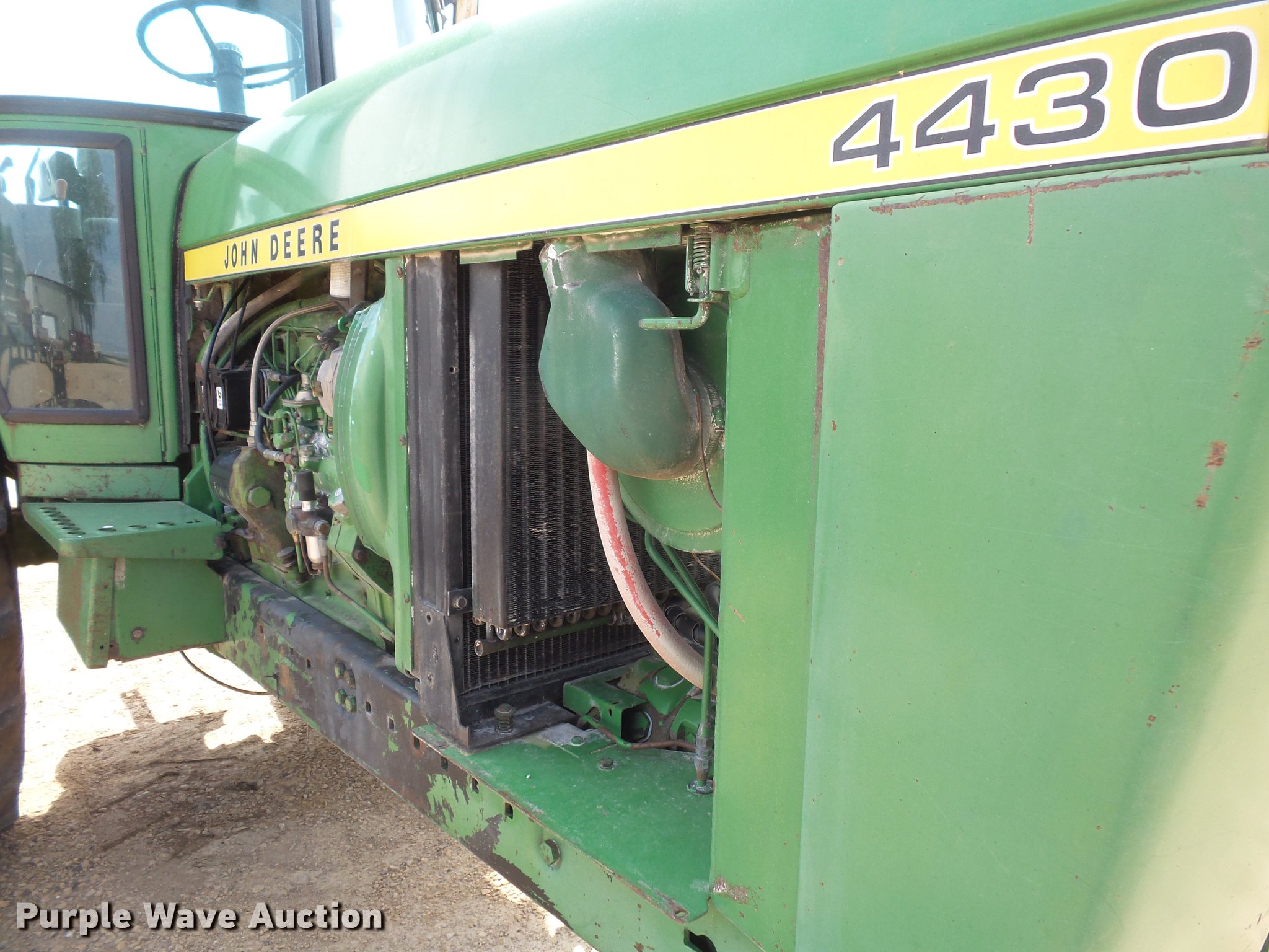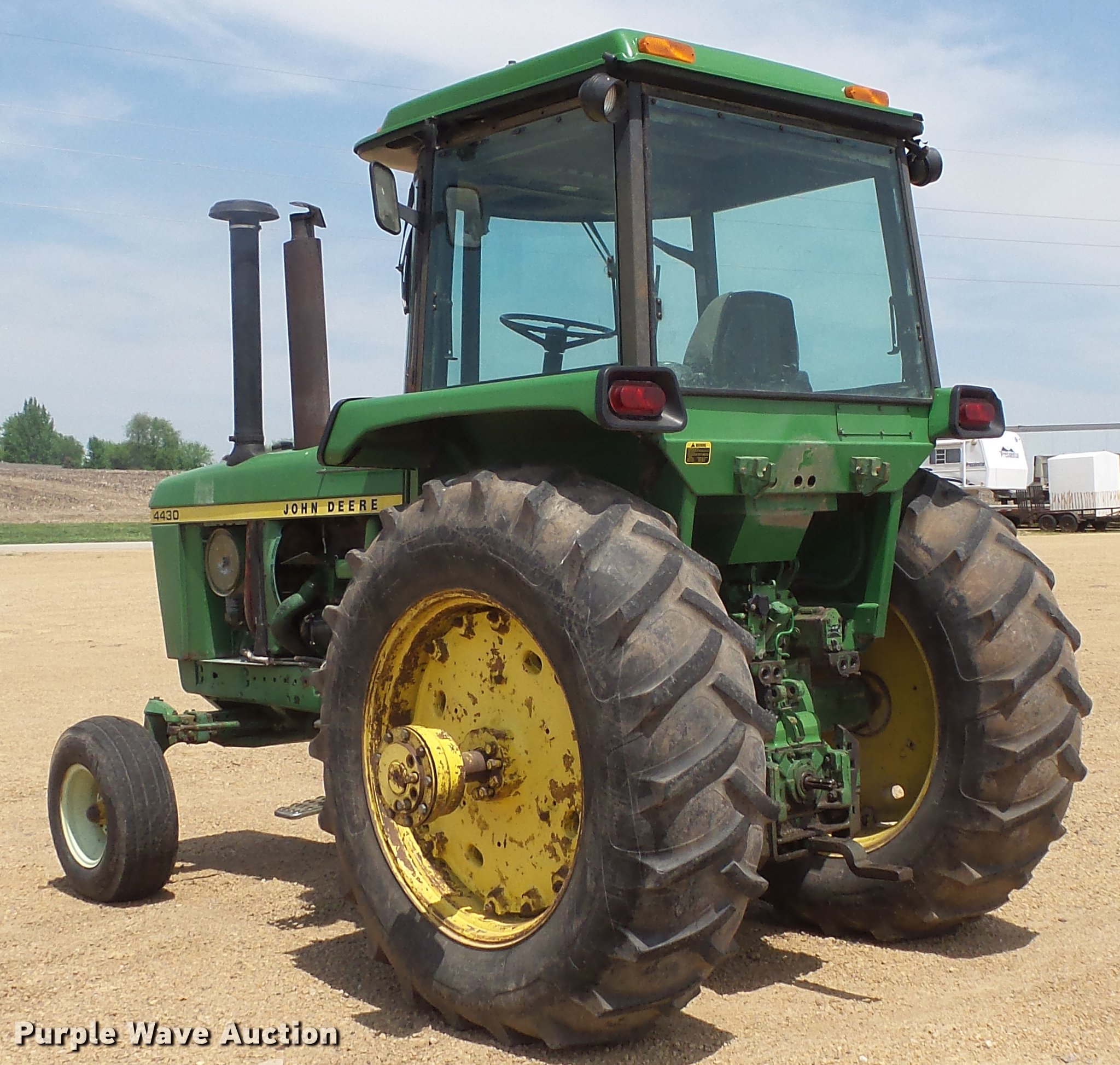 Purple Wave is selling a used Tractor in Wisconsin. This item is a 1977 John Deere 4430 tractor with the following: 7,829 hours on meter, John Deere 6.6L six cylinder turbo diesel engine, Serial 6404TR-07528168R0, Powershift transmission, 8F-4R gears, Differential lock, AC and heat, Tilt steering wheel, Suspension seat, Seven pin outlet, 540/1000 PTO, (2) rear hydraulic remote sets, 11.00-15 front tires, 18.4-38 rear tires, Serial 4430P065583R