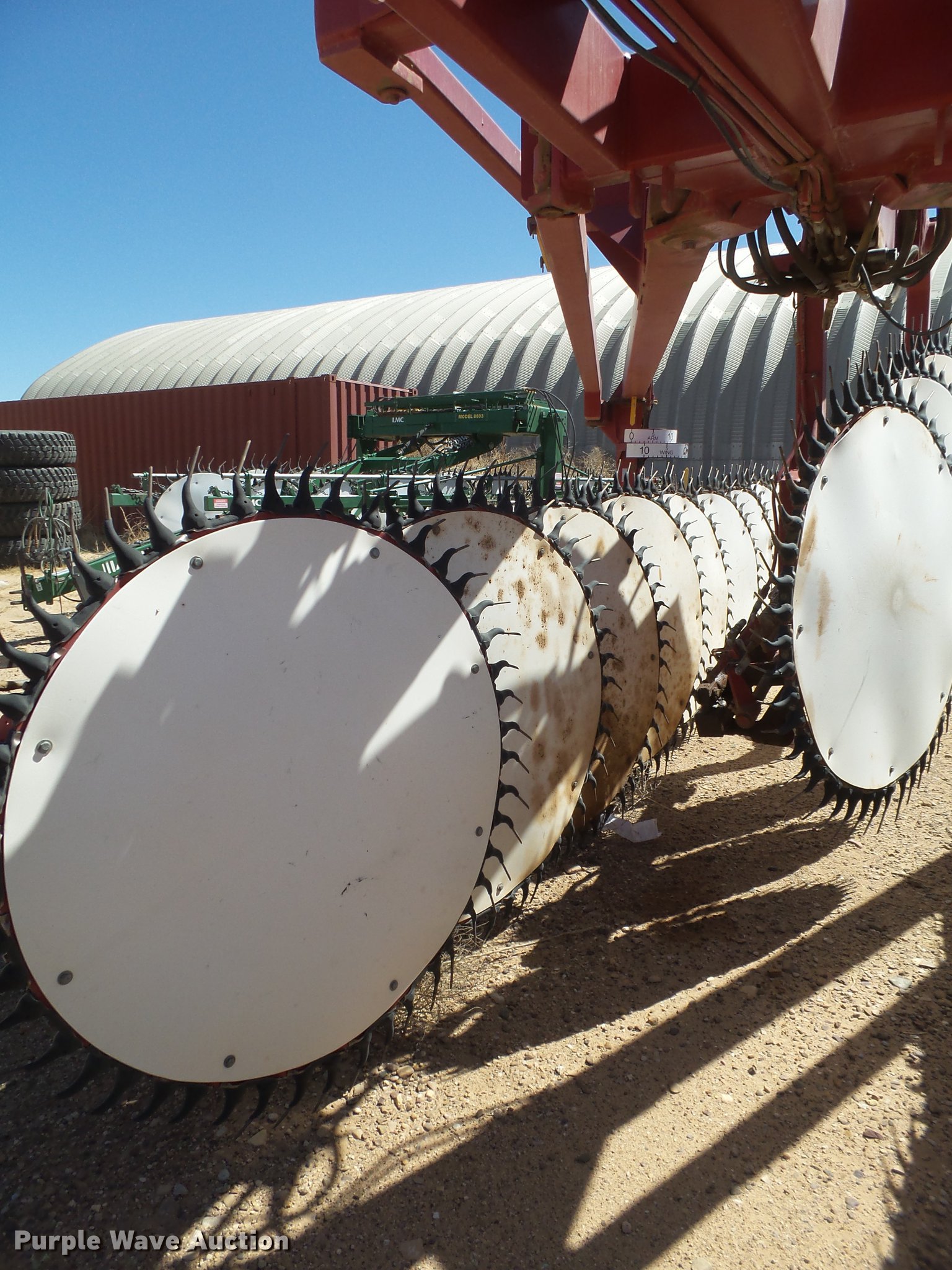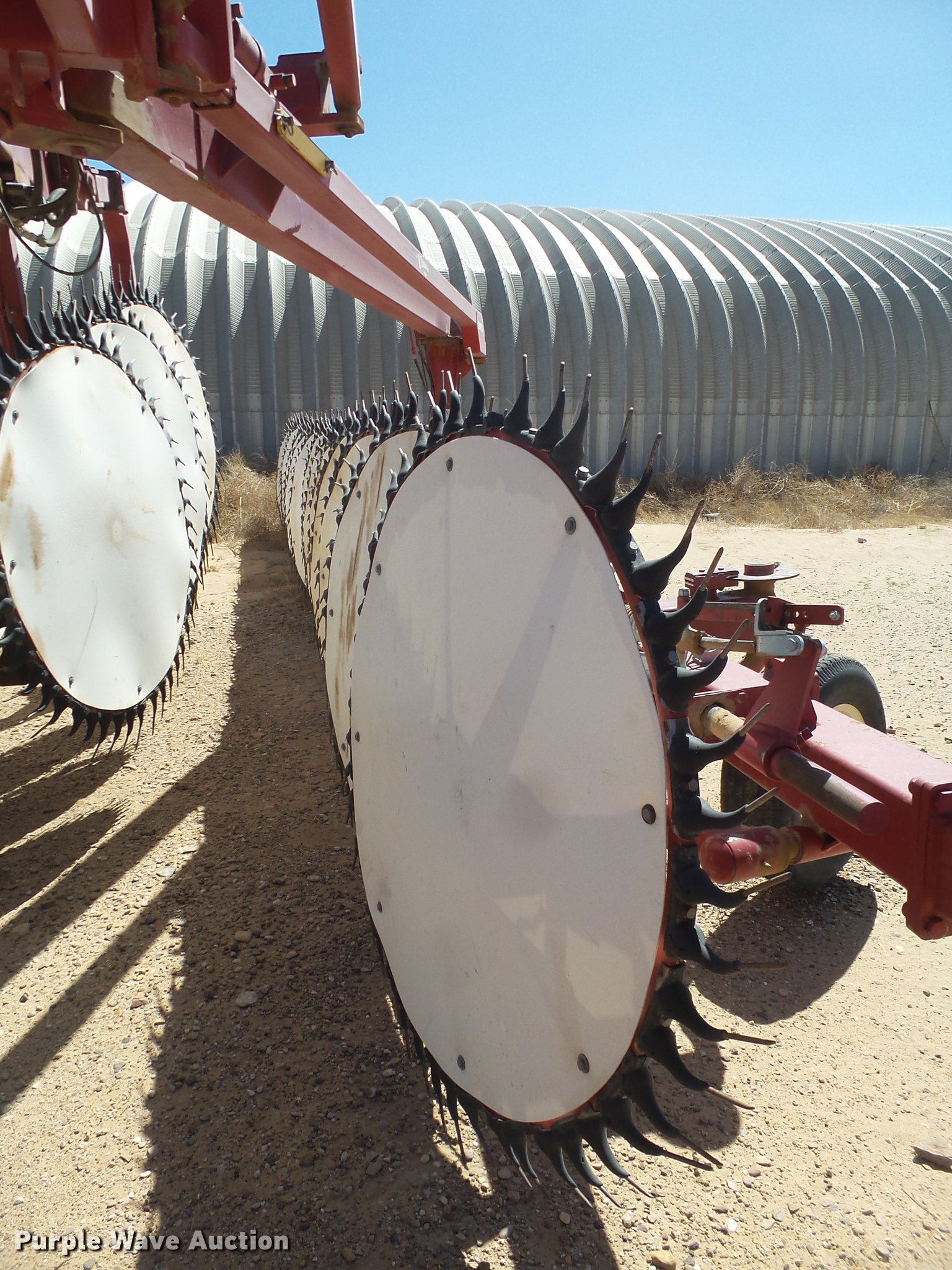 Rowse Ultimate hay rake. 67'L, (29) wheels, Hydraulic fold, Transport lights, 2 5/16" ball hitch, 9.5L-15 tires, 225/75R15 transport tires. Larsen Farms. 12295 CR 11. Dalhart, TX 79022