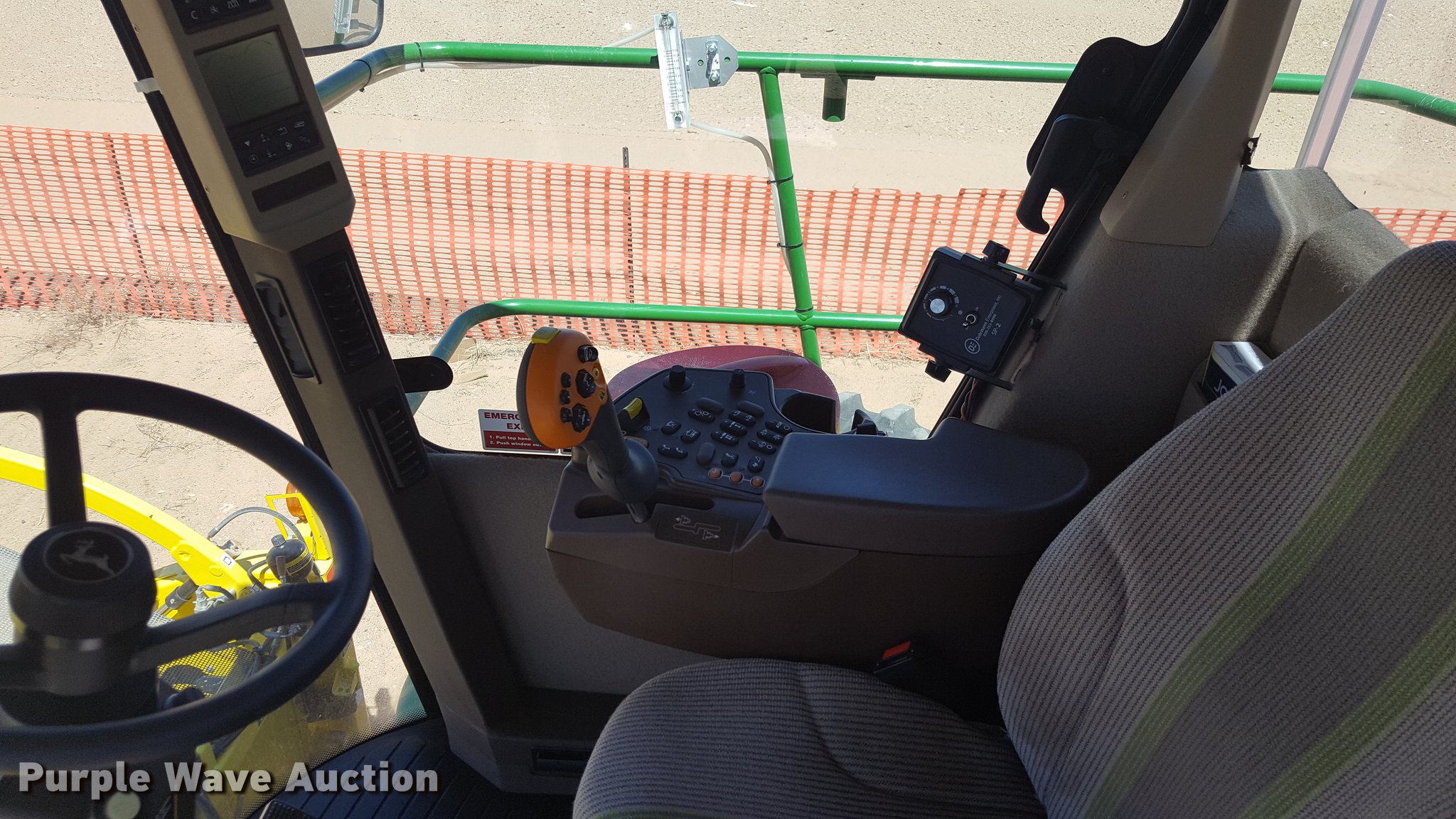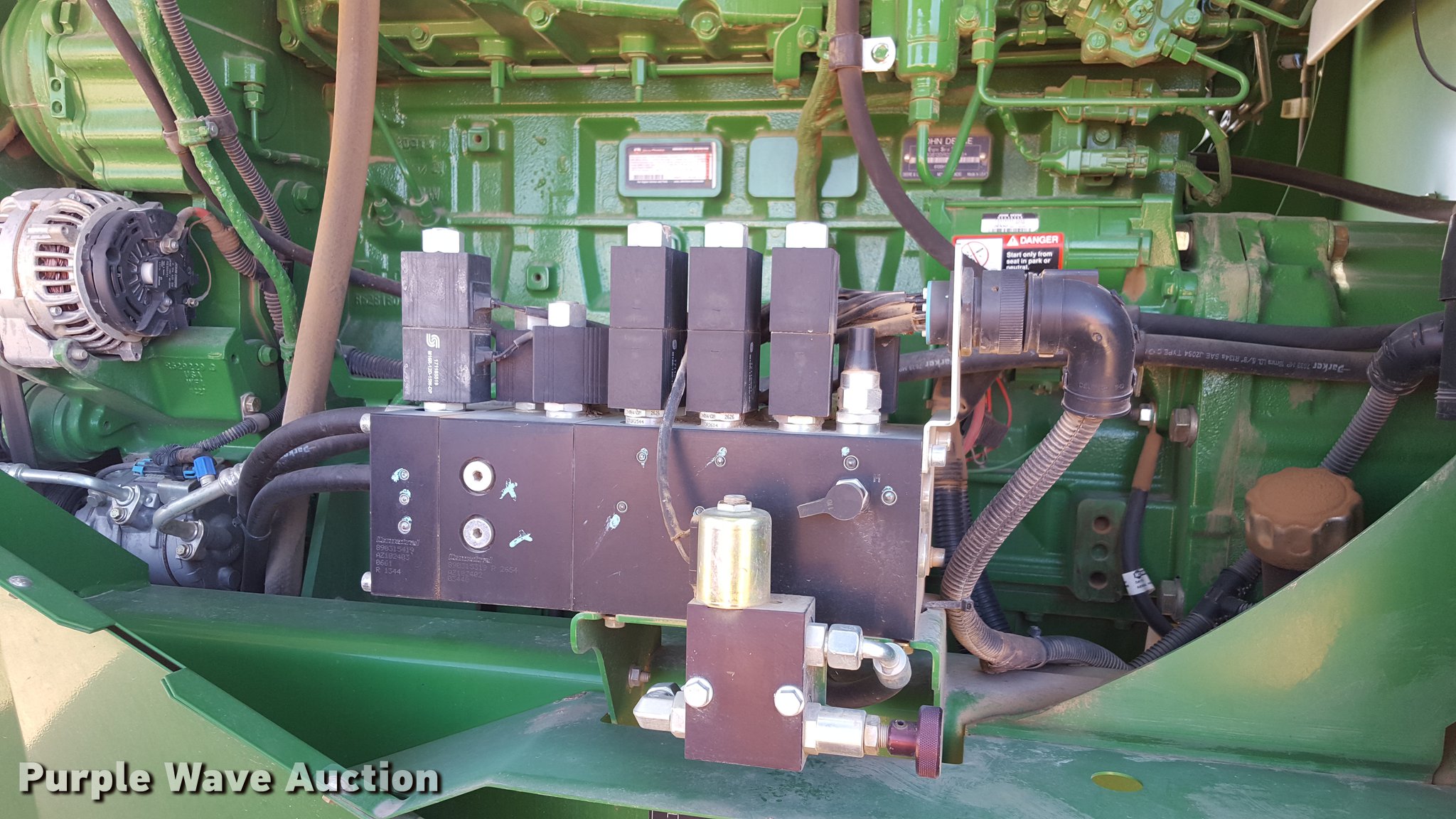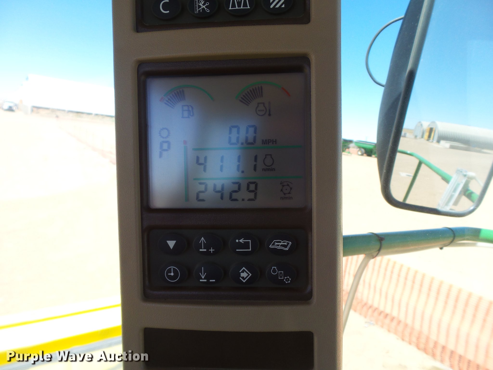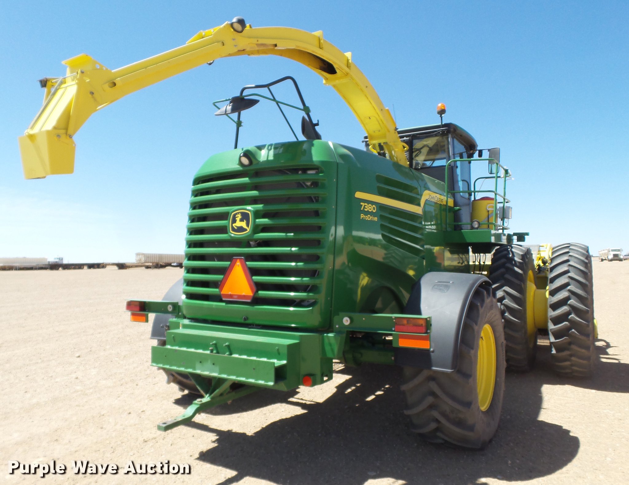 Purple Wave is selling a used Forage Harvester in Texas. This item is a 2015 John Deere 7380 forage harvester with the following: 411 engine hours on meter, 242 cutter hours on meter, John Deere 6135H2011 13.5L six cylinder turbo diesel engine, 485 HP, Serial RG6135R022205, ProDrive transmission, AC and heat, Tilt steering wheel, AM/FM, Air suspension seat, Instructor's seat, On-board air, GreenStar ready, Silage additive spray system, High arch spout, Hydraulic adjust, Rear hitch, 480/80R42 dual front tires, 600/65R28 rear tires, Head not included, Serial 1Z07380YVEM514039