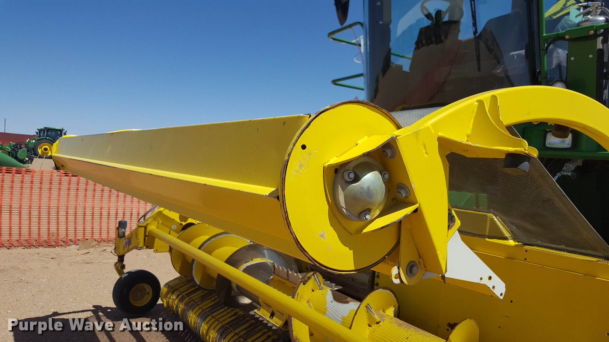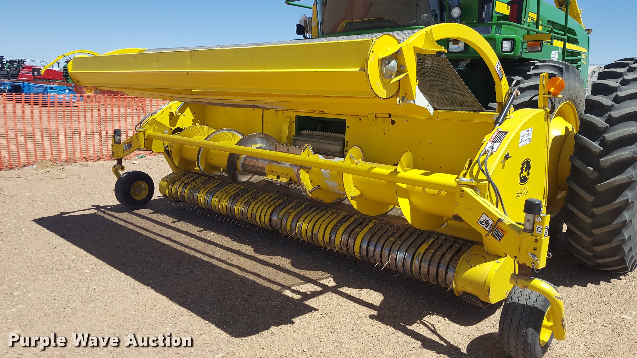 2013 John Deere 640C pickup head. 13.4'W, Crop roller, 18.5x8.5 gauge wheels, Single driveline, Serial 1KM640CGTCC117966. Larsen Farms. 12295 CR 11. Dalhart, TX 79022