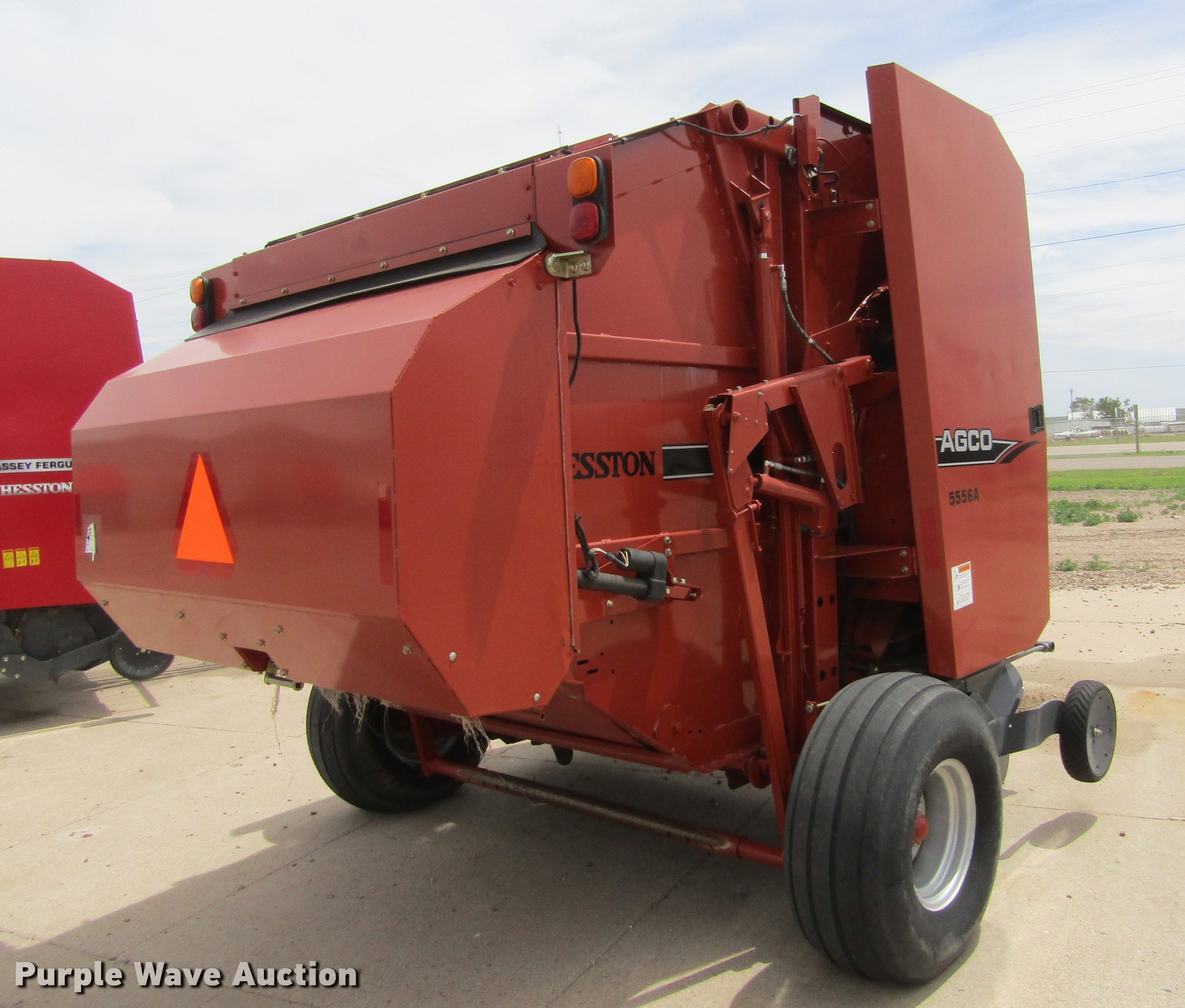 Purple Wave is selling a used Round Baler in Kansas. This item is a 2009 Hesston 5556A round baler with the following: 5' x 6' bale capacity, 84"W pickup, Feed assist roller, AGCO monitor, Twin twine tie, Net-wrap, Bale kicker, 1000 PTO, Pin hitch, 14L-16.1 tires, Serial HU25164, Unit# C0000251