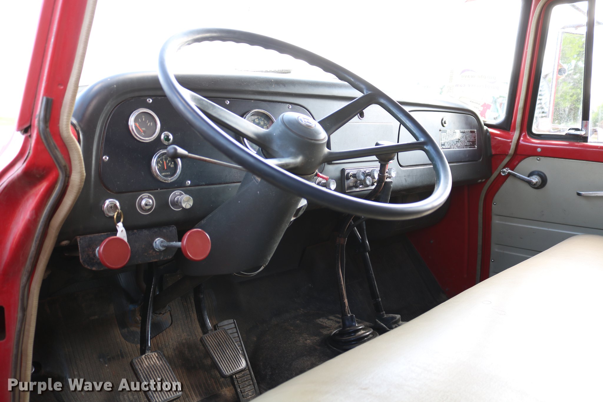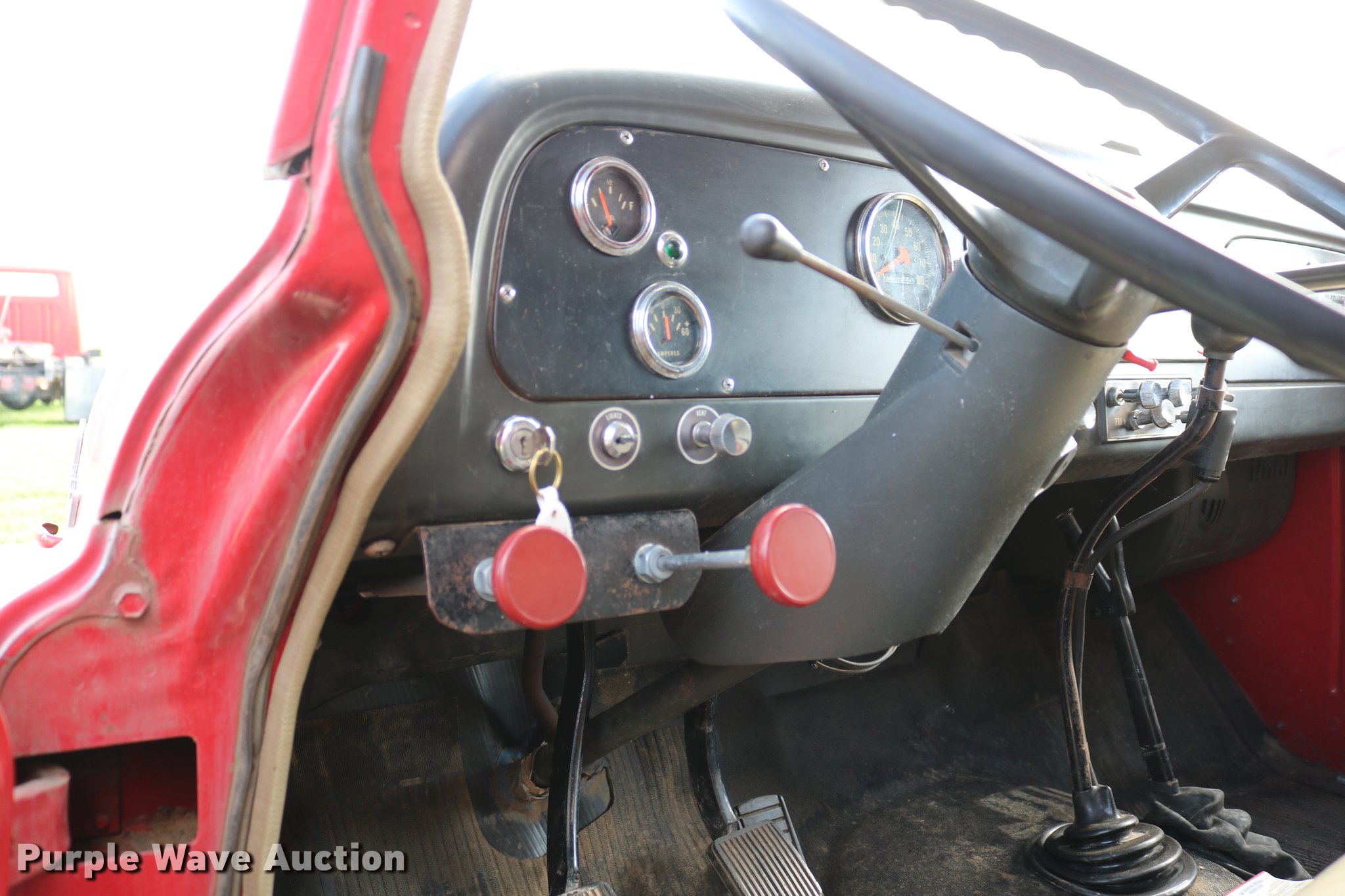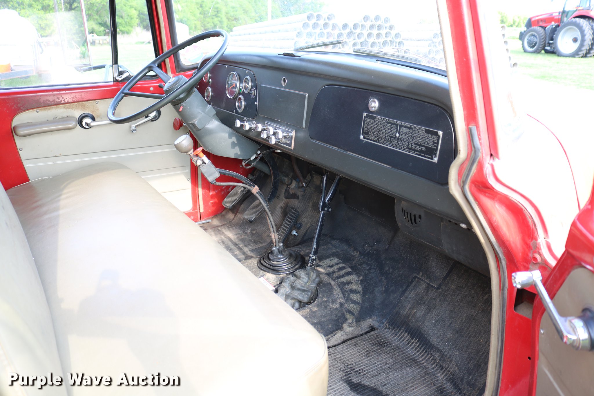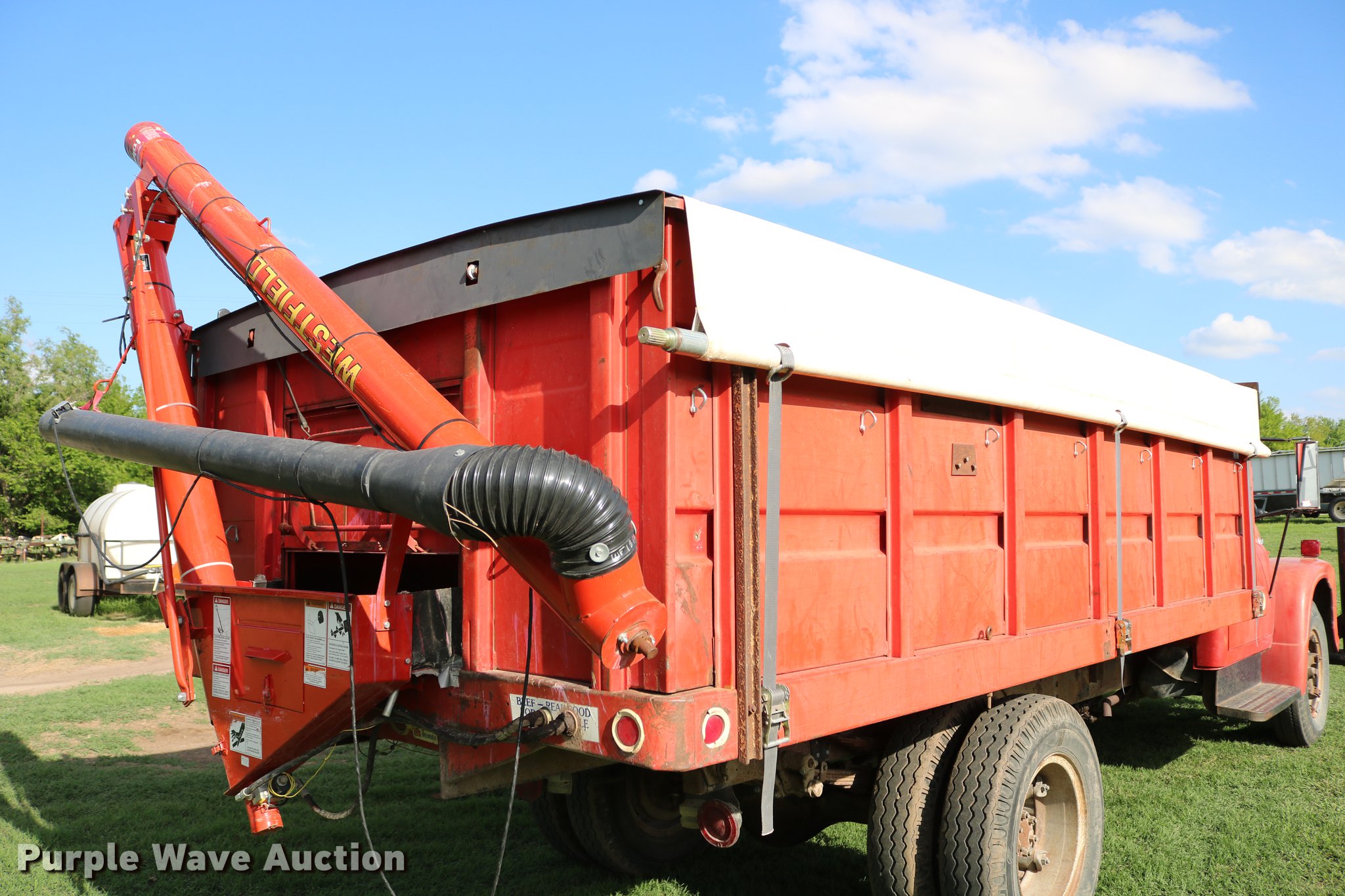 Purple Wave is selling a used Grain Truck in Kansas. This item is a 1970 International Loadstar 1600 grain truck with the following: 53,240 miles on odometer, Eight cylinder gas engine, Four speed manual transmission, Two speed rear end, Single axle, Heat, PTO, 15'L x 95"W steel dump bed, 40" side height, Roll tarp, Dual ram hoist, Westfield unloading auger, 15'L, Hydraulic driven, Serial 114173W, Single fuel tank, Spring suspension, Hydraulic brakes, 169" wheelbase, 8.25-20 tires, GVWR 19,700 lbs, Chipped windshield