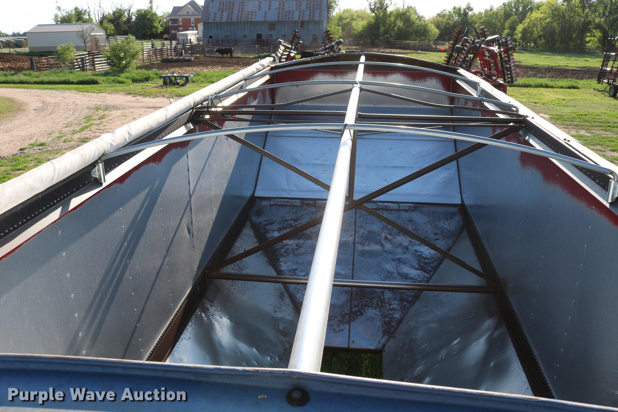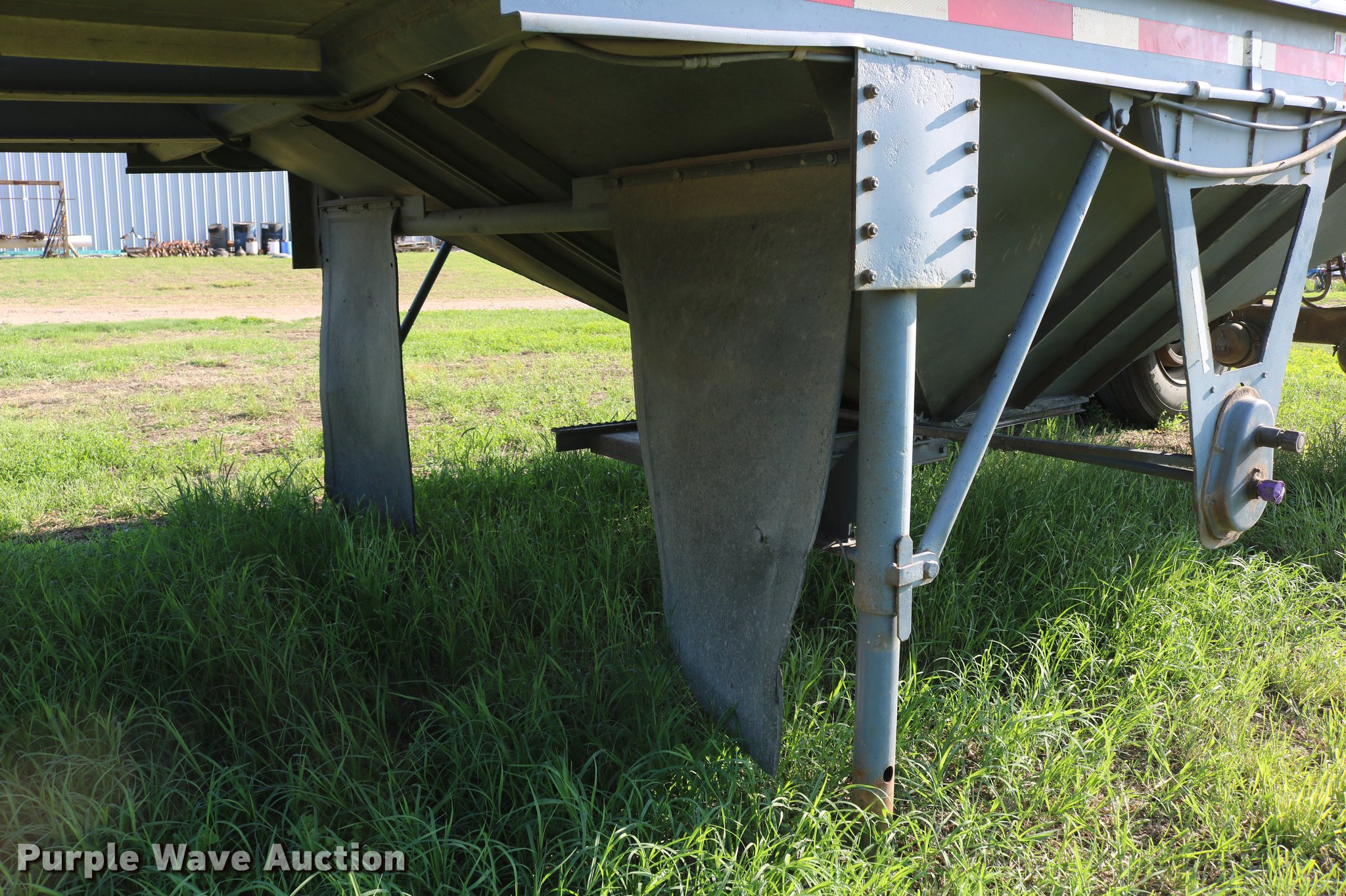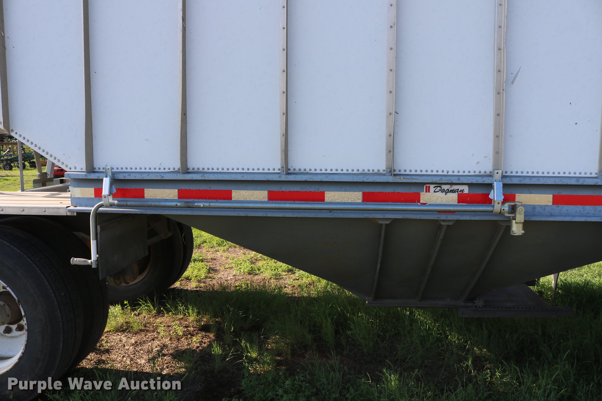 Purple Wave is selling a used Grain or Commodity Trailer in Kansas. This item is a 1979 Doonan single hopper bottom grain trailer with the following: 22.5'L x 94.5"W overall, 20'8.5"L hopper, Manual trap gates, Roll tarp, Aluminum/steel construction, Fifth wheel plate, Dual leg landing gear, Rear pintle hitch, Rear brake outlet, Rear electrical outlet, Air brakes, Single axle, Steel wheels, 11R24.5 tires