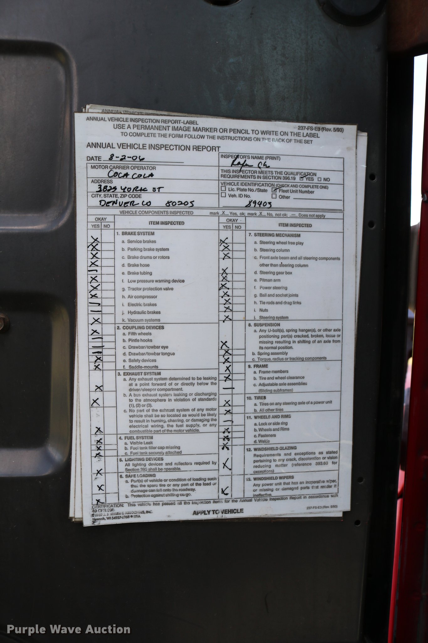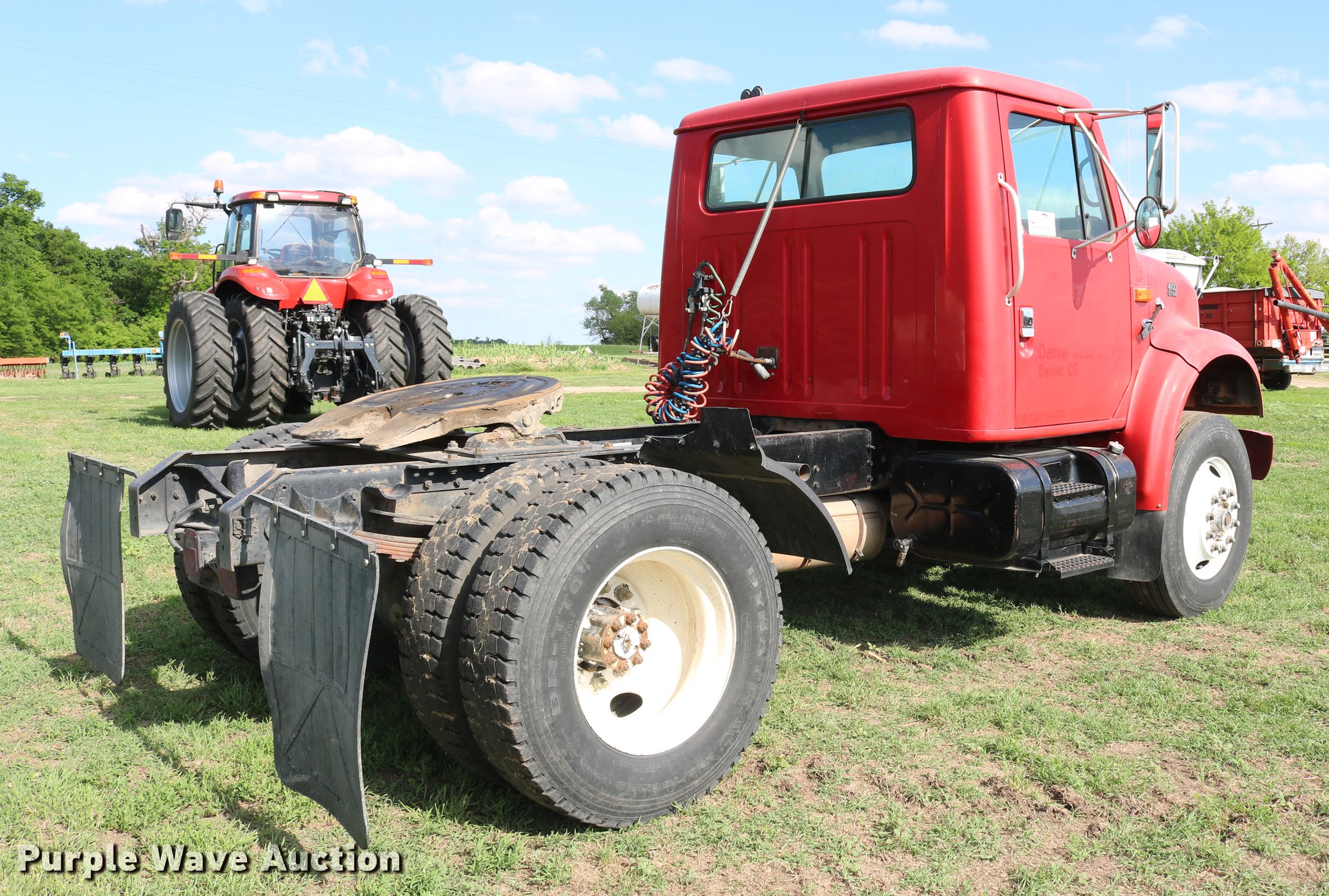 Purple Wave is selling a used Truck Tractor in Kansas. This item is a 1995 International 4900 semi truck with the following: 277,395 miles on odometer, 14,853 hours on meter, International DT466 7.6L L6 turbo diesel engine, Automatic transmission, Single axle, Heat, AM/FM/CD, Air suspension seat, Fixed fifth wheel plate, Dual fuel tanks, Quarter fenders, Mud flaps, Spring suspension, Air brakes, 139" wheelbase, 295/75R22.5 tires, GVWR 29,000 lbs, FAWR 10,000 lbs, RAWR 19,000 lbs, Ignition key only, no key for doors