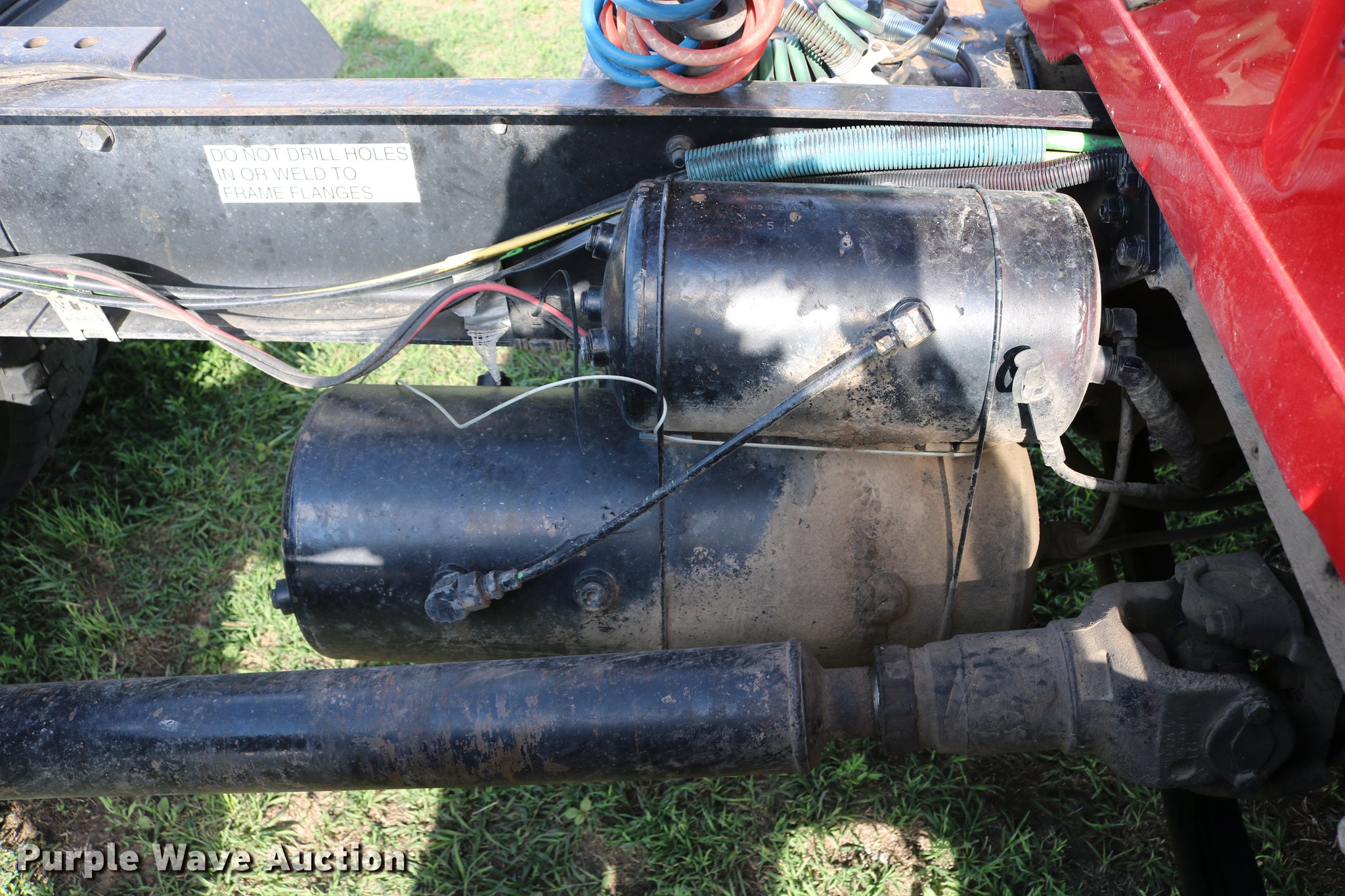 1995 International 4900 semi truck. 277,395 miles on odometer, 14,853 hours on meter, International DT466 7.6L L6 turbo diesel engine, Automatic transmission, Single axle, Heat, AM/FM/CD, Air suspension seat, Fixed fifth wheel plate, Dual fuel tanks, Quarter fenders, Mud flaps, Spring suspension, Air brakes, 139" wheelbase, 295/75R22.5 tires, GVWR 29,000 lbs, FAWR 10,000 lbs, RAWR 19,000 lbs, Ignition key only, no key for doors. Kansas title. 1HSSDAAN7SH633555. Circle J Farms Inc. - Open inspection June 5th and 19th. 151 NW 40 Ave. Great Bend, KS 67530