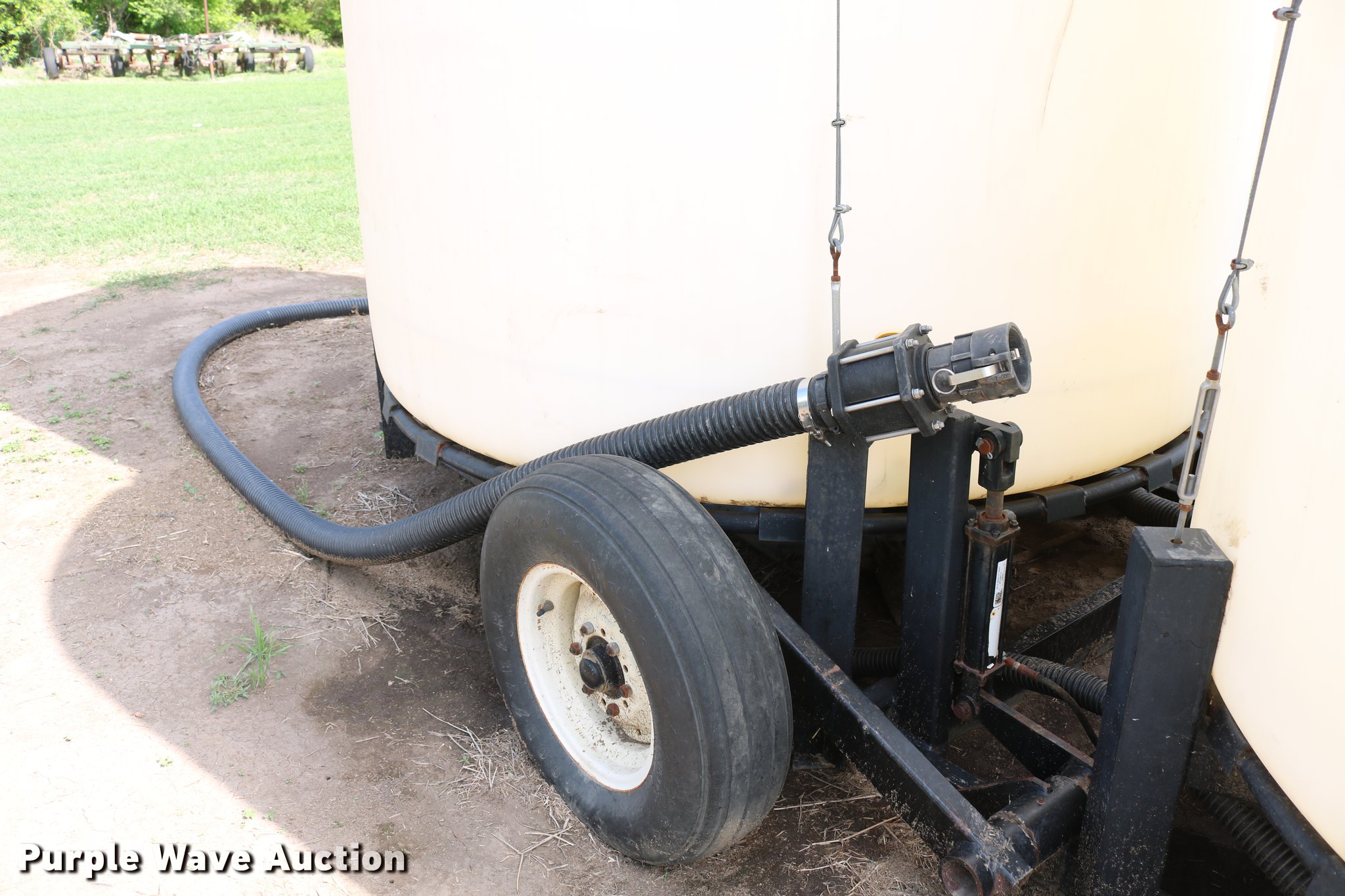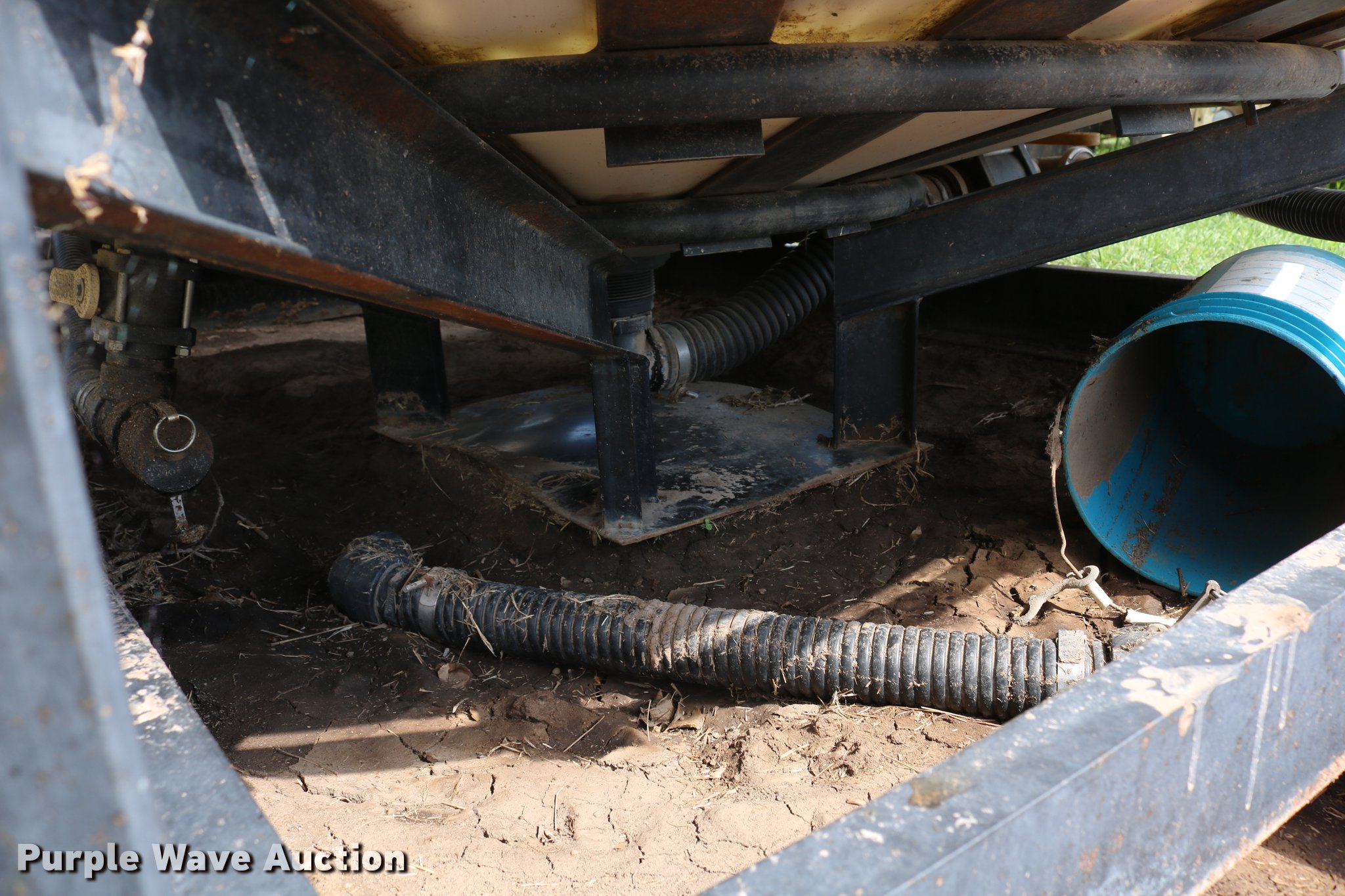 Wylie double cone nurse tank trailer. (2) 3,000 gallon poly tanks, 3.5" and 2.5" hose couplings, Hoses, Fittings, 21'L tilt deck trailer 15.5'L x 102.5"W deck, Clevis hitch, Hydraulic tilt, 9.5L-15SL tires. Transfer of ownership documentation will be a bill of sale. Circle J Farms Inc. - Open inspection June 5th and 19th. 151 NW 40 Ave. Great Bend, KS 67530