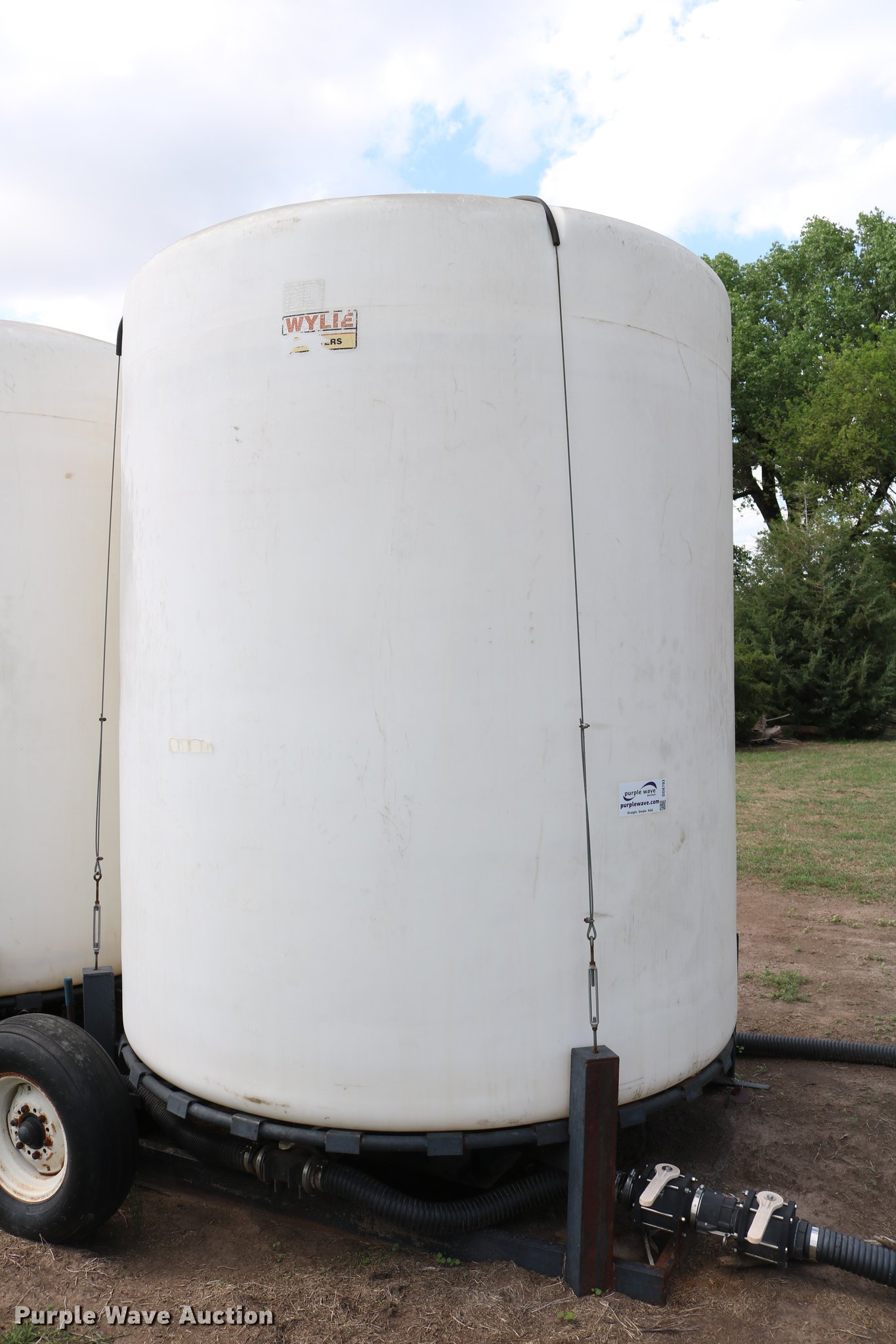 Purple Wave is selling a used Tank Trailer in Kansas. This item is a Wylie double cone nurse tank trailer with the following: (2) 3,000 gallon poly tanks, 3.5" and 2.5" hose couplings, Hoses, Fittings, 21'L tilt deck trailer, 15.5'L x 102.5"W deck, Clevis hitch, Hydraulic tilt, 9.5L-15SL tires