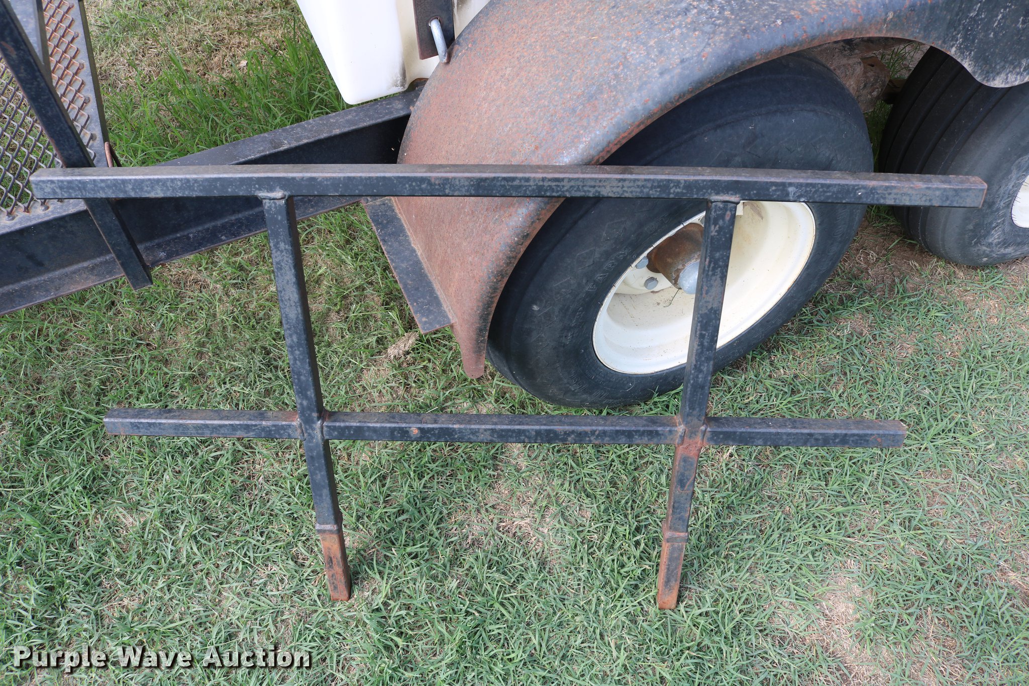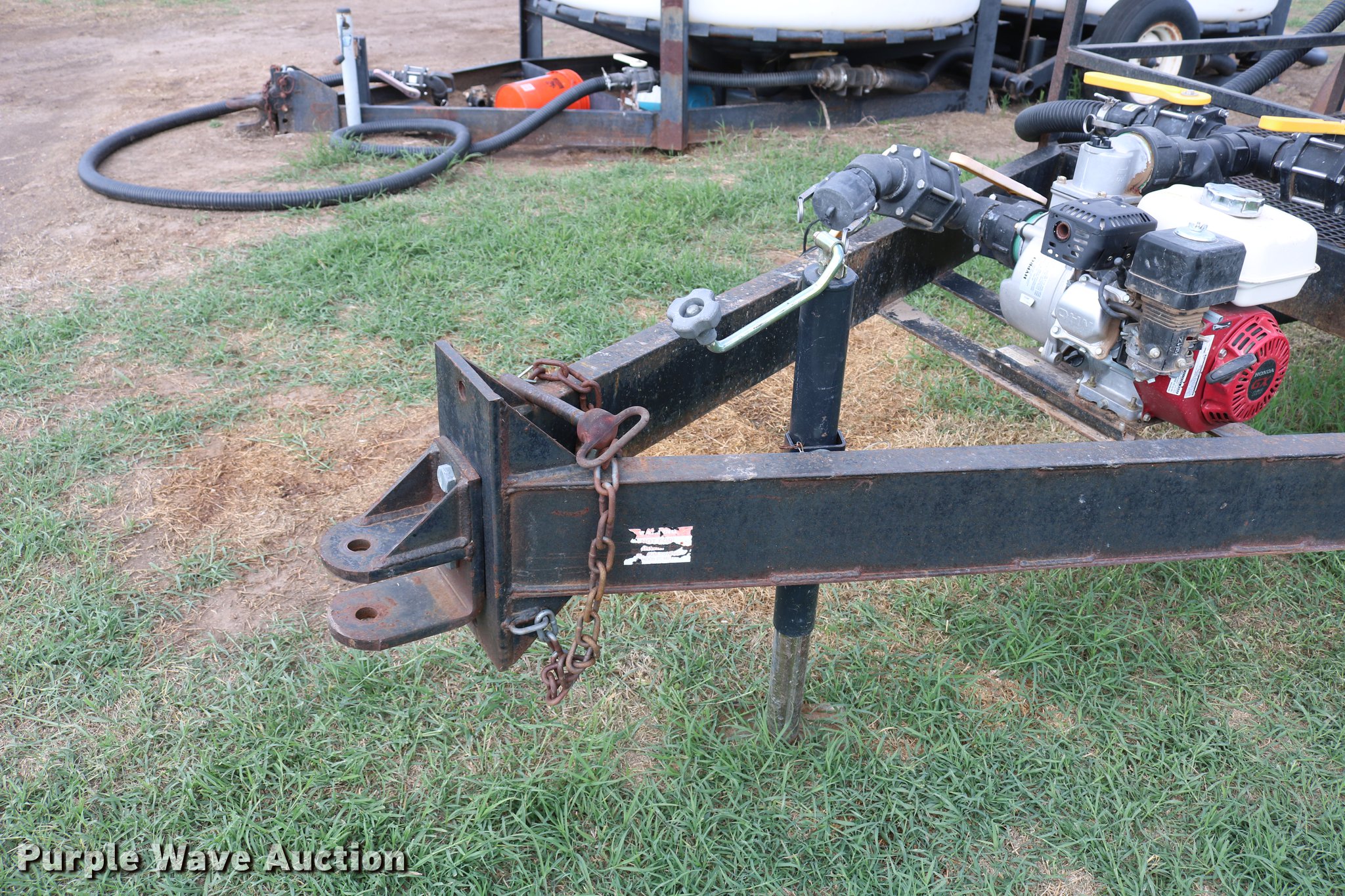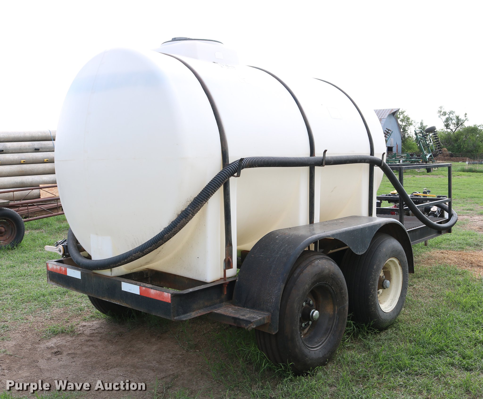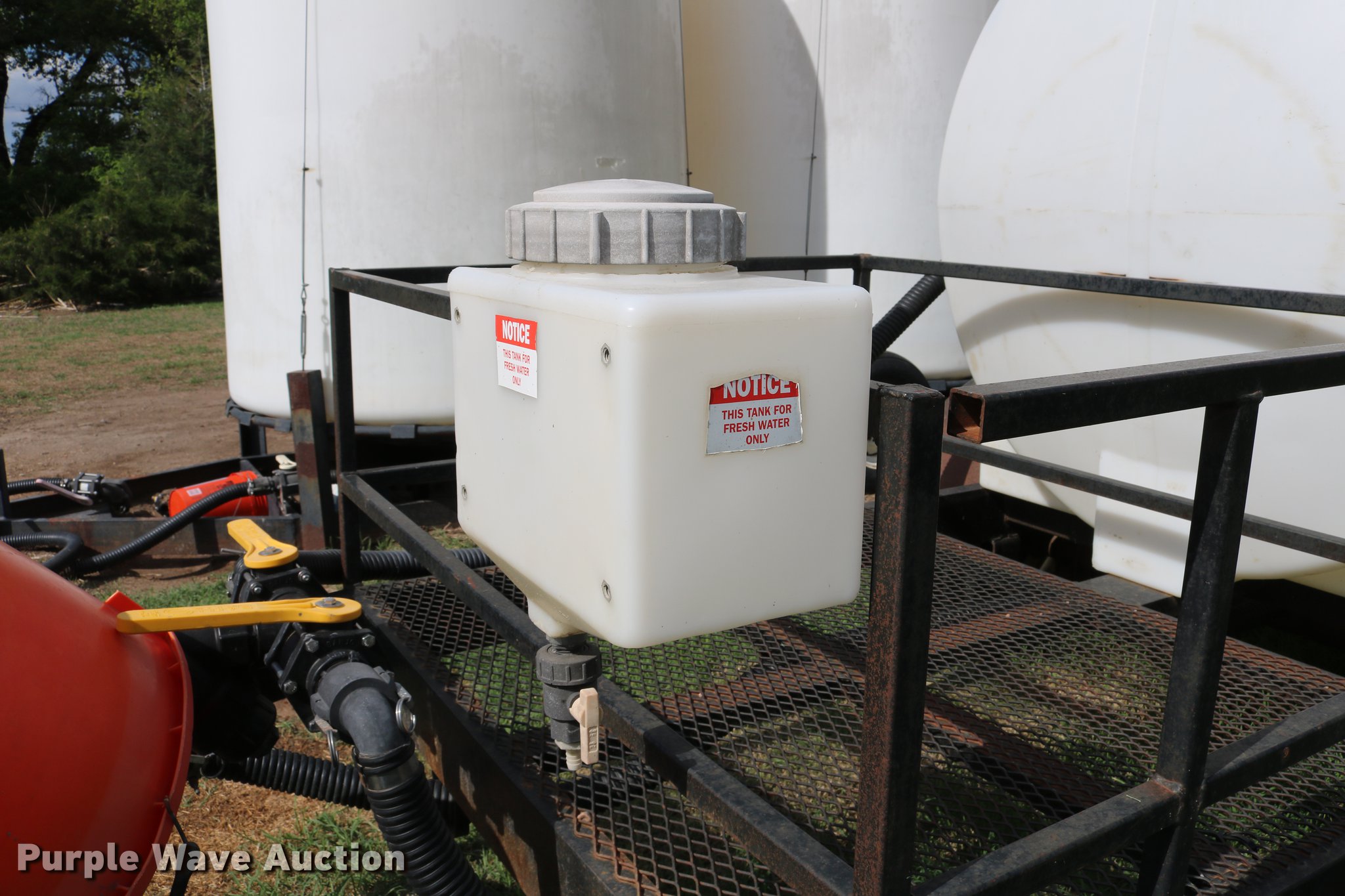 Purple Wave is selling a used Tank Trailer in Kansas. This item is a Nurse tank trailer with the following: 19'L overall, 13'L x 85"W deck, 59" x 47" front storage platform, 1,000 gallon poly nurse tank, Approx. two gallon fresh water tank, Honda GX160 163 C.I.D. one cylinder gas engine, Recoil start, Hypro 1573-SPX pump, 280 gpm capacity, 3" x 3" NPT port, Pin hitch, Single leg landing gear, Spring suspension, Tandem axle, 11L-15 tires