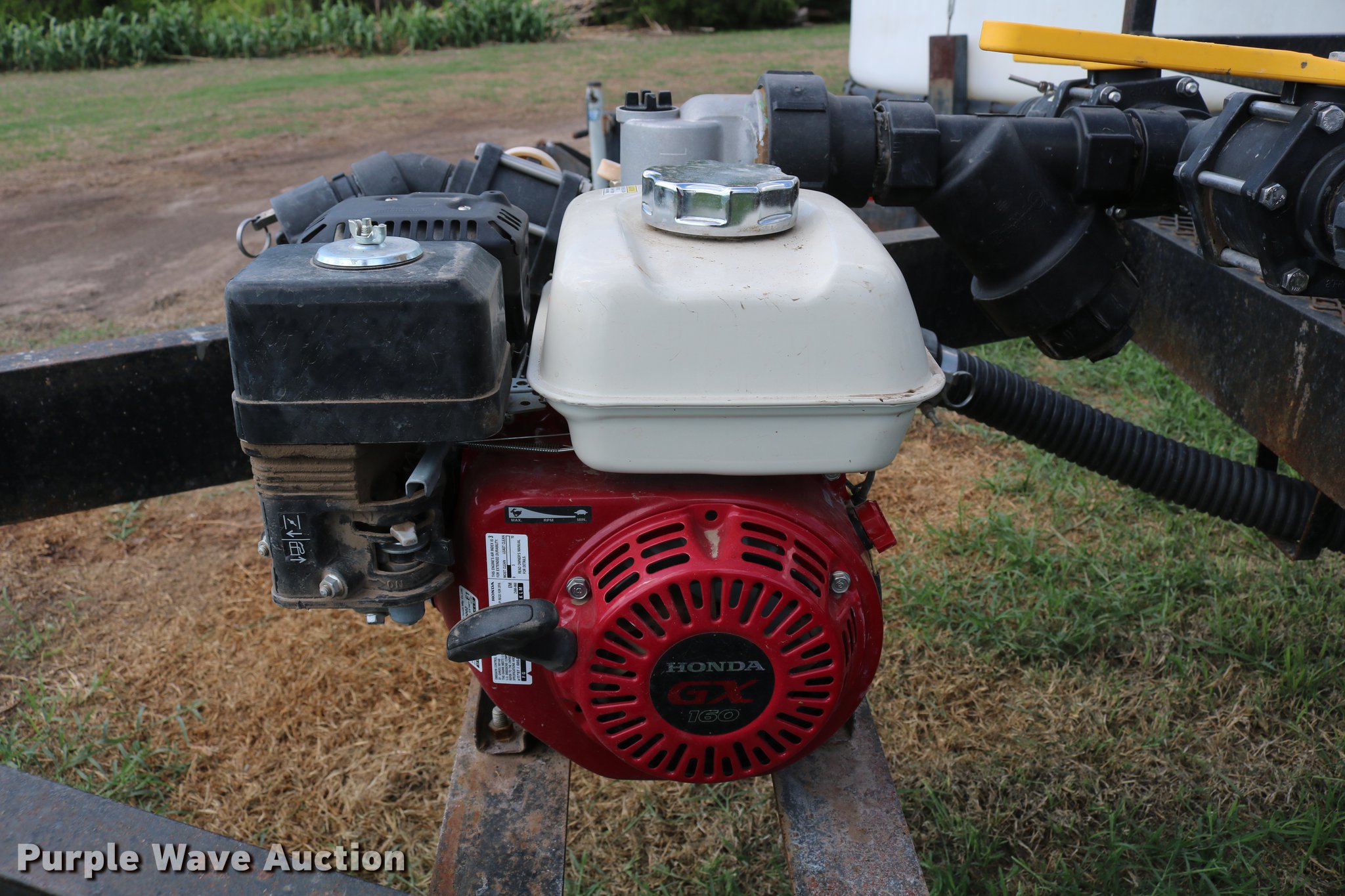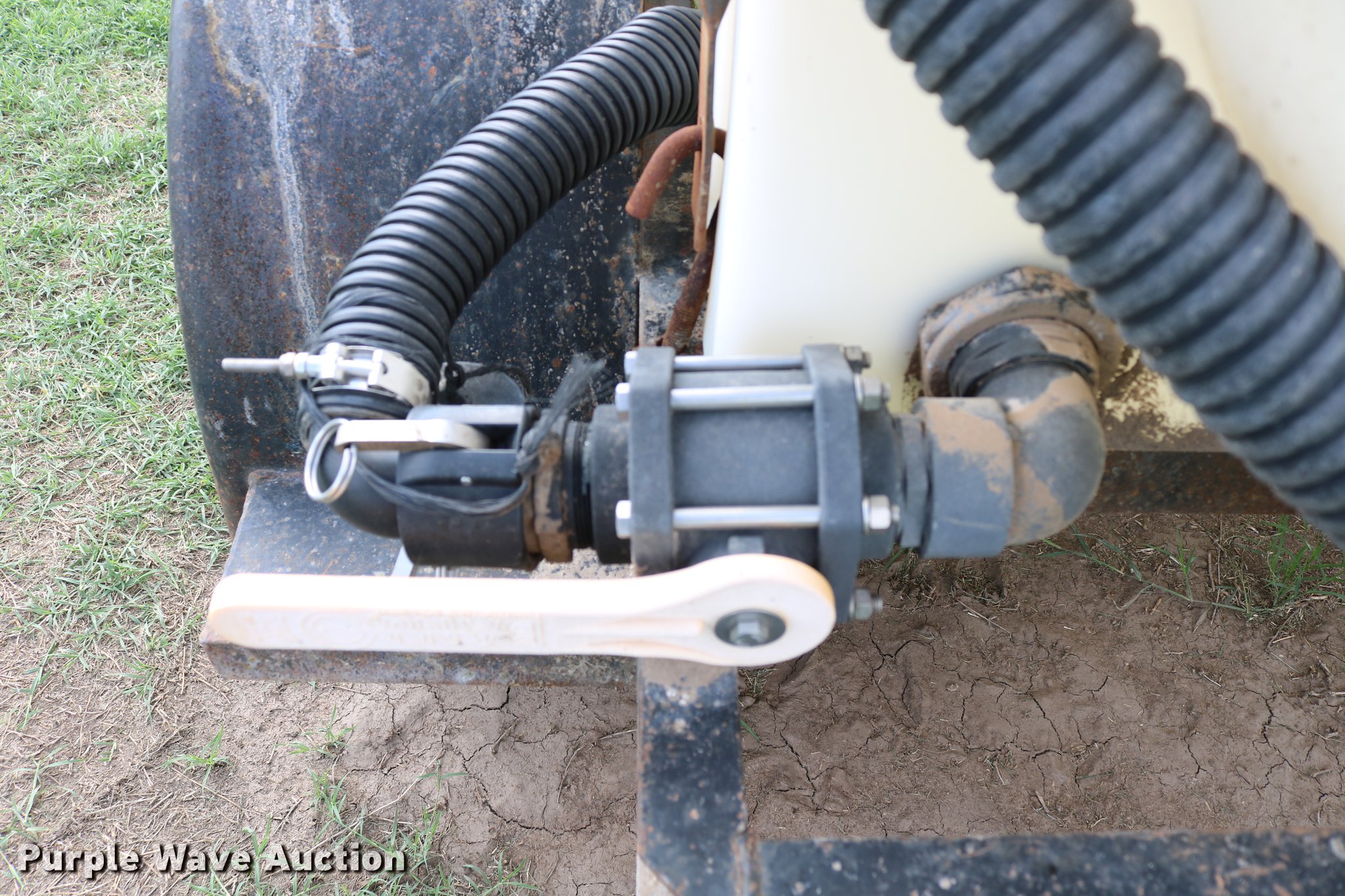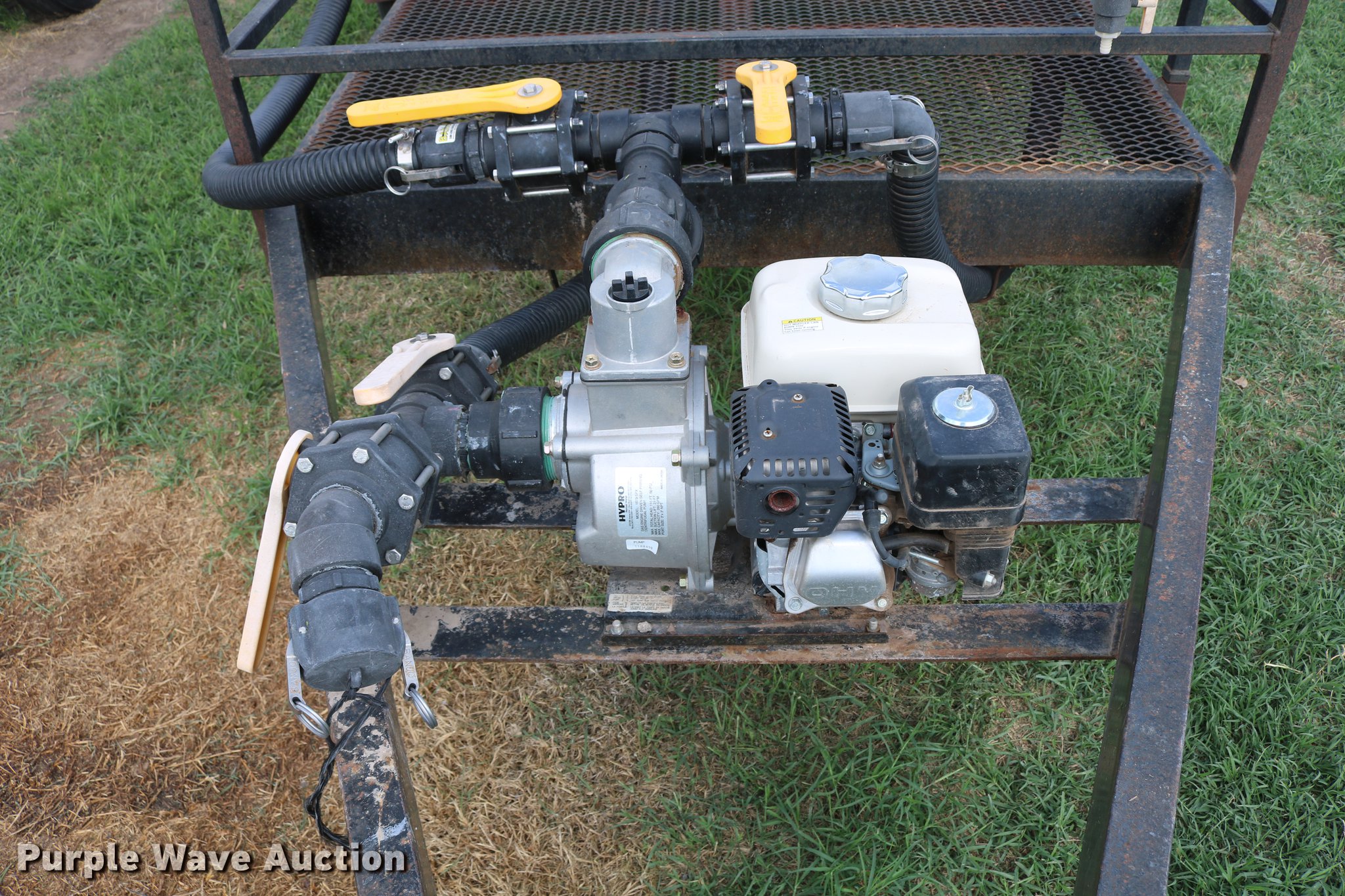 Nurse tank trailer. 19'L overall, 13'L x 85"W deck, 59" x 47" front storage platform, 1,000 gallon poly nurse tank, Approx. two gallon fresh water tank, Honda GX160 163 C.I.D. one cylinder gas engine Recoil start, Hypro 1573-SPX pump 280 gpm capacity, 3" x 3" NPT port, Pin hitch, Single leg landing gear, Spring suspension, Tandem axle, 11L-15 tires. Transfer of ownership documentation will be a bill of sale. Circle J Farms Inc. - Open inspection June 5th and 19th. 151 NW 40 Ave. Great Bend, KS 67530