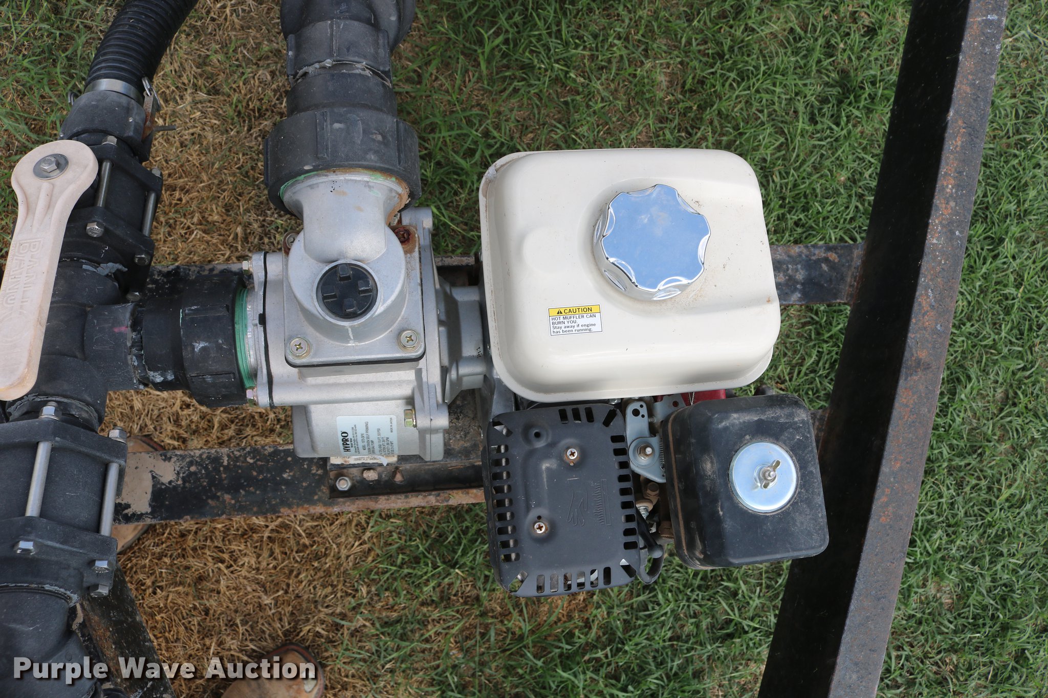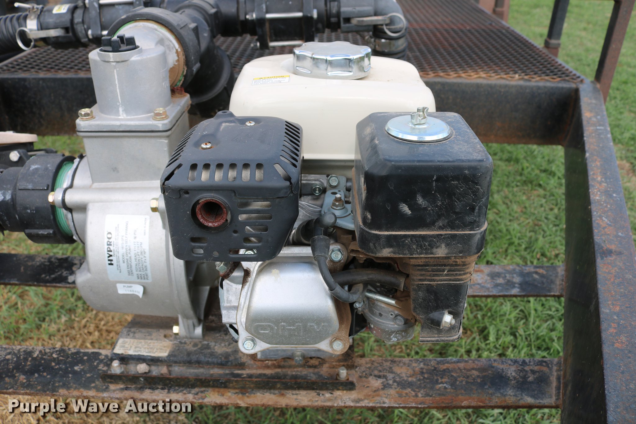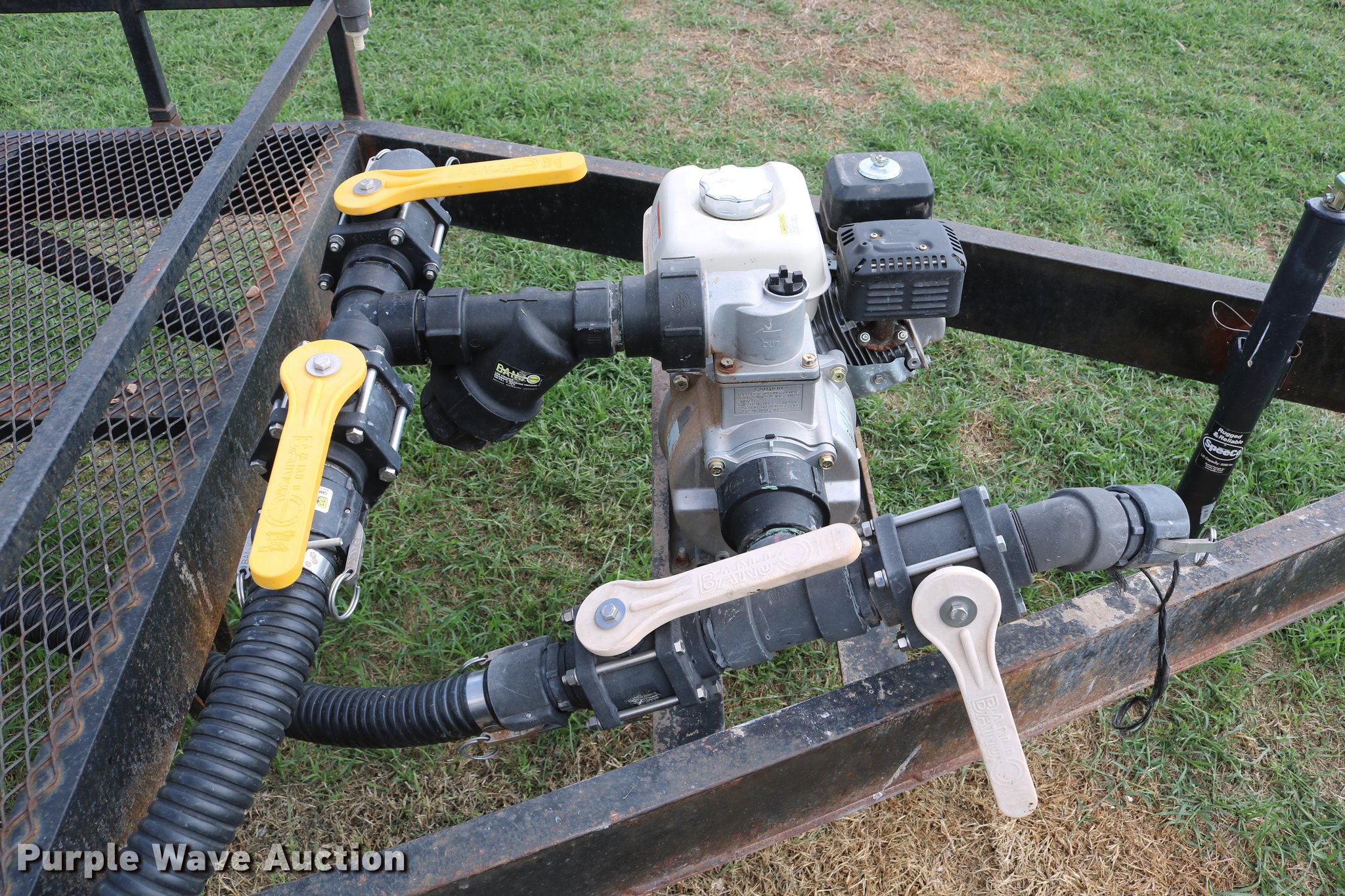 Nurse tank trailer. 19'L overall, 13'L x 85"W deck, 59" x 47" front storage platform, 1,000 gallon poly nurse tank, Approx. two gallon fresh water tank, Honda GX160 163 C.I.D. one cylinder gas engine Recoil start, Hypro 1573-SPX pump 280 gpm capacity, 3" x 3" NPT port, Pin hitch, Single leg landing gear, Spring suspension, Tandem axle, 11L-15 tires. Transfer of ownership documentation will be a bill of sale. Circle J Farms Inc. - Open inspection June 5th and 19th. 151 NW 40 Ave. Great Bend, KS 67530