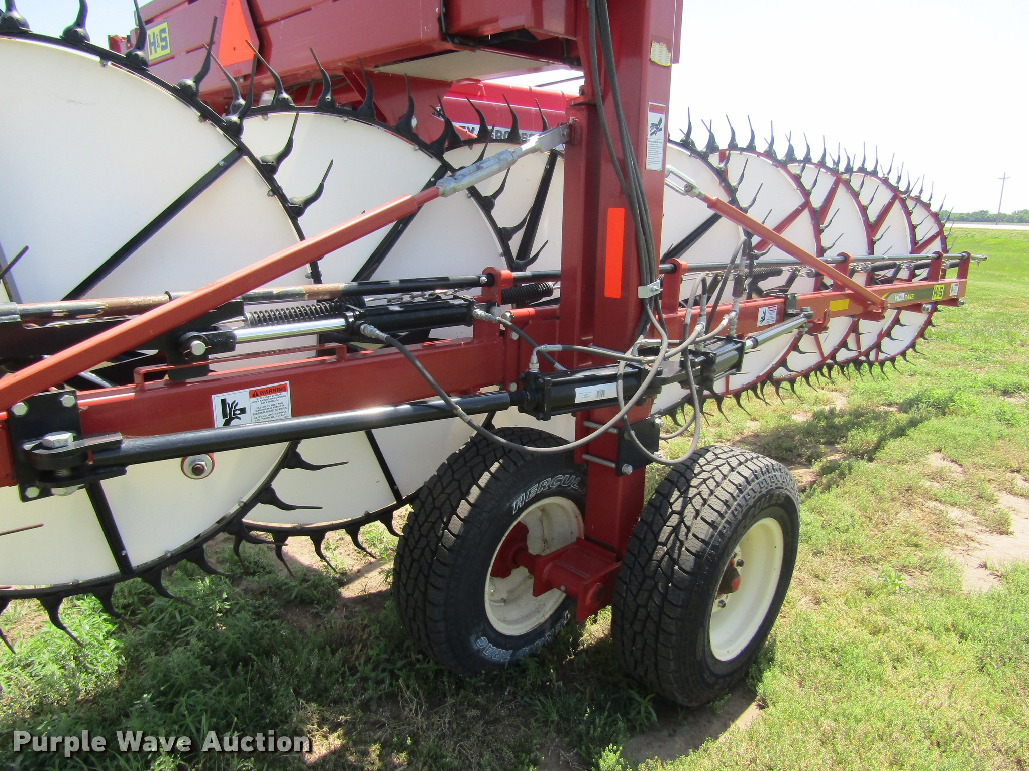 Purple Wave is selling a used Hay Rake in Kansas. This item is a 2012 H&S HDII hay rake with the following: (20) 48" wheels, Polywind guards, Double rubber teeth, Hydraulic front fold, Transport lights, Work lights, Pin hitch, Stabilizer jack, Walking tandem axle, 30x9.50 tires, Serial 210520, Stock# C00000292