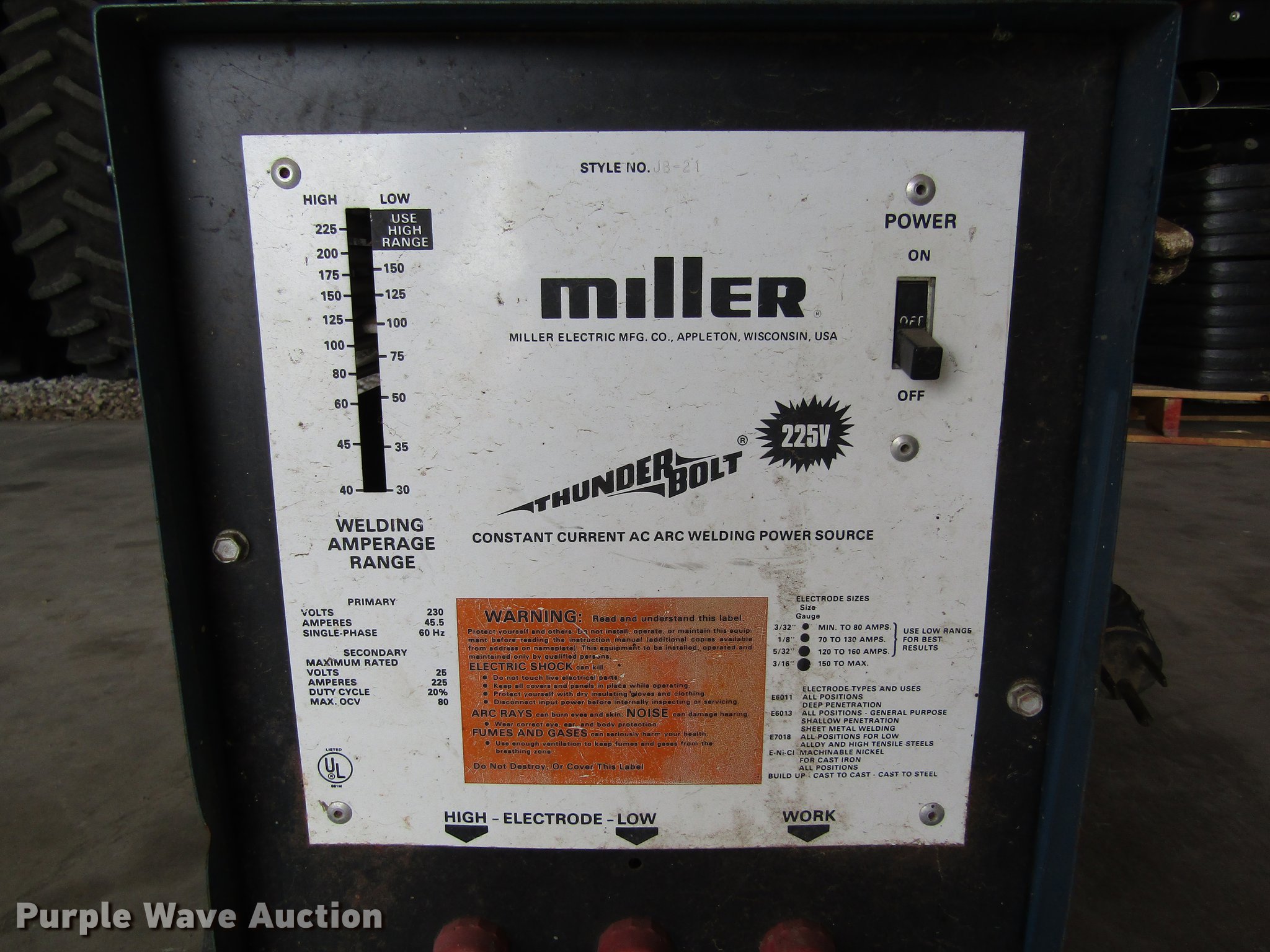 Purple Wave is selling a used Welder (Manual) in Kansas. This item is a Miller Thunderbolt AC welder with the following: 225V, Ground and rod leads