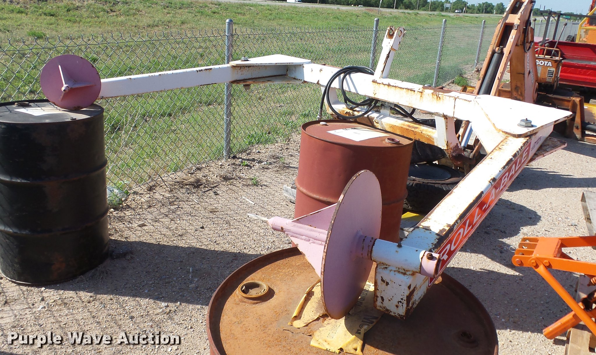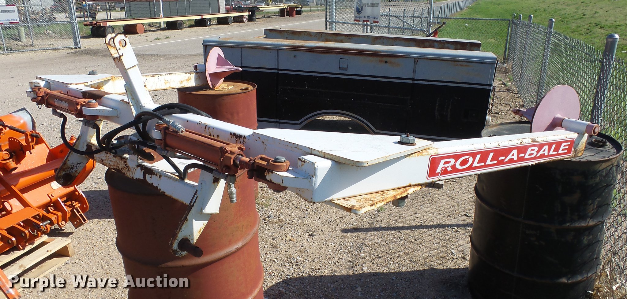 Purple Wave is selling a used Hay Handling in Kansas. This item is a Roll-A-Bale hay mover with the following: Hydraulic squeeze, Three point
