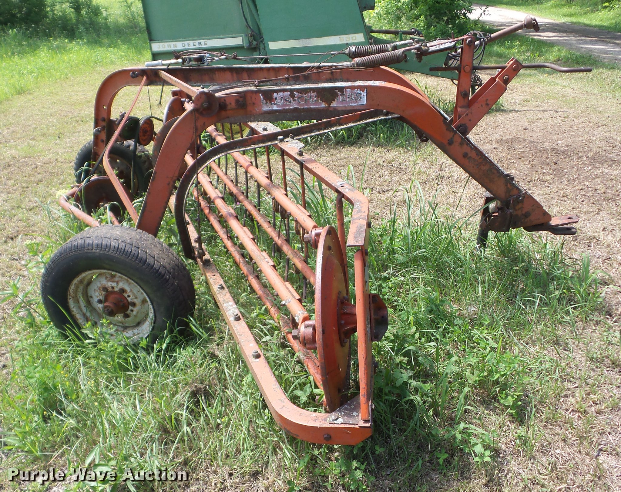 Purple Wave is selling a used Hay Rake in Kansas. This item is a Allis Chalmers hay rake with the following: 8'W, Ground driven, Pin hitch