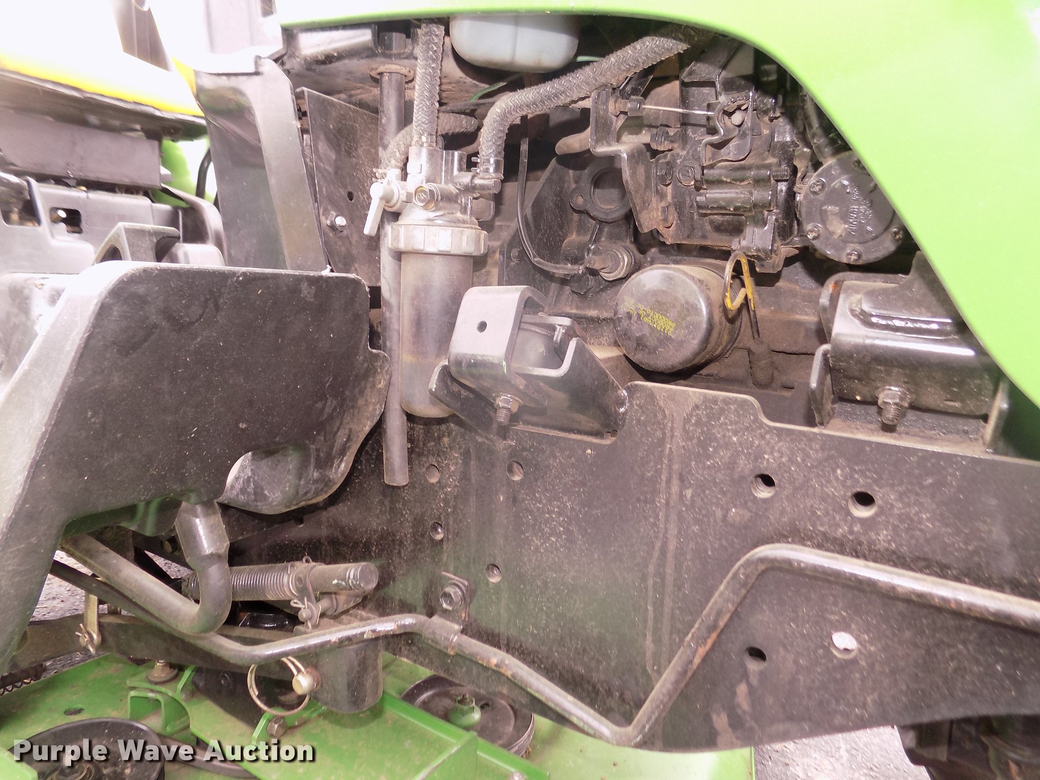 Purple Wave is selling a used Tractor in Iowa. This item is a 2006 John Deere 2320 MFWD tractor with the following: 712 hours on meter, Yanmar 1.116L three cylinder diesel engine, 24 HP, Two speed hydrostatic transmission, OROPS, Serial 01917, Suspension seat, Grill guard, Three point, Top link, 540 PTO, 1 7/8" ball hitch, Front hydraulic remote sets, John Deere drive over mower deck, 60"W, Deflector will be reinstalled prior to auction, Parking brake, 23x8.50-12 front tires, 12-16.5 rear tires, Rear wheel weights, Serial LV2320H103742