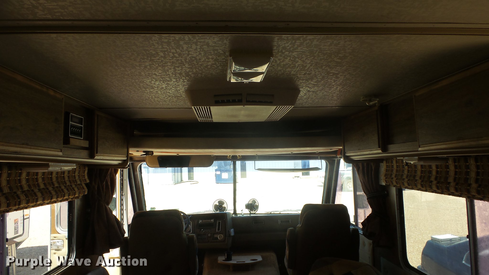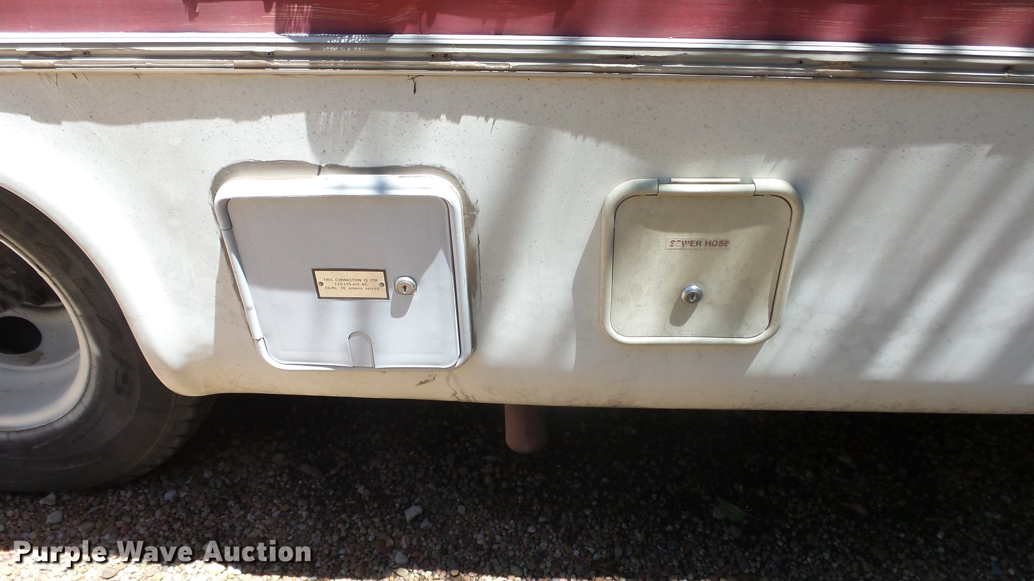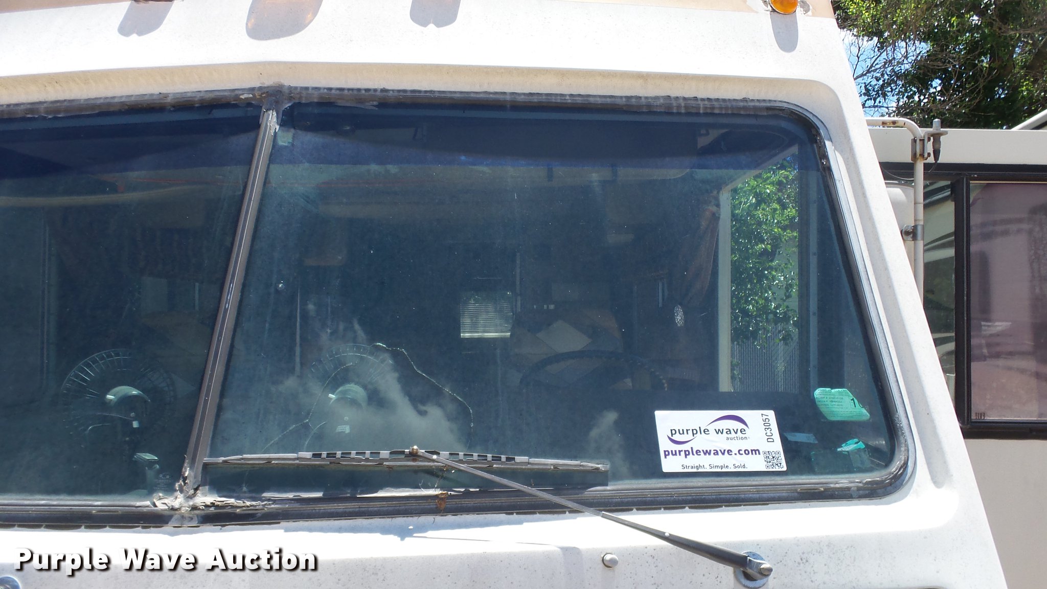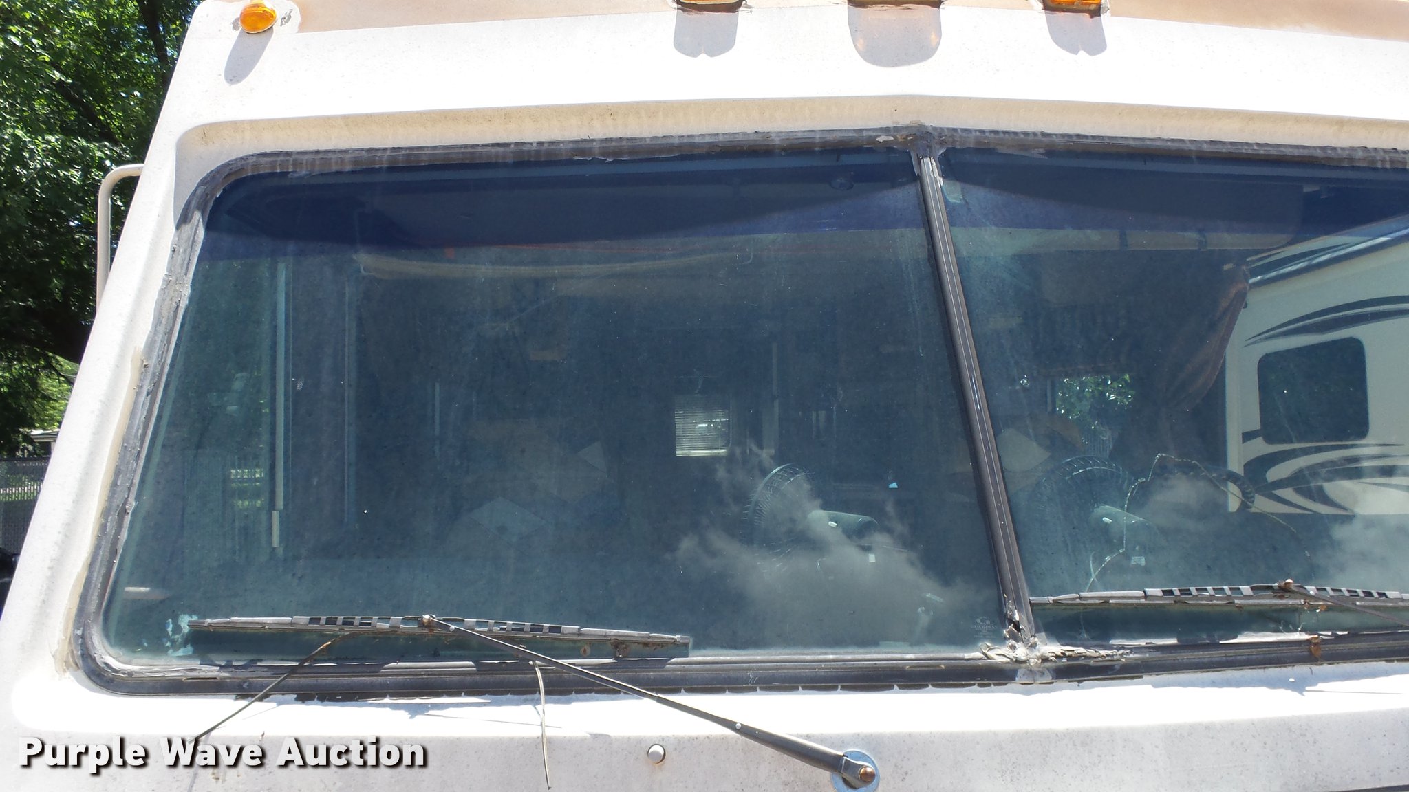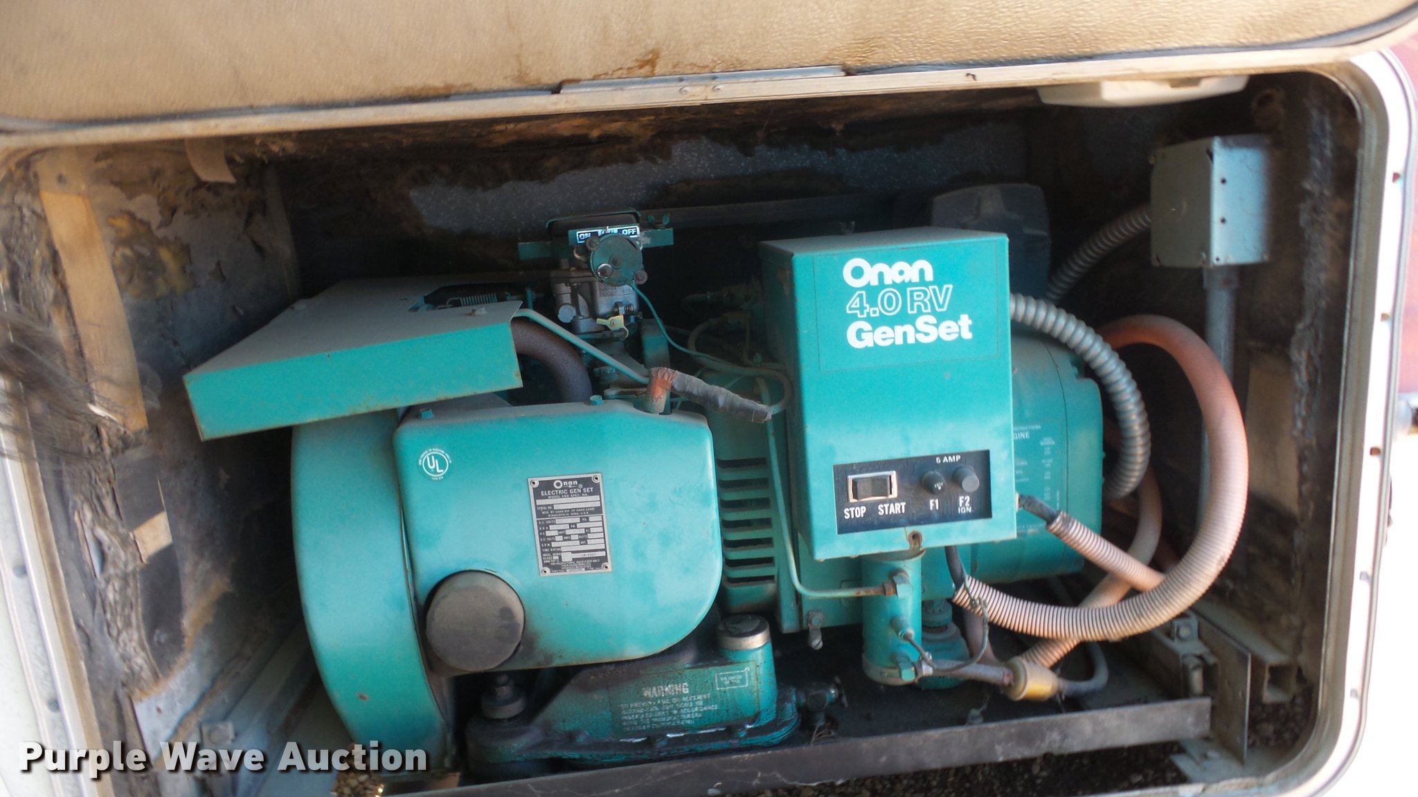 Purple Wave is selling a used RV in Kansas. This item is a 1981 Pace Arrow RV with the following: 73,684 miles on odometer, Eight cylinder gas engine, Automatic transmission, AC and heat, AM/FM/CD, Manual windows and locks, Approx. 20'L, Awning, Love seat, Table, Stow-away upper bunk, Sink, Stove/oven, Microwave, Lavatory, Refrigerator/freezer, Shower, Onan 4.0RV generator, 629 hours on meter, Gas engine, Propane heater, Receiver hitch, 235/85R16 tires, Unknown operating condition of water and sewer system, Engine issues, Engine knocks, Overheats, Possible spun bearing, Unit must be towed or hauled