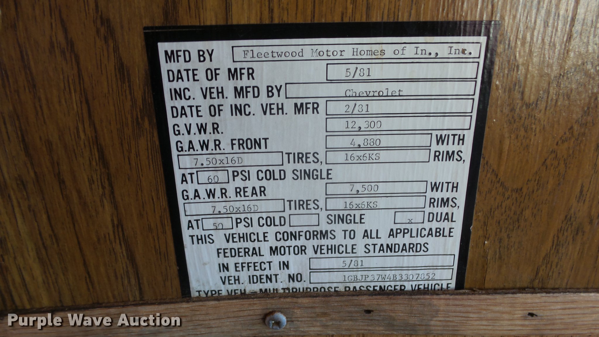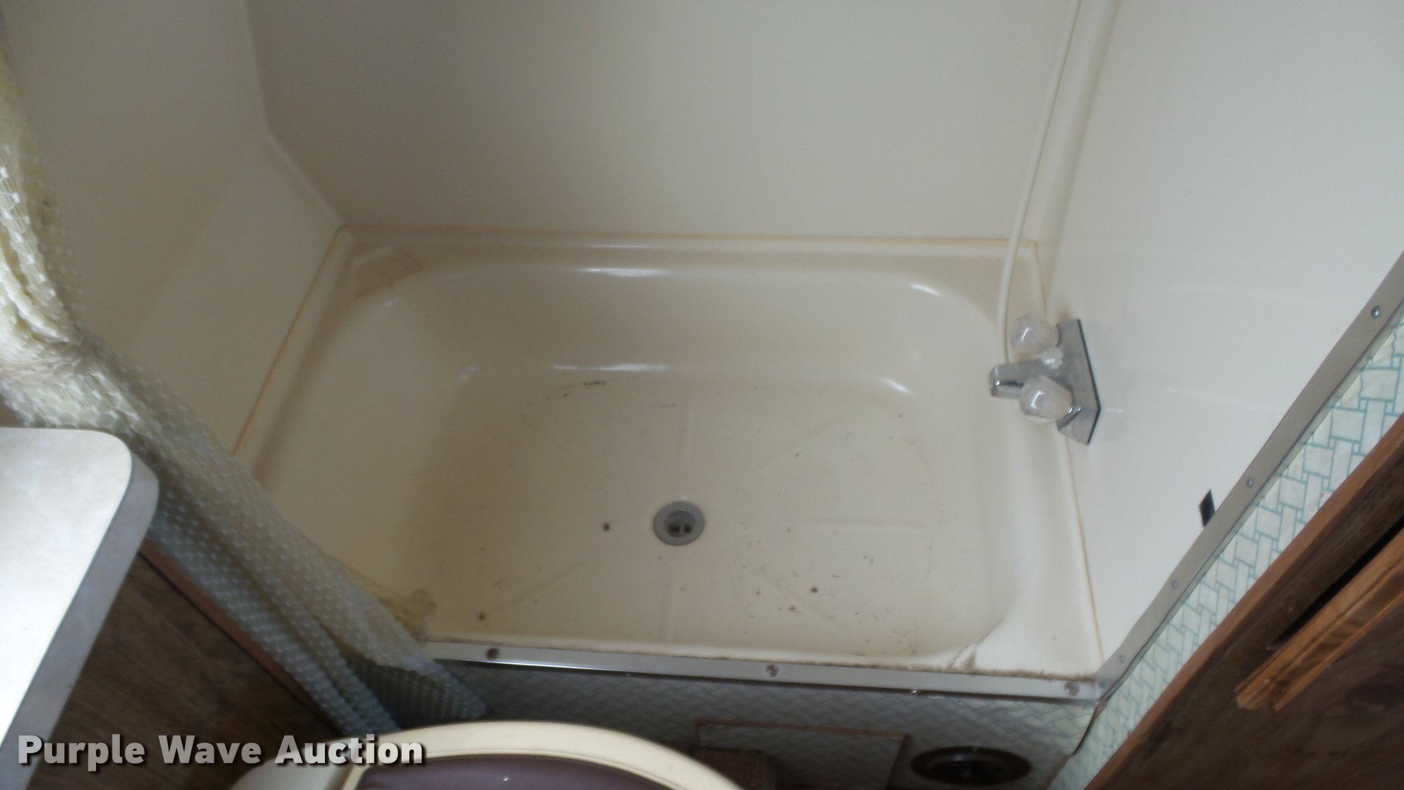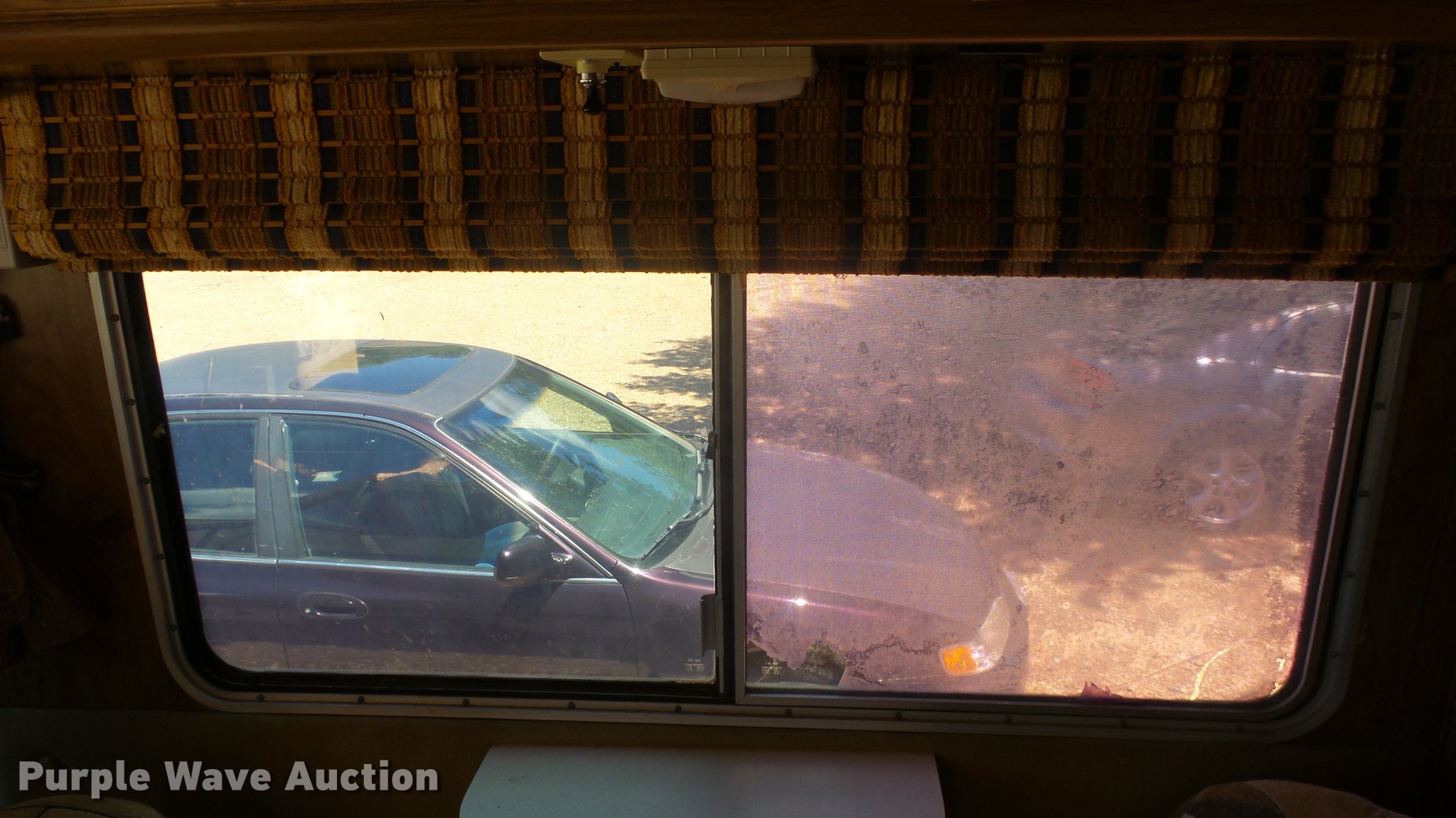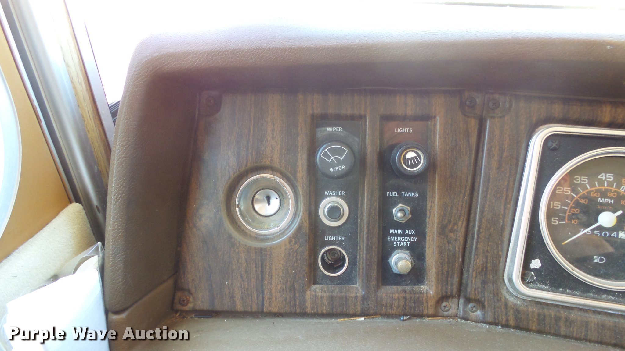 Purple Wave is selling a used RV in Kansas. This item is a 1981 Pace Arrow RV with the following: 73,684 miles on odometer, Eight cylinder gas engine, Automatic transmission, AC and heat, AM/FM/CD, Manual windows and locks, Approx. 20'L, Awning, Love seat, Table, Stow-away upper bunk, Sink, Stove/oven, Microwave, Lavatory, Refrigerator/freezer, Shower, Onan 4.0RV generator, 629 hours on meter, Gas engine, Propane heater, Receiver hitch, 235/85R16 tires, Unknown operating condition of water and sewer system, Engine issues, Engine knocks, Overheats, Possible spun bearing, Unit must be towed or hauled
