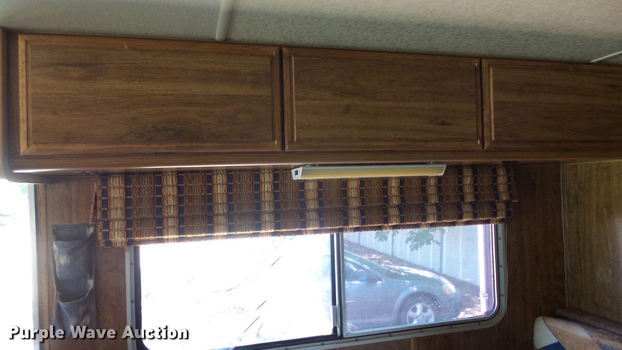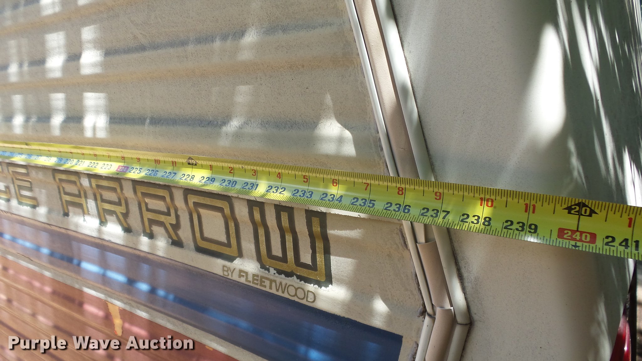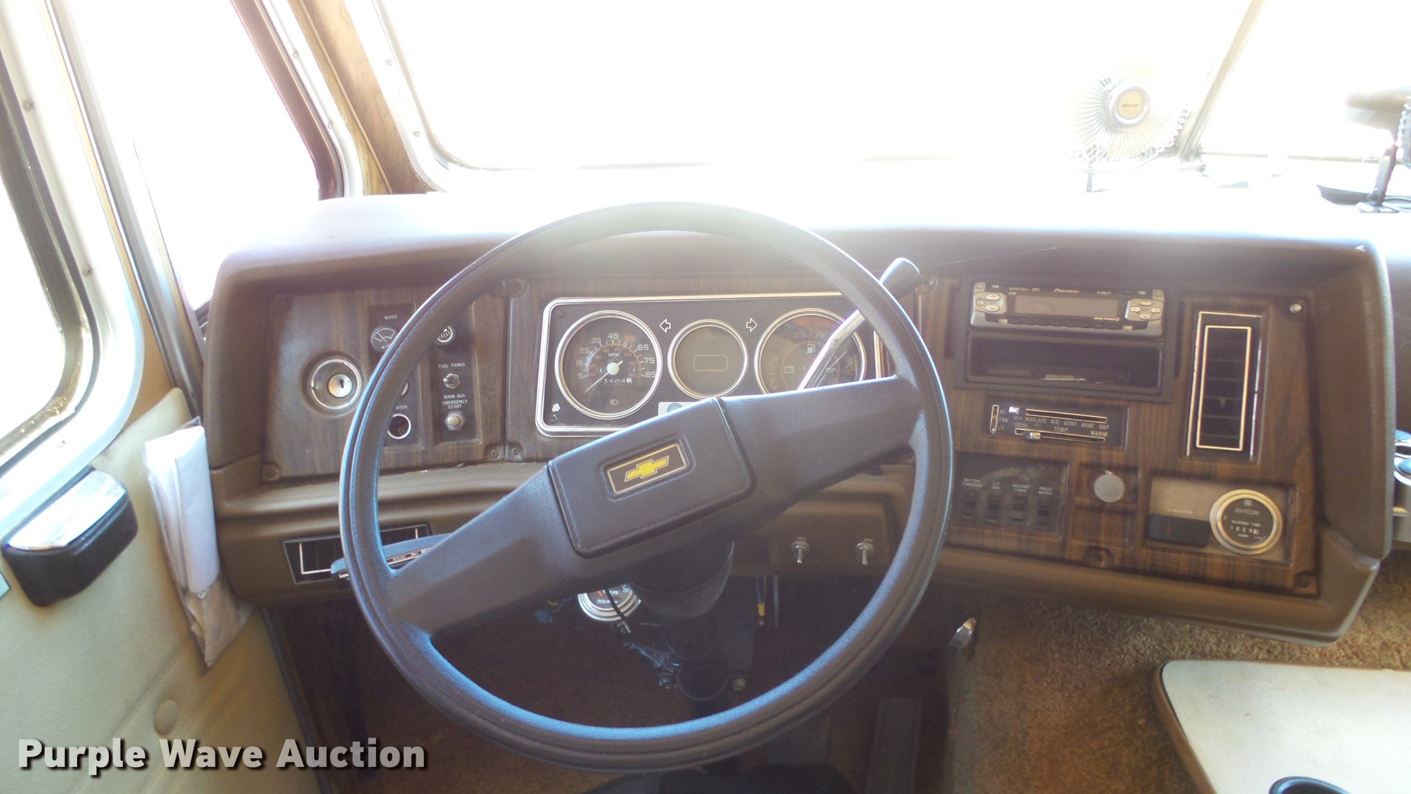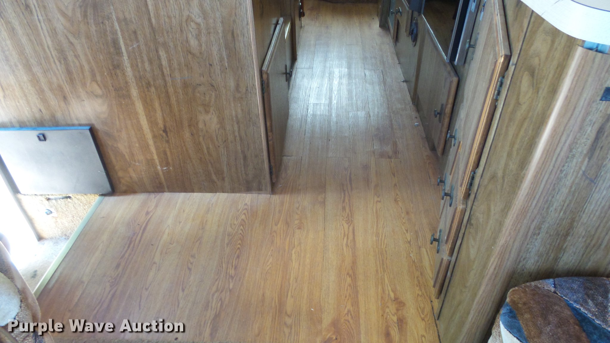 Purple Wave is selling a used RV in Kansas. This item is a 1981 Pace Arrow RV with the following: 73,684 miles on odometer, Eight cylinder gas engine, Automatic transmission, AC and heat, AM/FM/CD, Manual windows and locks, Approx. 20'L, Awning, Love seat, Table, Stow-away upper bunk, Sink, Stove/oven, Microwave, Lavatory, Refrigerator/freezer, Shower, Onan 4.0RV generator, 629 hours on meter, Gas engine, Propane heater, Receiver hitch, 235/85R16 tires, Unknown operating condition of water and sewer system, Engine issues, Engine knocks, Overheats, Possible spun bearing, Unit must be towed or hauled
