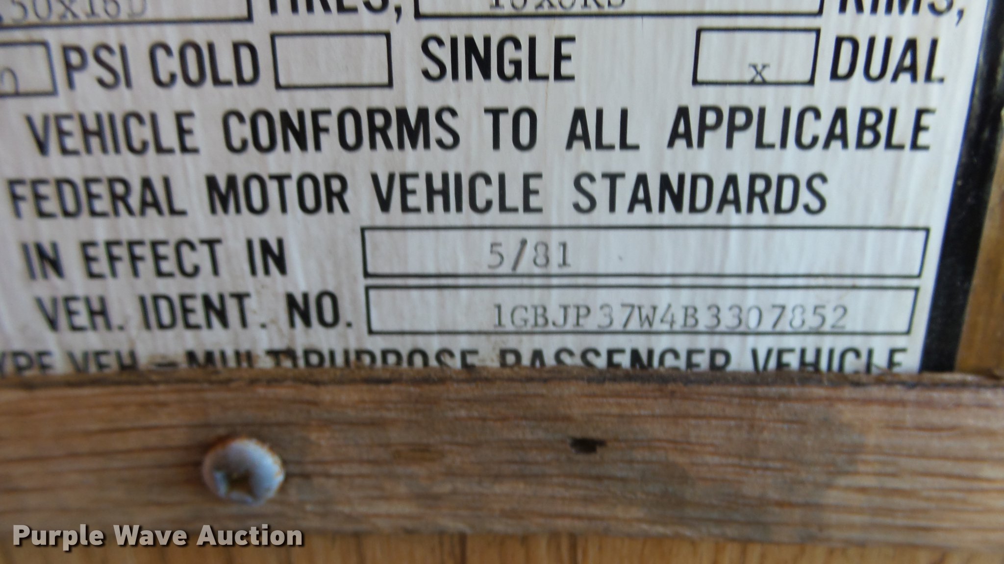 1981 Pace Arrow RV. 73,684 miles on odometer, Eight cylinder gas engine, Automatic transmission, AC and heat, AM/FM/CD, Manual windows and locks, Approx. 20'L, Awning, Love seat, Table, Stow-away upper bunk, Sink, Stove/oven, Microwave, Lavatory, Refrigerator/freezer, Shower, Onan 4.0RV generator 629 hours on meter, Gas engine, Propane heater, Receiver hitch, 235/85R16 tires, Unknown operating condition of water and sewer system, Engine issues Engine knocks, Overheats, Possible spun bearing, Unit must be towed or hauled. Kansas title. 1GBJP37W4B3307852. Derby, KS 67037