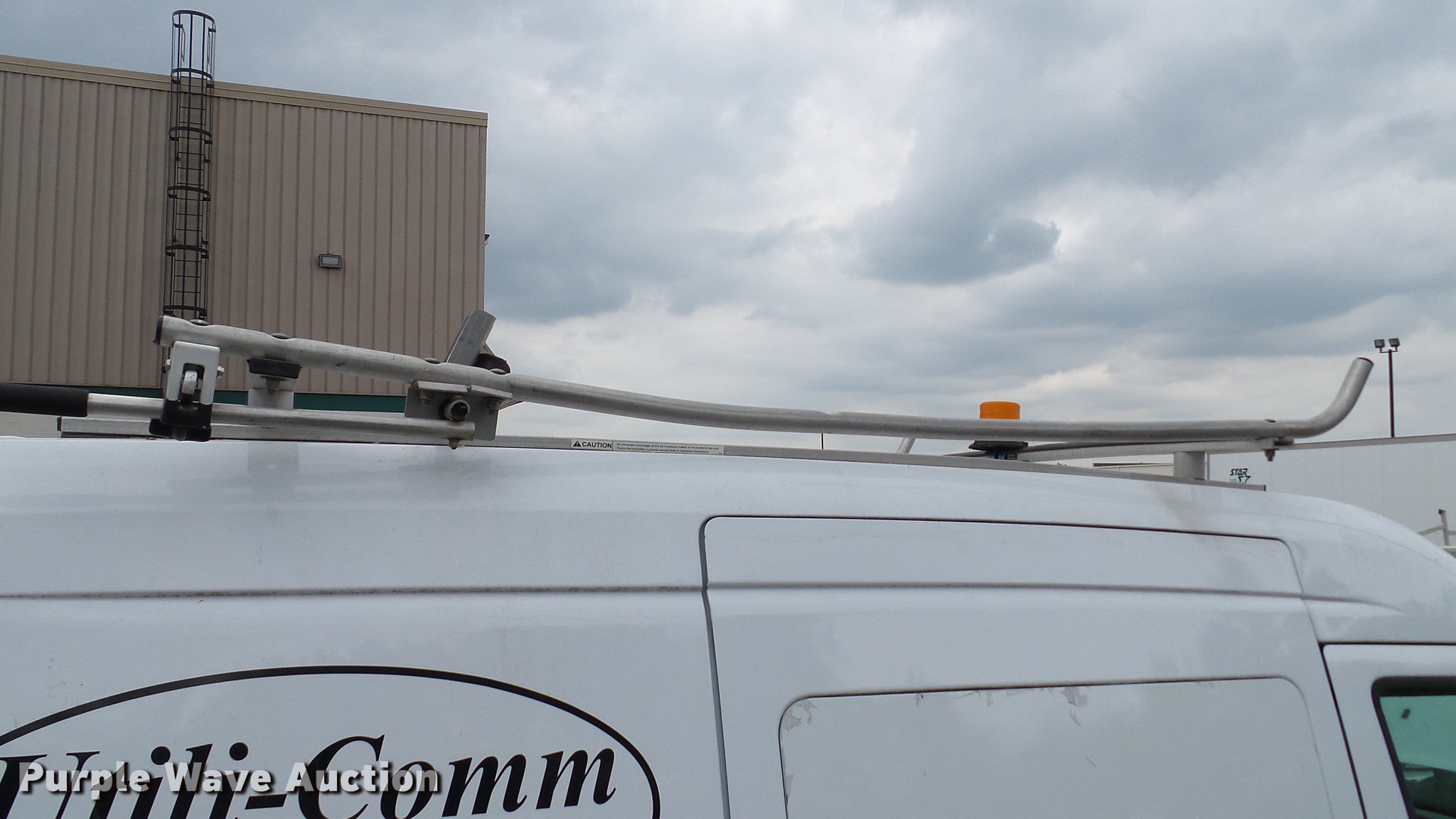 2010 Ford Transit Connect van. 114,605 miles on odometer, 2.0L L4 DOHC 16V gas engine, Automatic transmission, AC and ehat, AM/FM, Cloth interior, Adrian utility rack, Storage cabinets, 205/65R15 tires, Battery dead, Tires flat, Taillight broken, Unknown operating condition, Unit# 113. Indiana title. Utili-Comm South. 1435 Brookville Way. Indianapolis, IN 46239