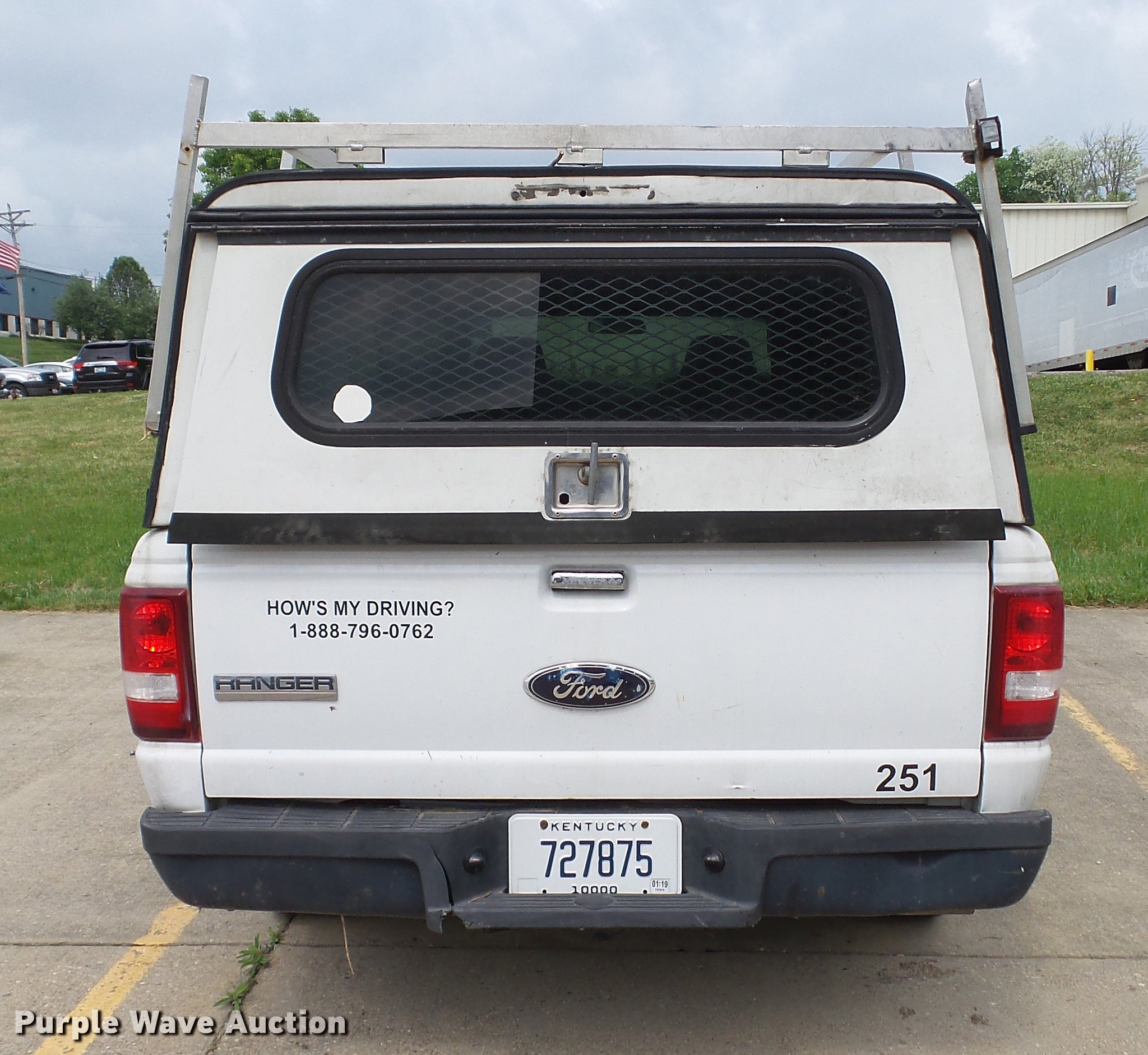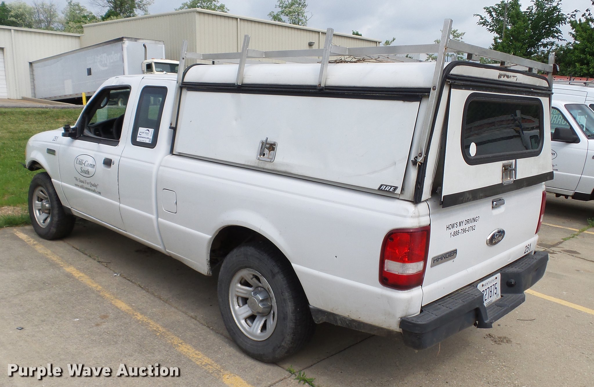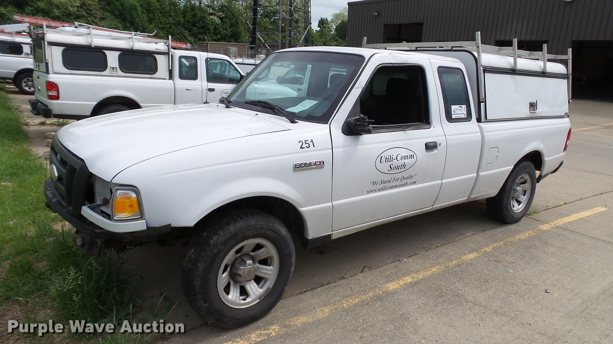 Purple Wave is selling a used Compact Pickup or Van in Kentucky. This item is a 2008 Ford Ranger SuperCab pickup truck with the following: Unknown miles on odometer, 3.0L V6 OHV 12V gas engine, Automatic transmission, AC and heat, AM/FM, Cloth interior, ARE topper, Utility rack, 225/70R15 tires, Dead battery, Wreck damage, Air bags deployed, Hood will not open, Unknown operating condition, Contents not included, Unit# 251