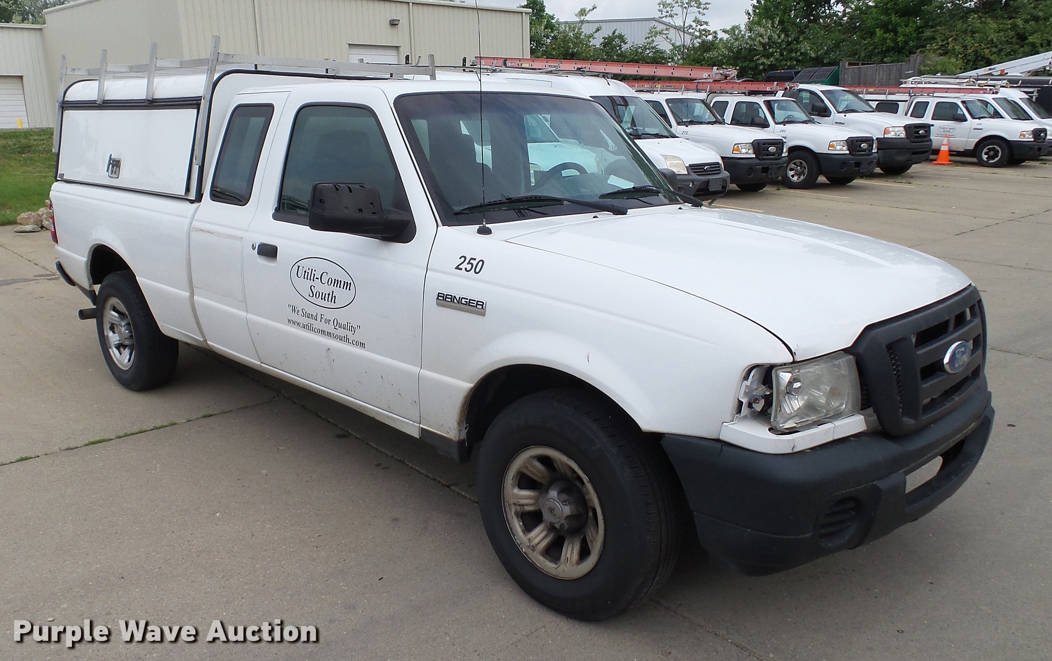 Purple Wave is selling a used Compact Pickup or Van in Kentucky. This item is a 2008 Ford Ranger SuperCab pickup truck with the following: 142,121 miles on odometer, 3.0L V6 OHV 12V gas engine, Automatic transmission, AC and heat, AM/FM, Cloth interior, ARE topper, Utility rack, 225/75R15 tires, Dead battery, Front end damage, Engine misfire, Exhaust leak, Taillight broken, Unknown operating condition, Contents not included, Unit# 250