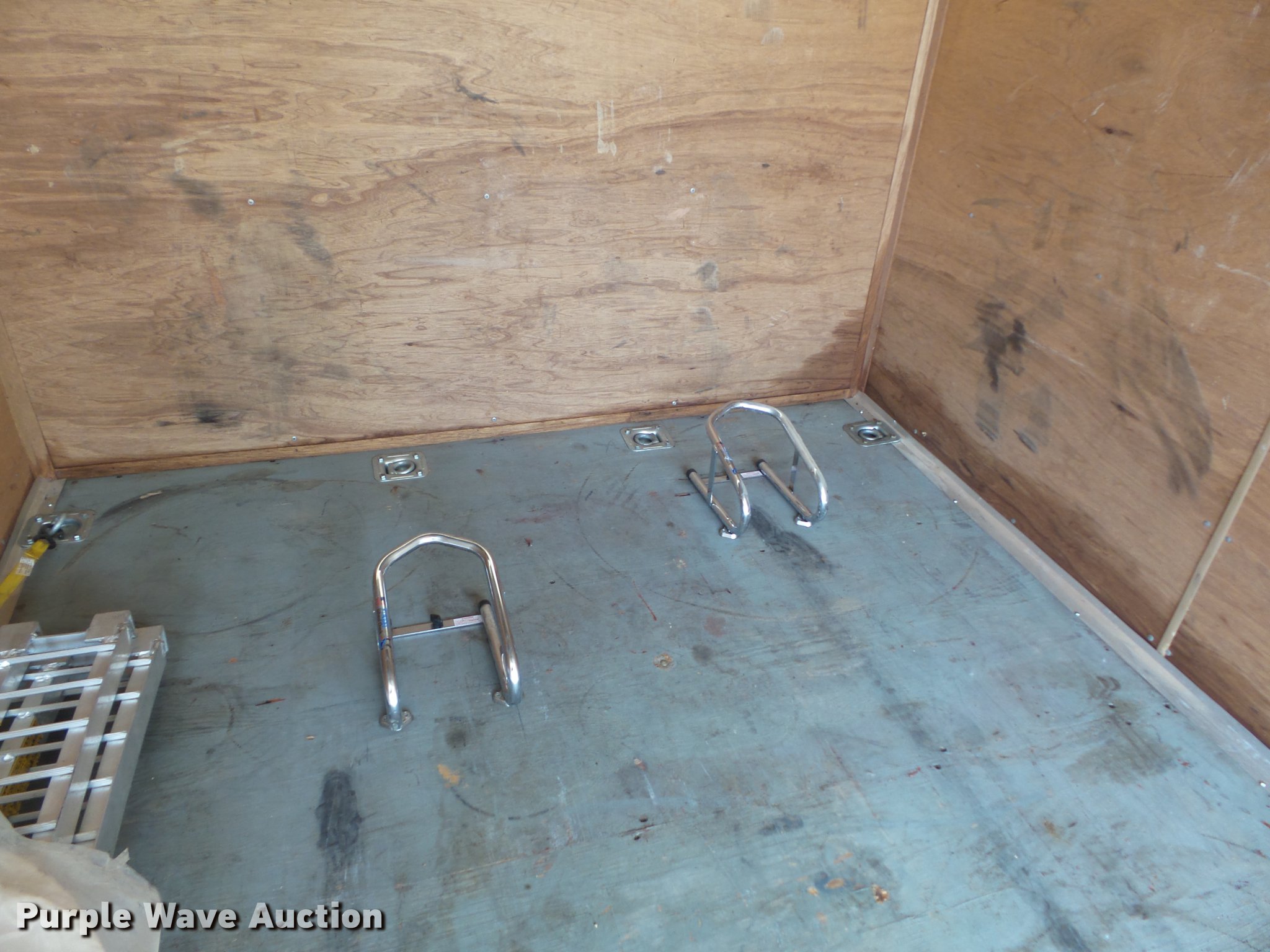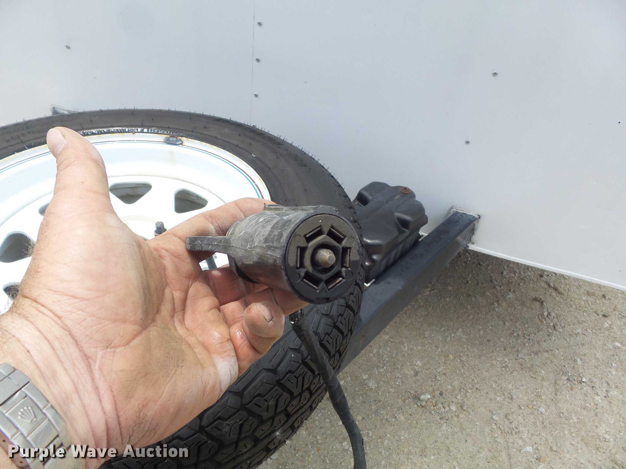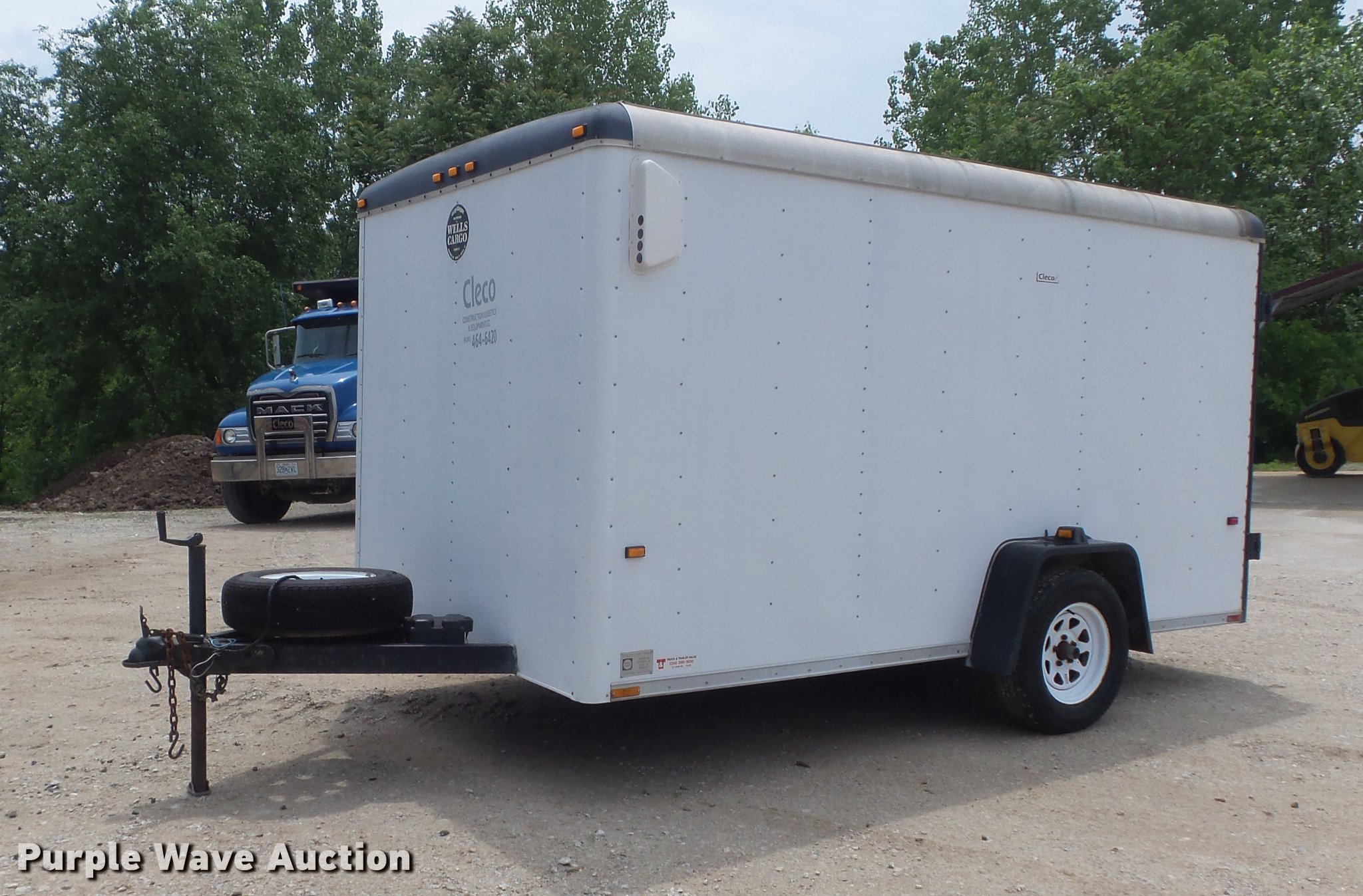 Purple Wave is selling a used Enclosed Cargo Trailer in Missouri. This item is a 1995 Wells Cargo CW121-102 enclosed cargo trailer with the following: 12'L x 102"W, Wood deck, Swinging rear doors, Aluminum ramps, 76.5"W x 63"H rear door opening, (2) front wheel chocks, Aluminum construction, 2" ball hitch, Single leg landing gear, Electric brakes, Torflex single axle, Steel wheels, ST205/75R15 tires, GVWR 3,850 lbs, Additional tire and wheel