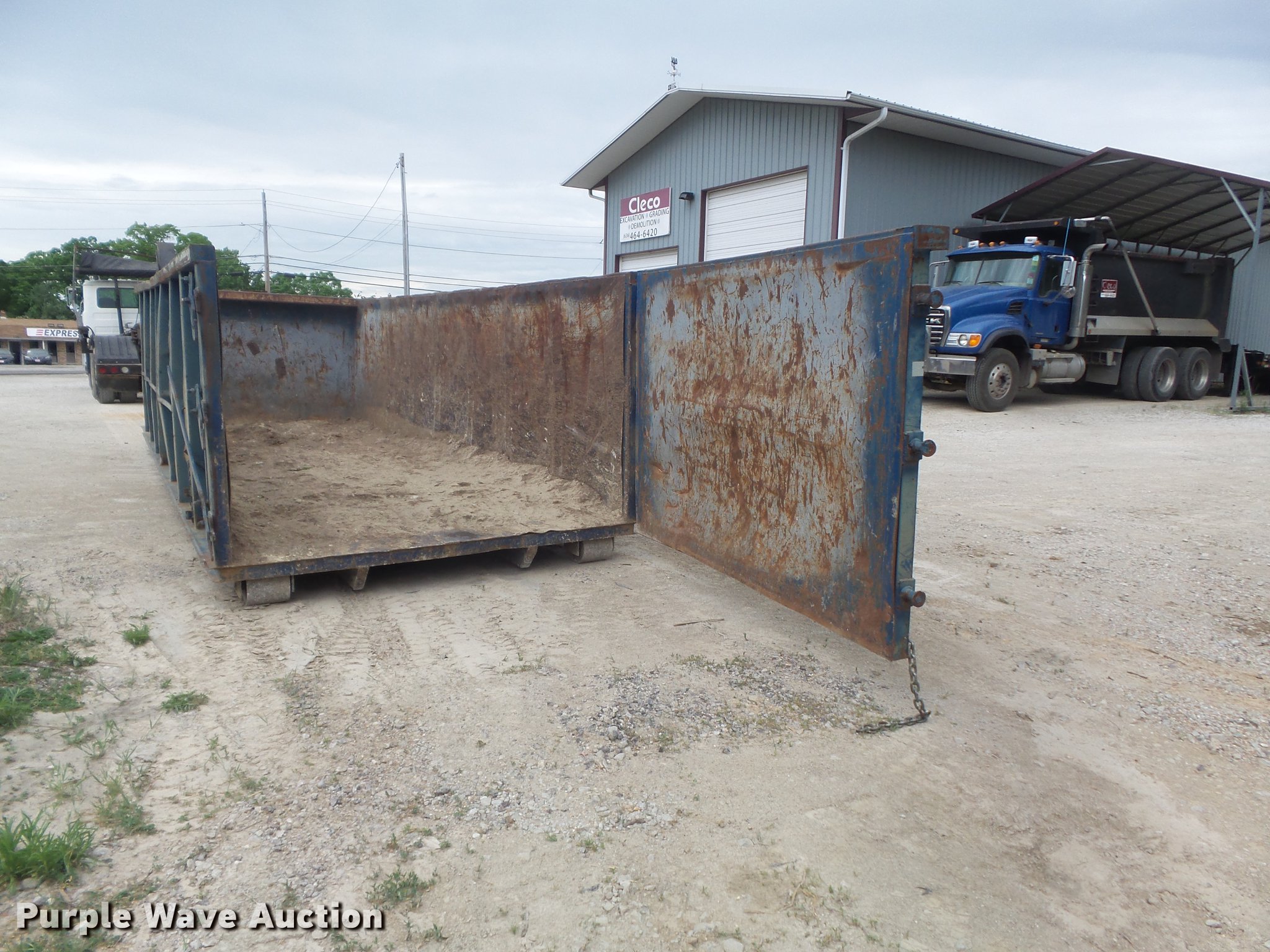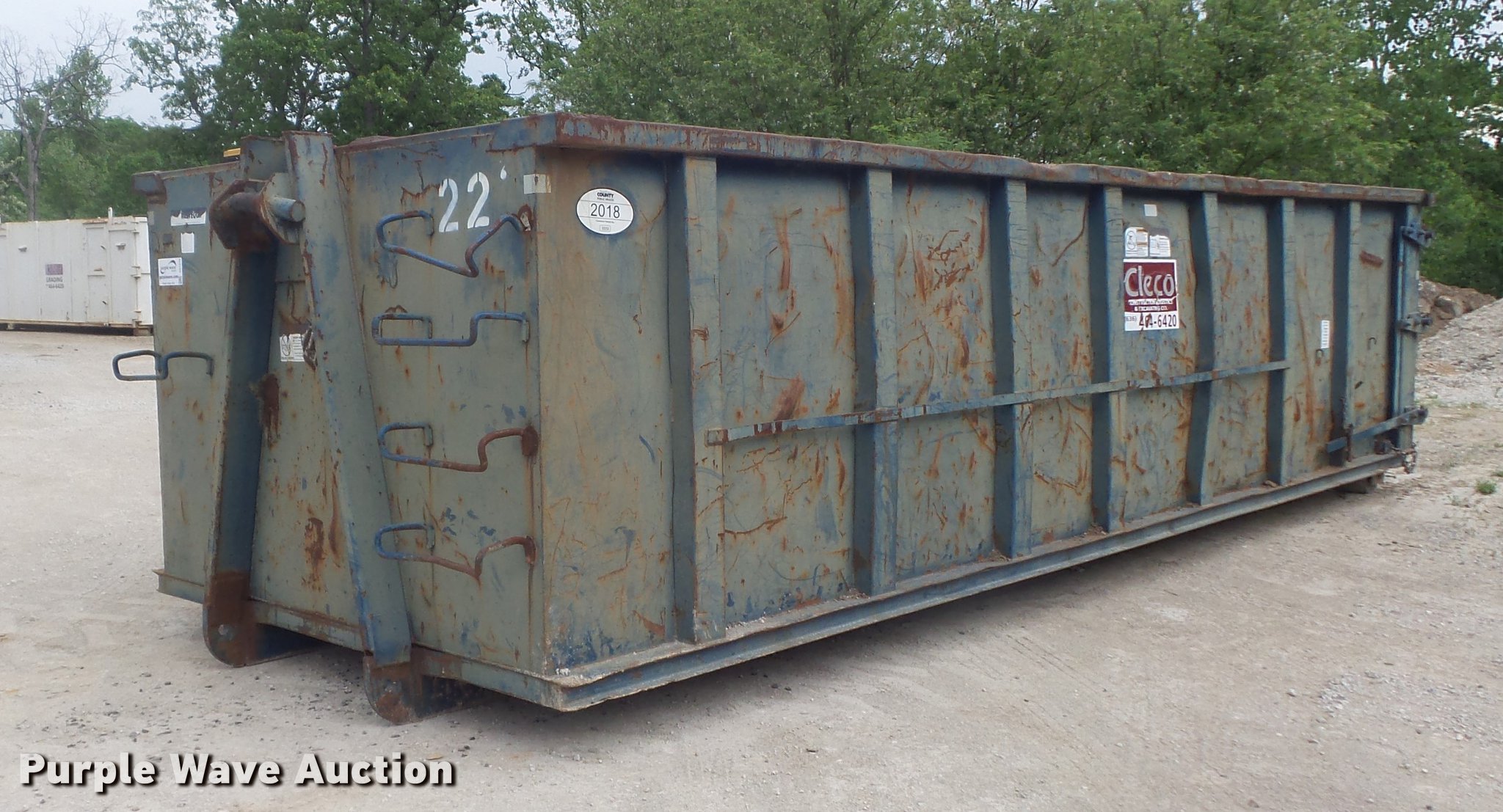 Hook lift container. 22'L x 90"W x 60"H, 30 cu. yd. capacity, Swing open rear door. CLECO - Construction Logistics & Exc Company - Open inspection June 26. 5230 US Hwy 61 67. Imperial, MO 63052